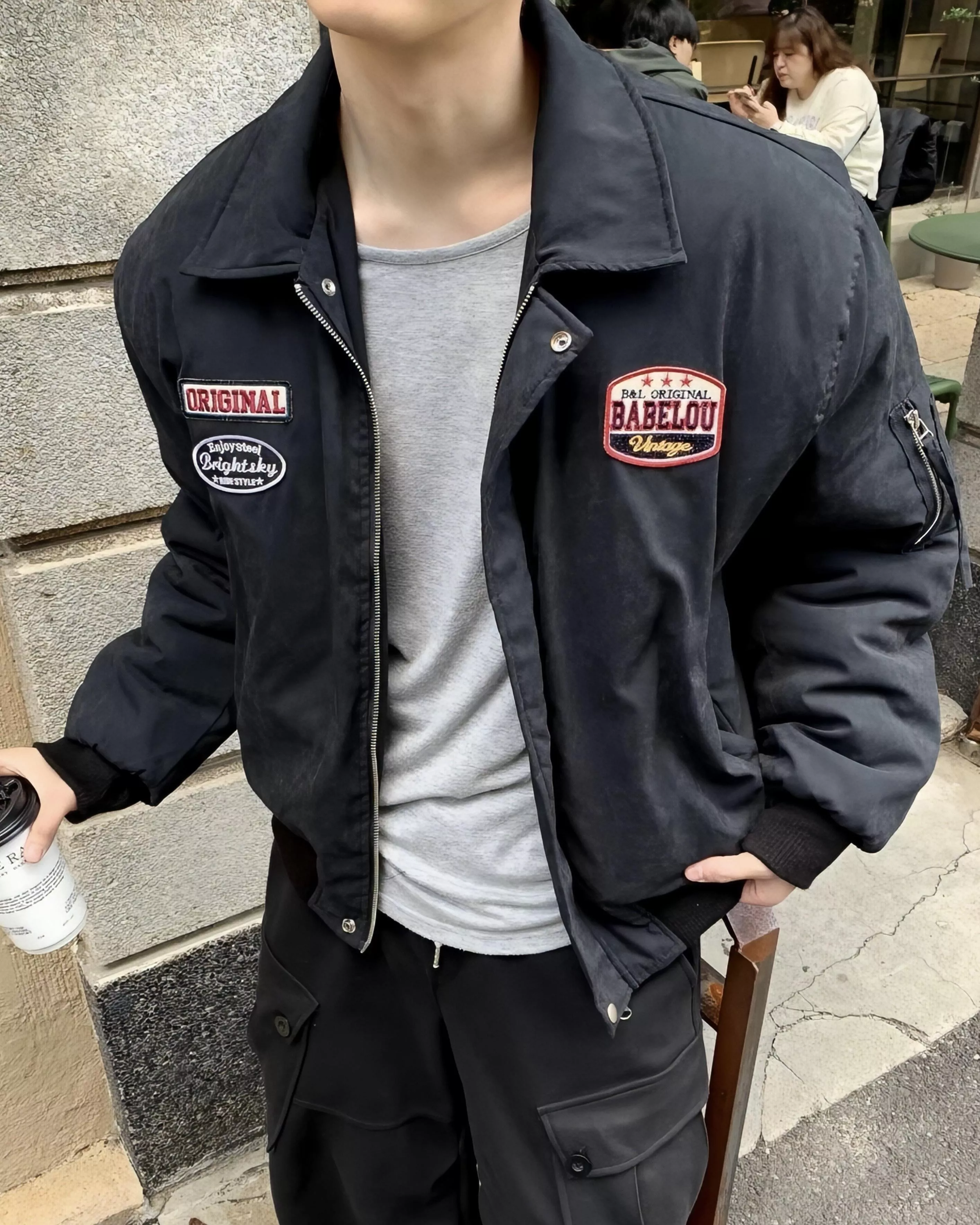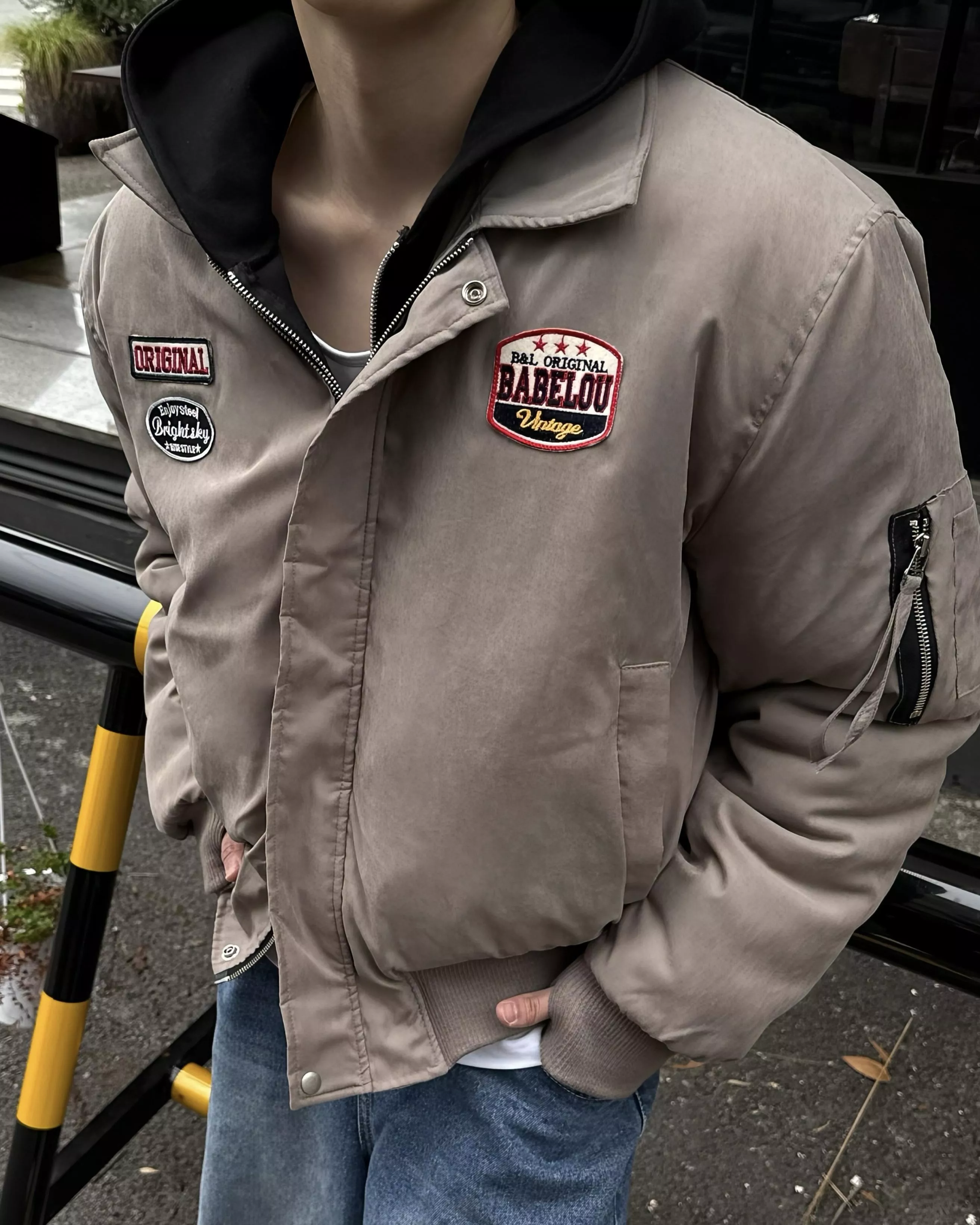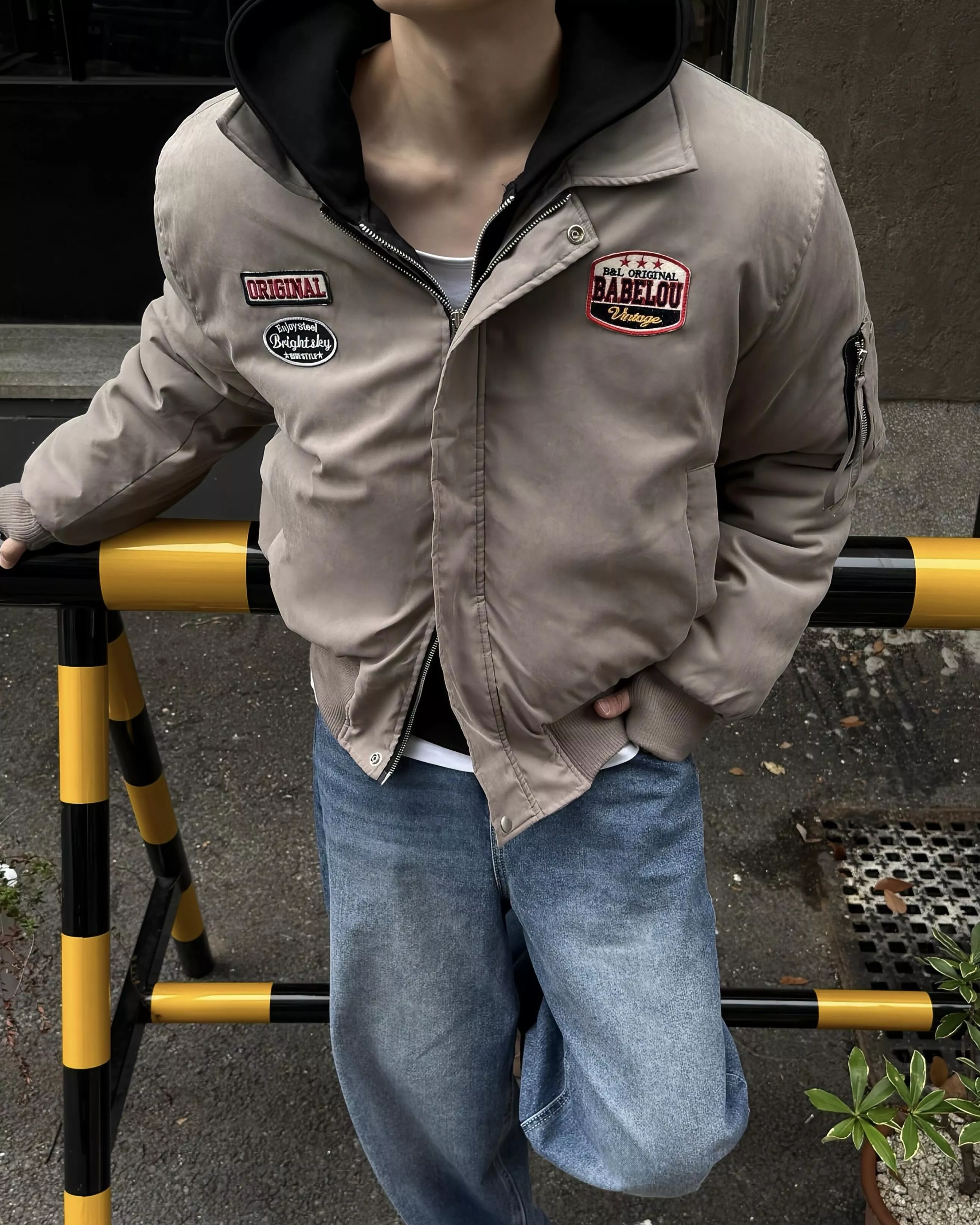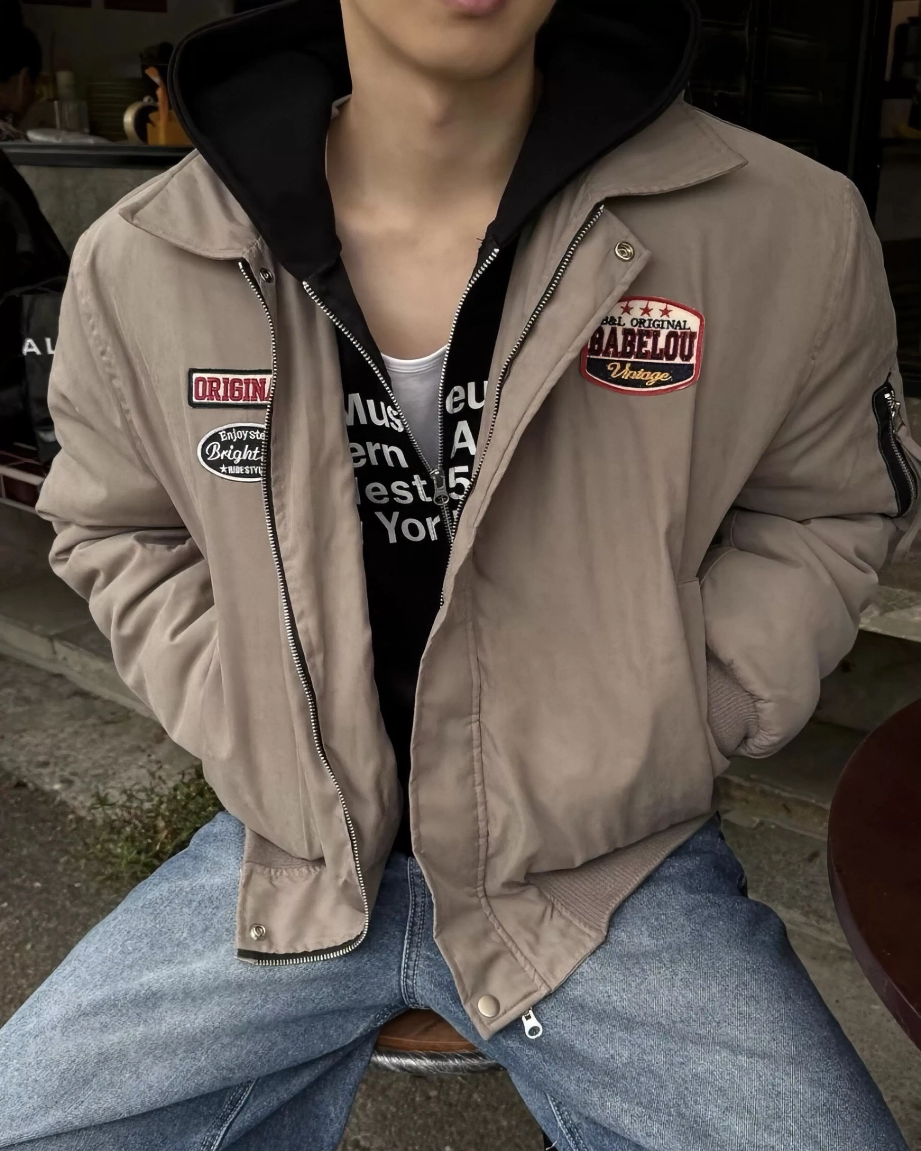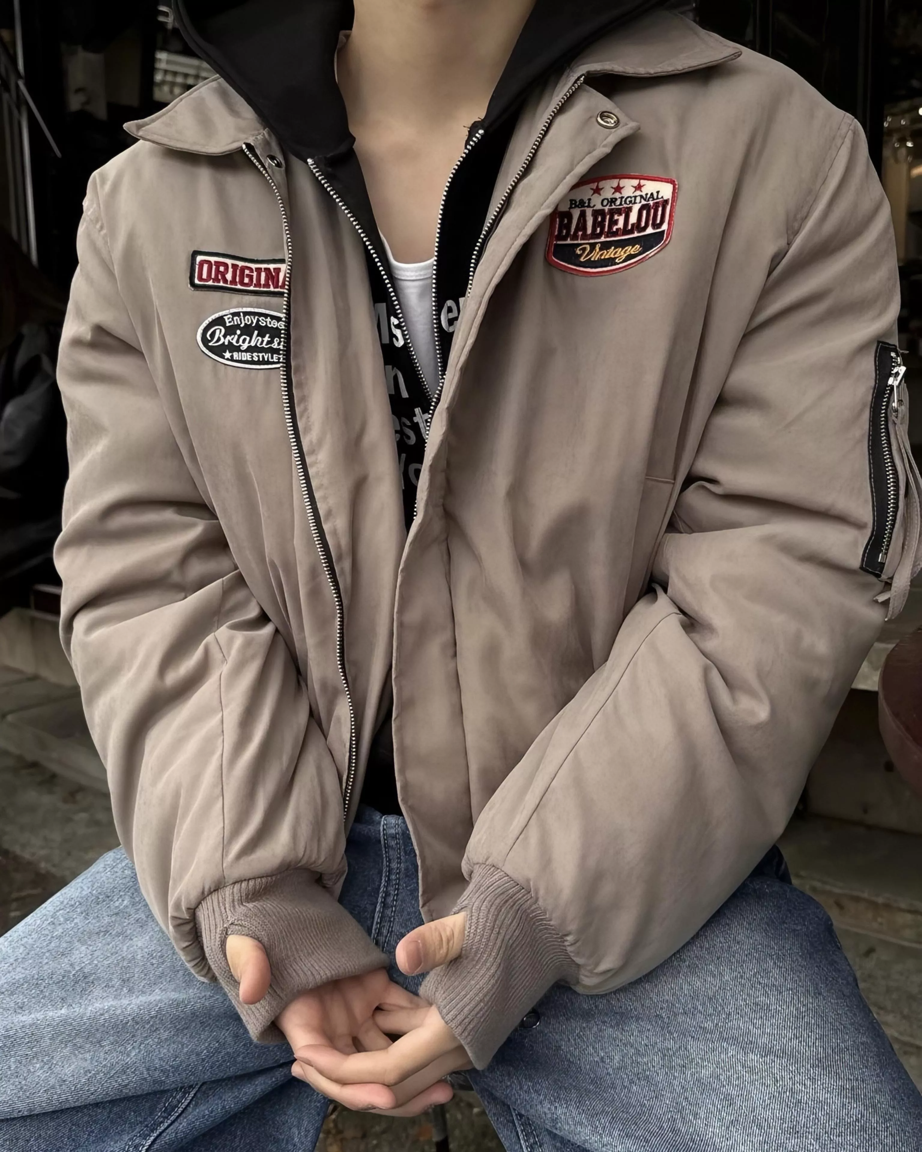 將原本簡約的鋪棉外套增添了些街頭氛圍與記憶點
