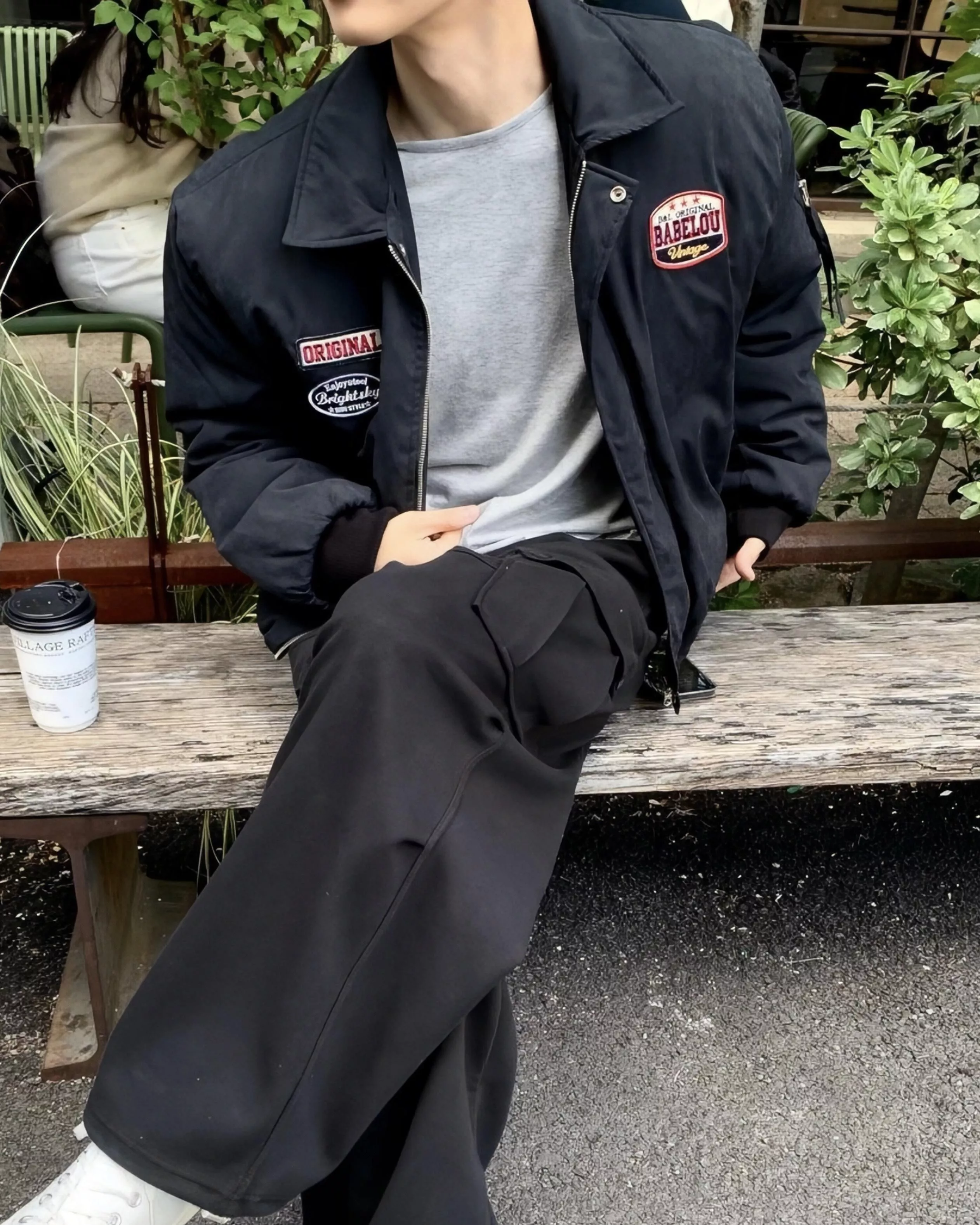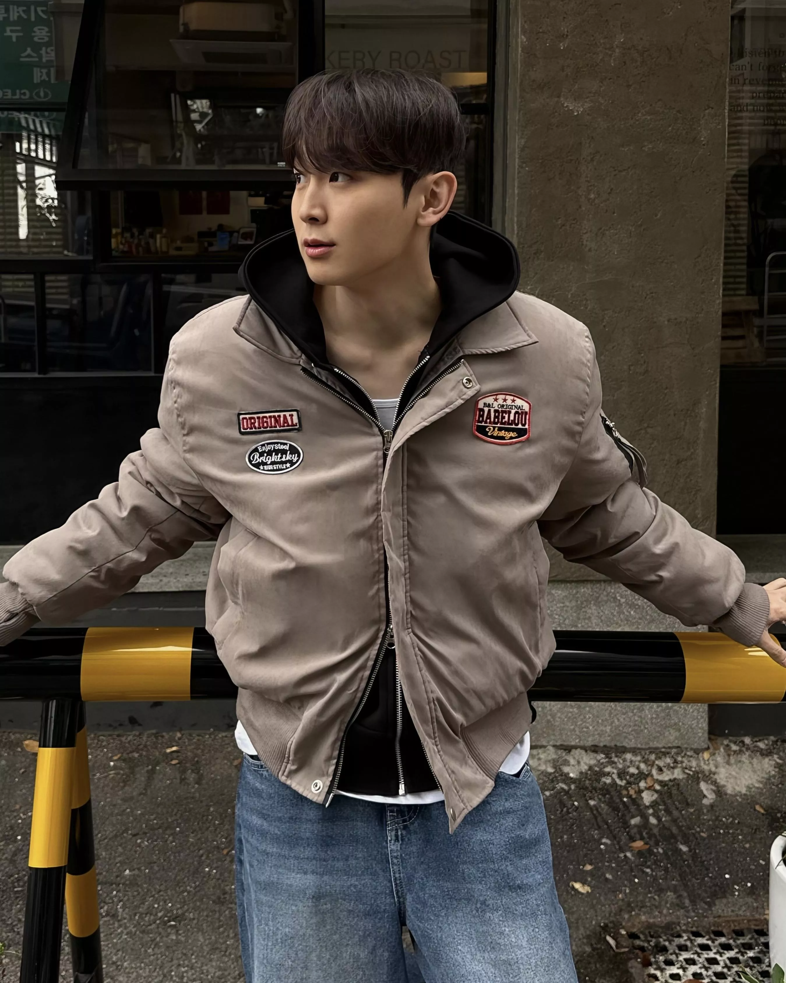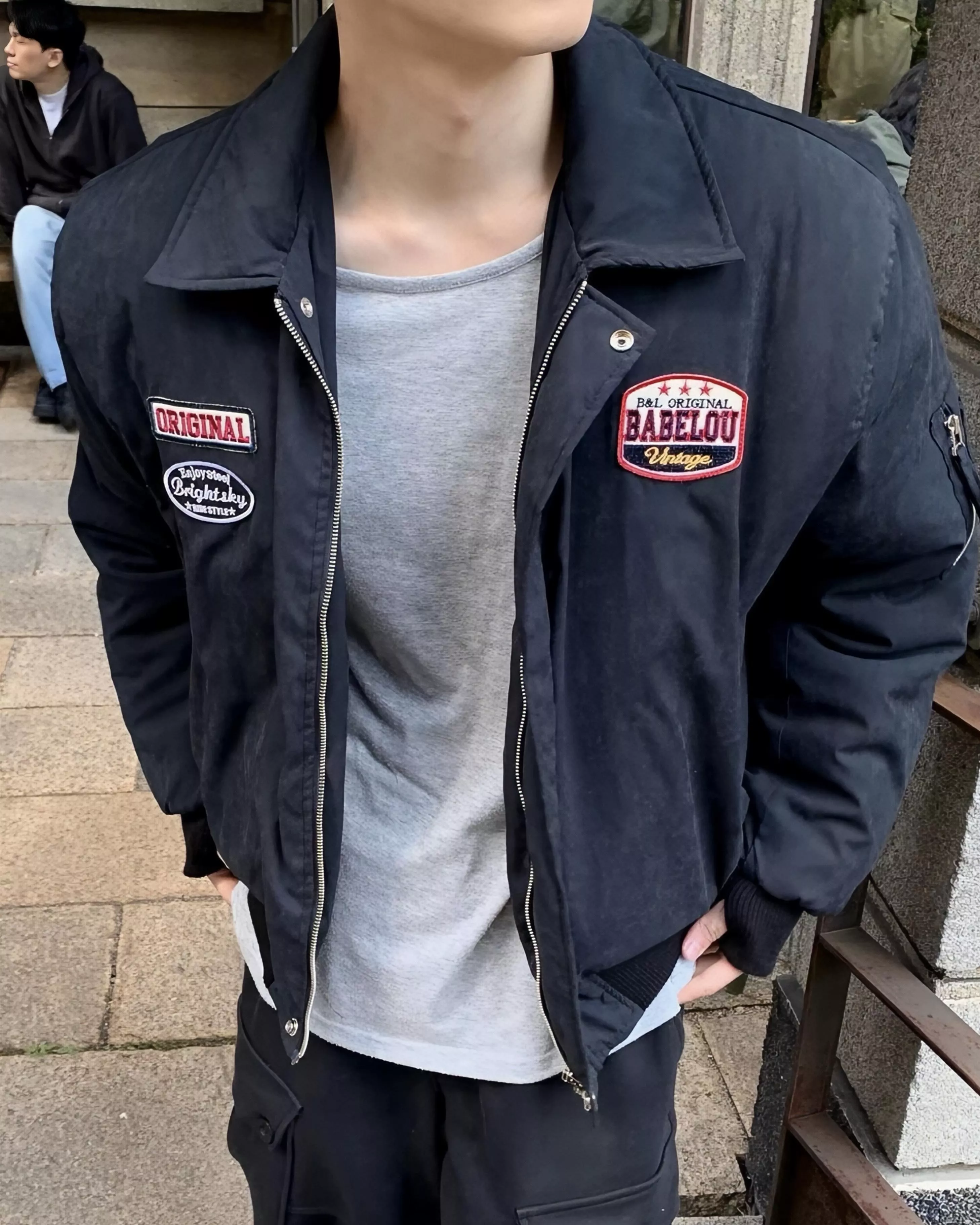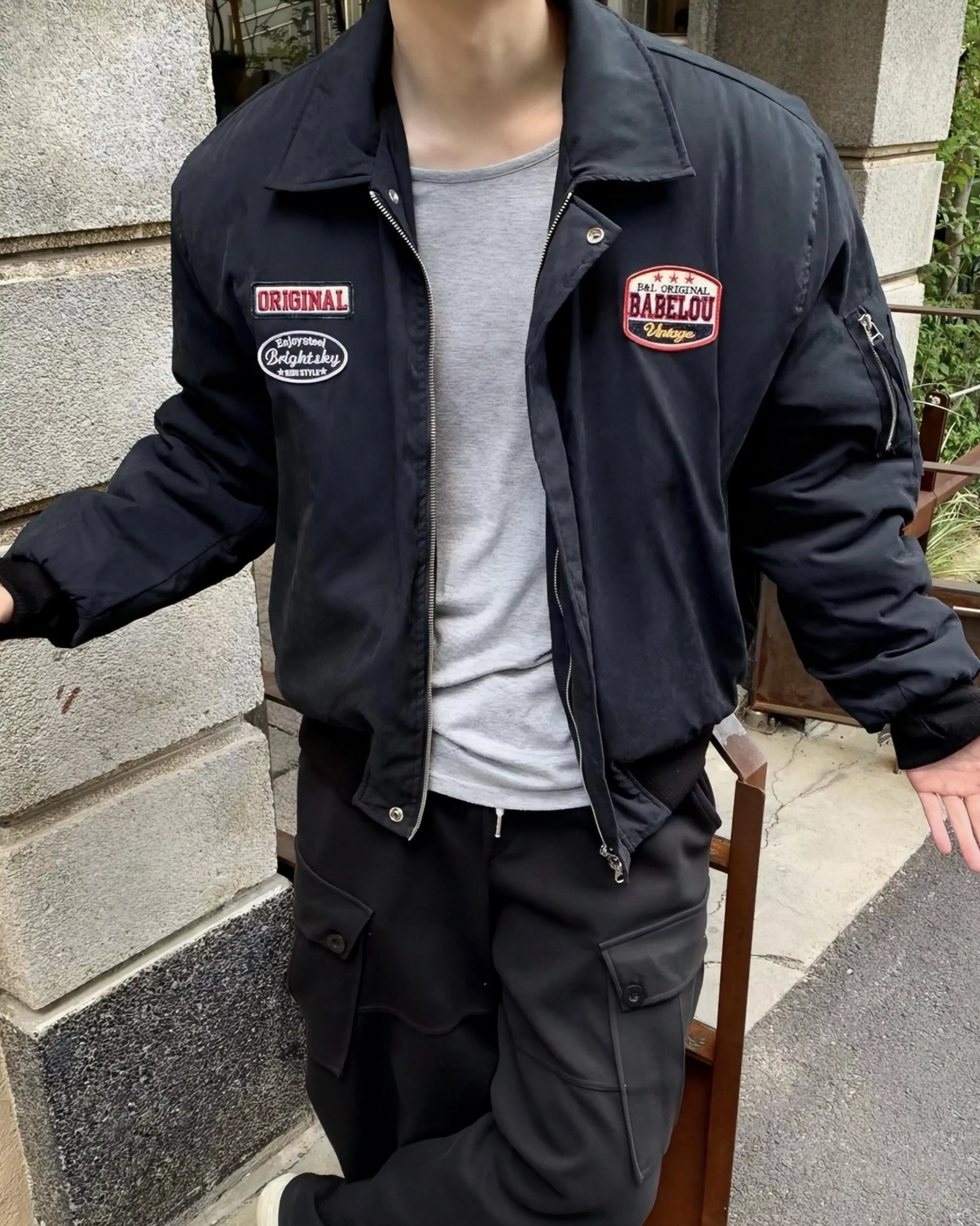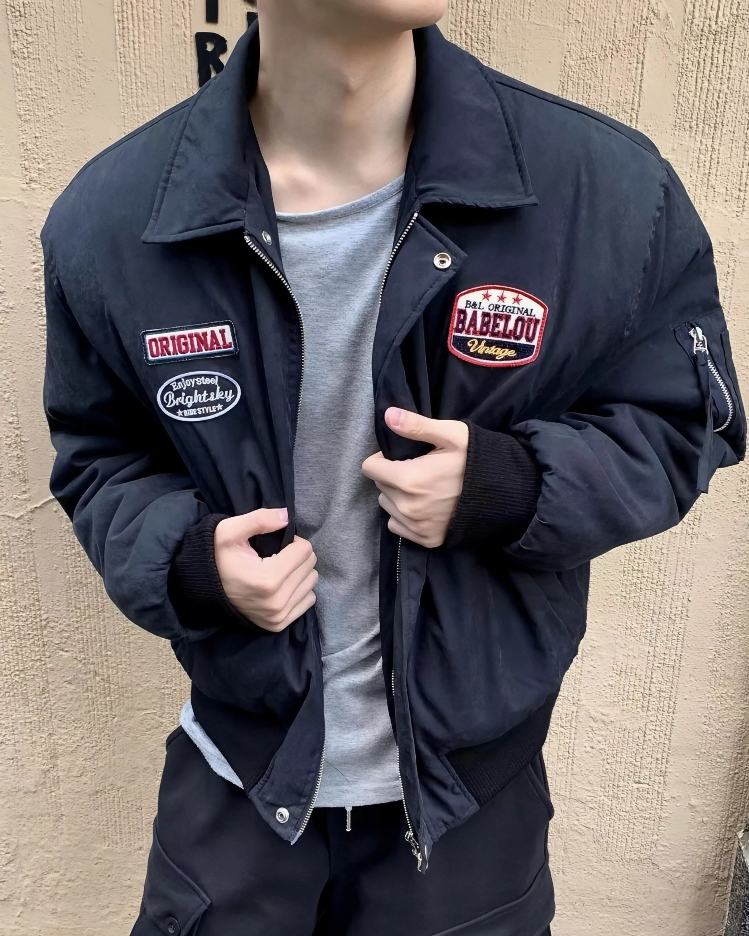 將原本簡約的鋪棉外套增添了些街頭氛圍與記憶點