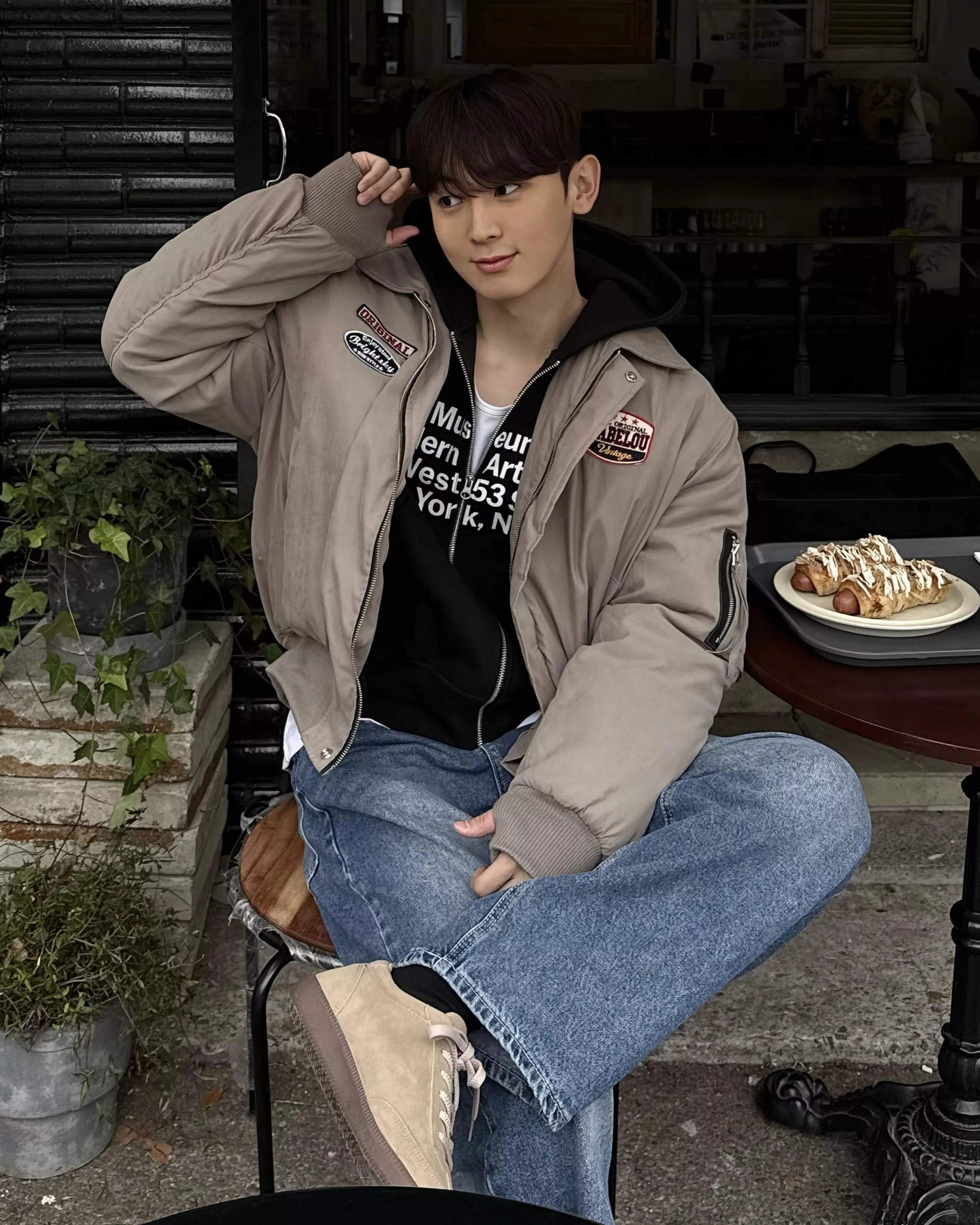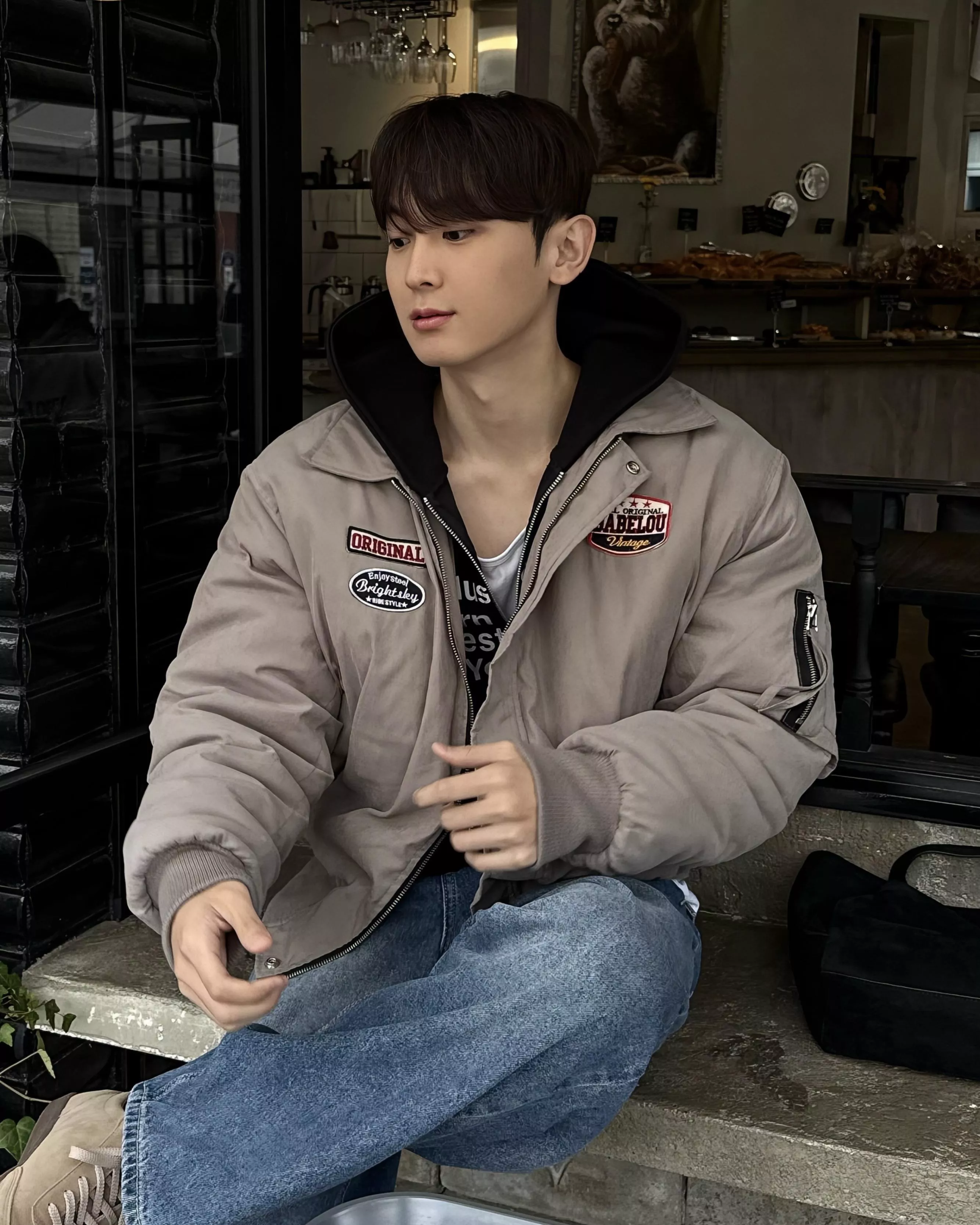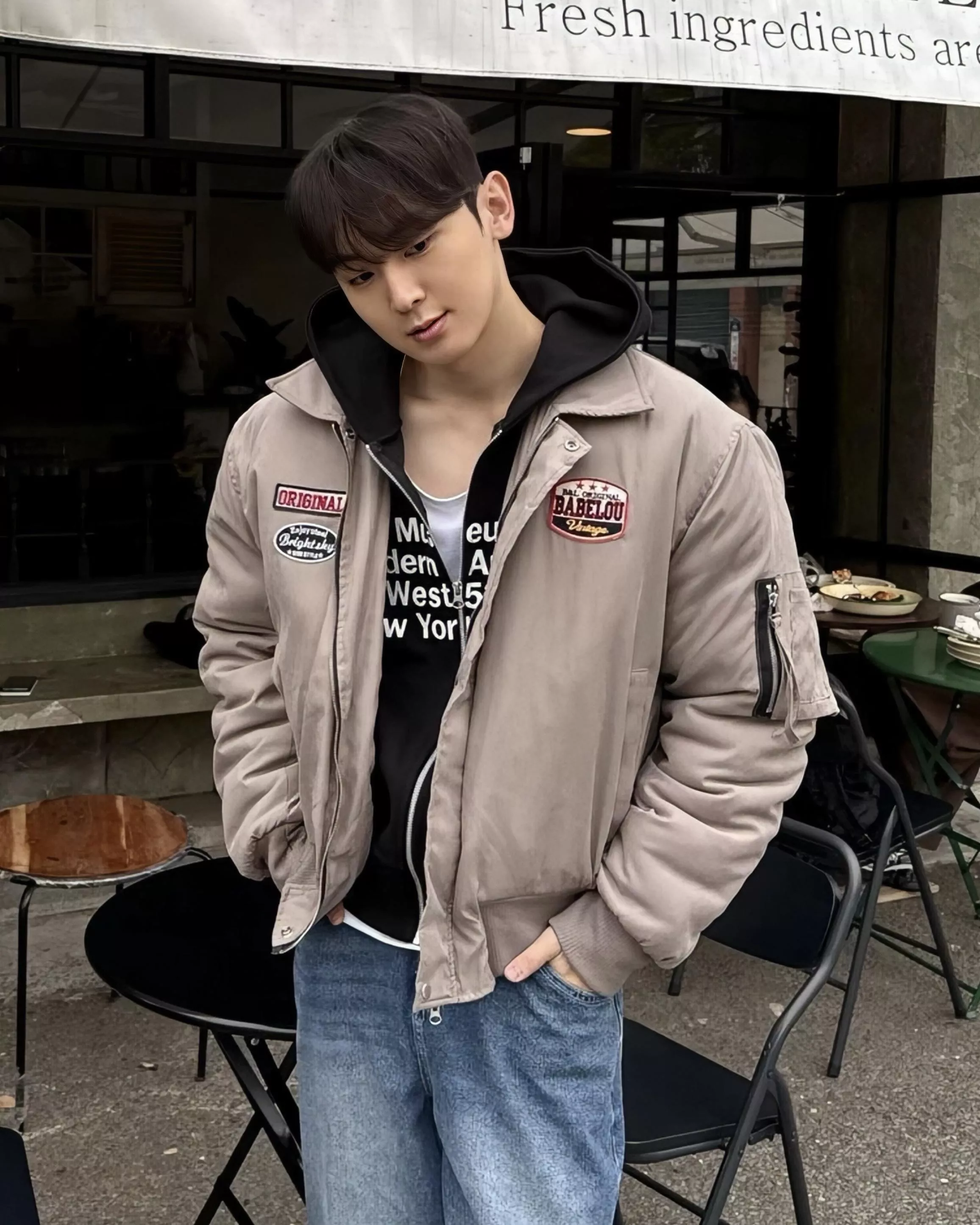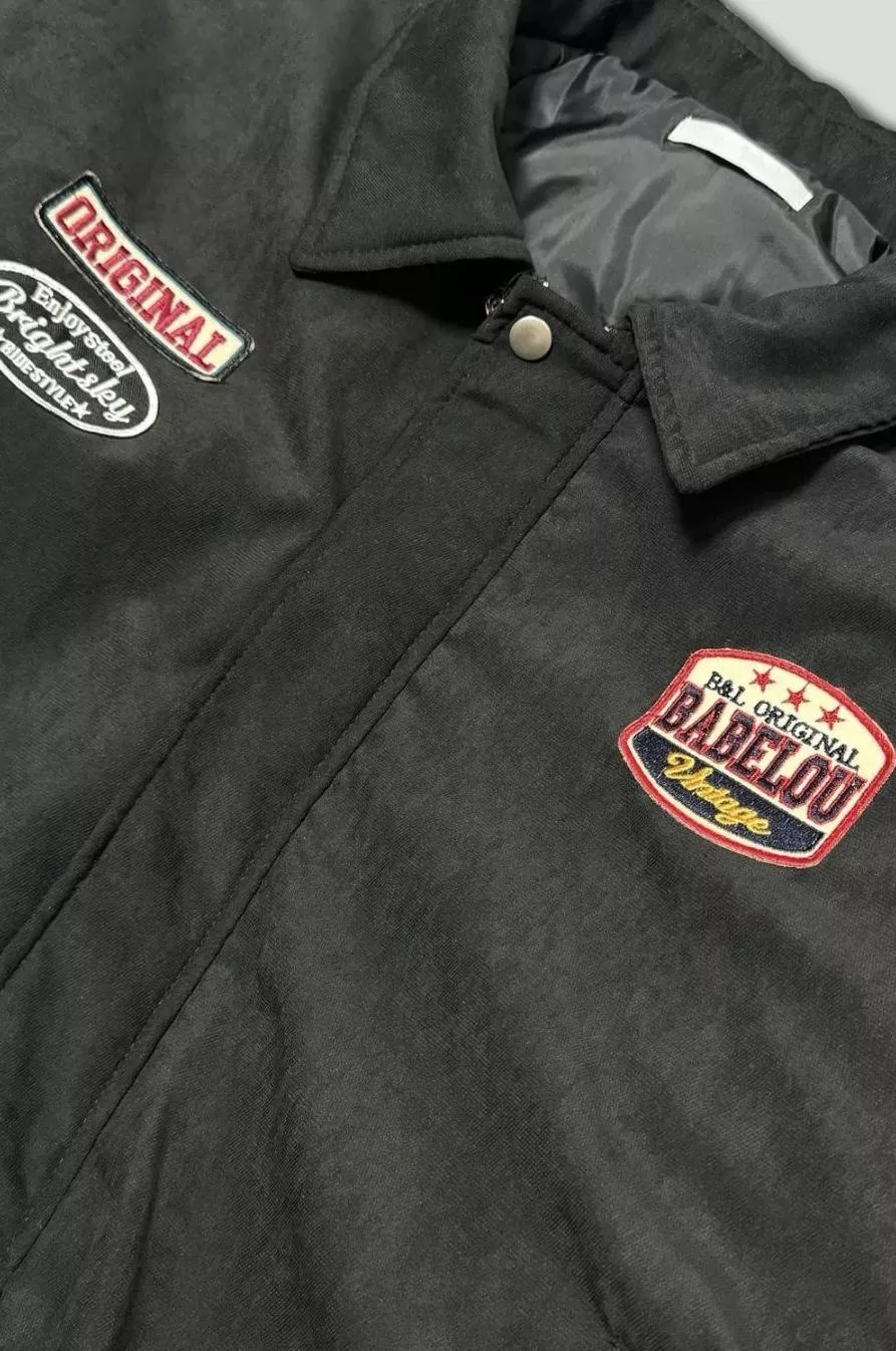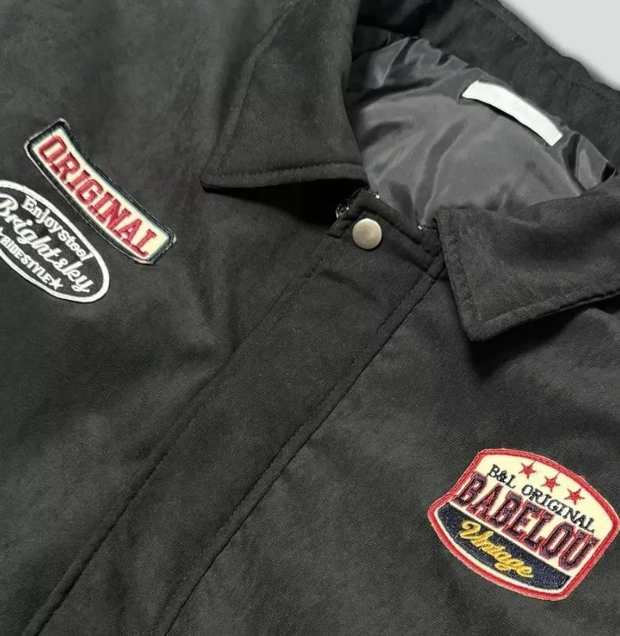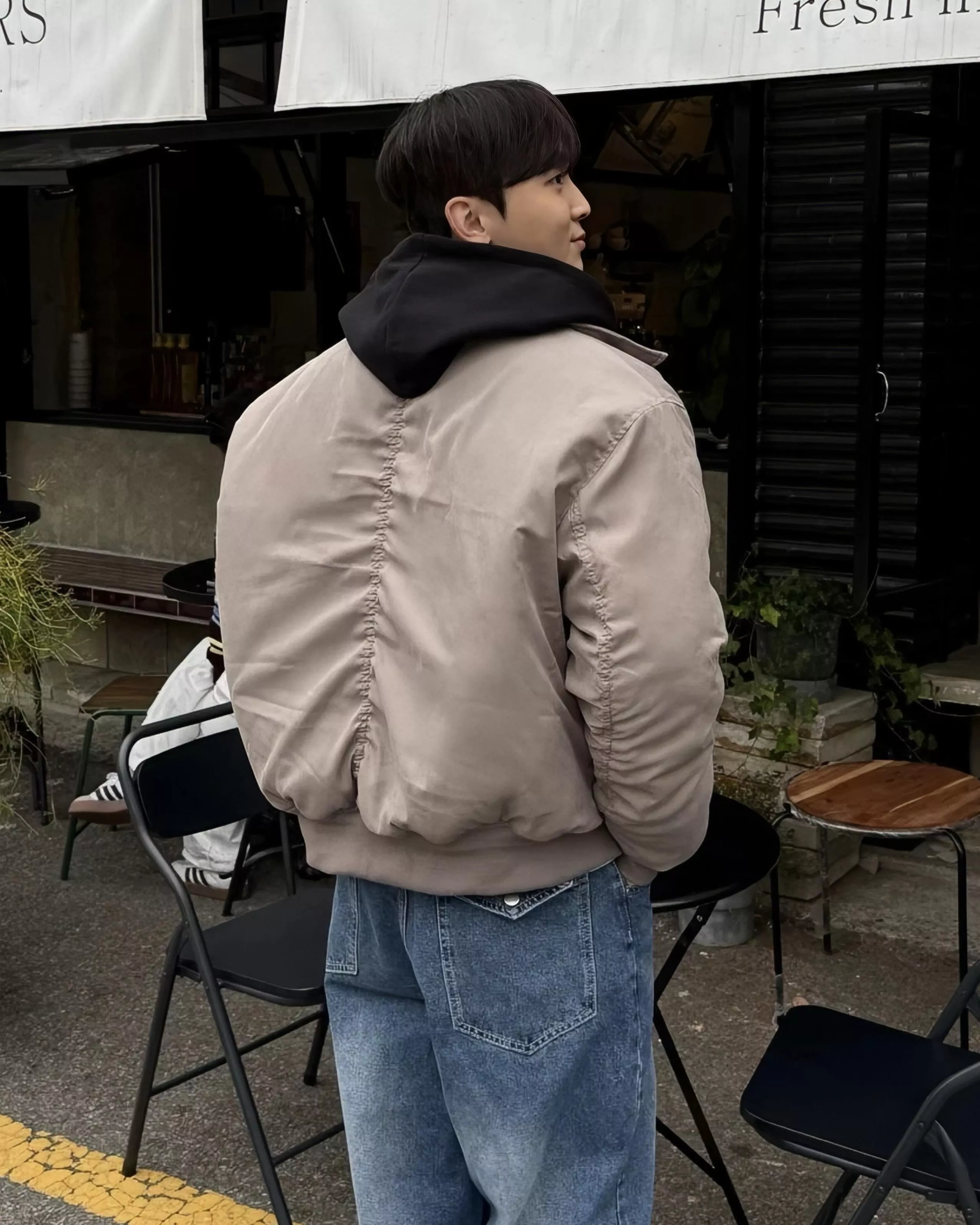 將原本簡約的鋪棉外套增添了些街頭氛圍與記憶點