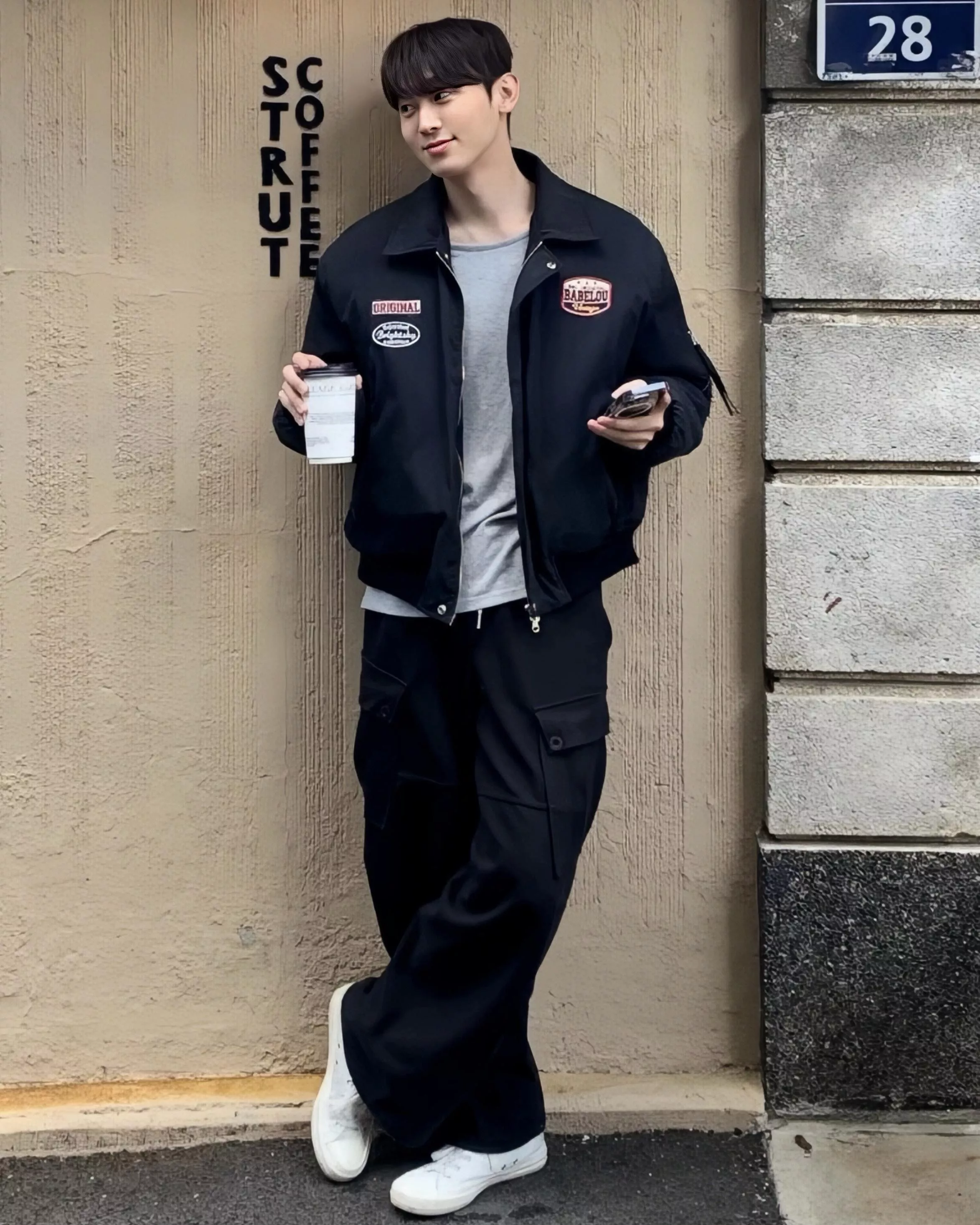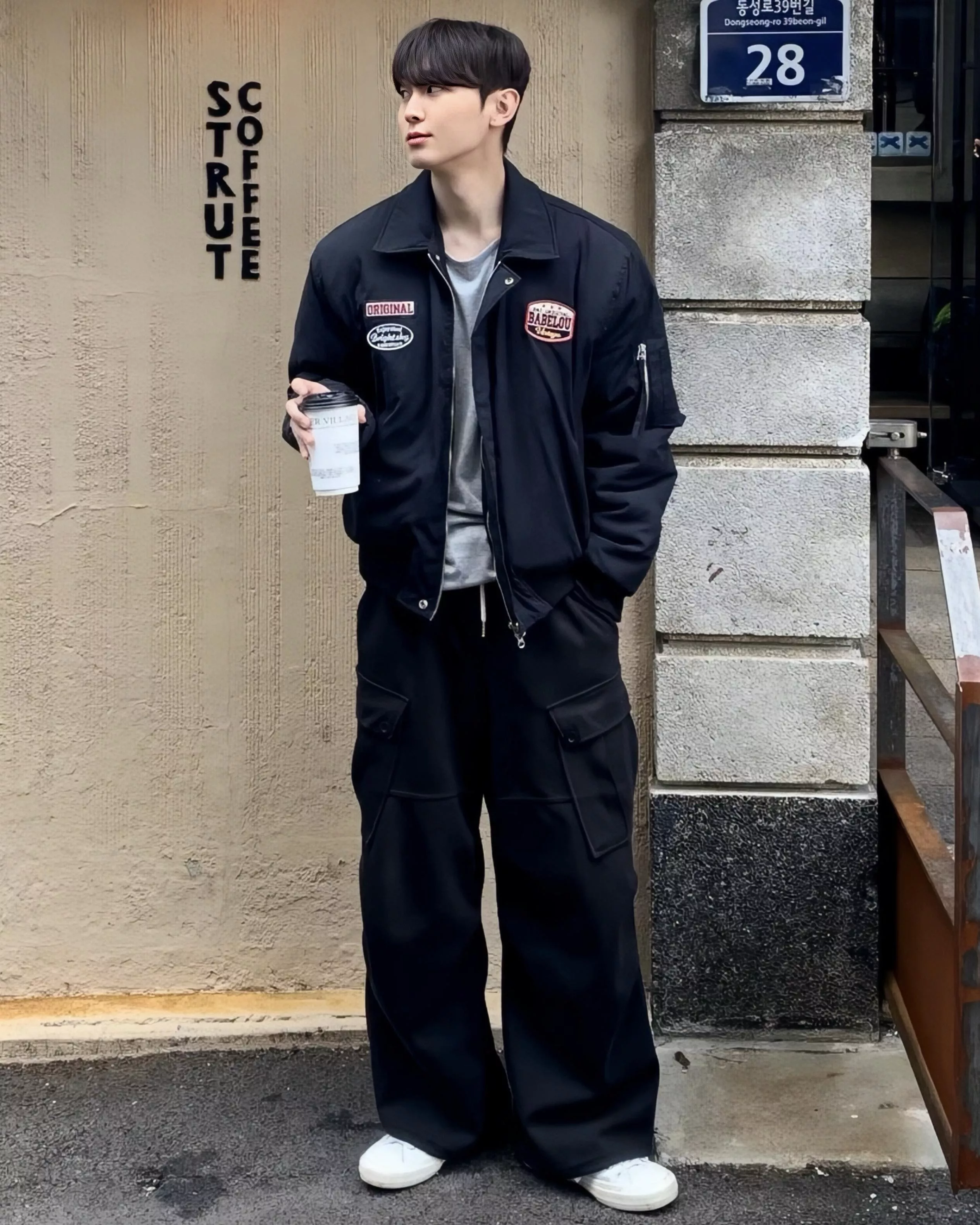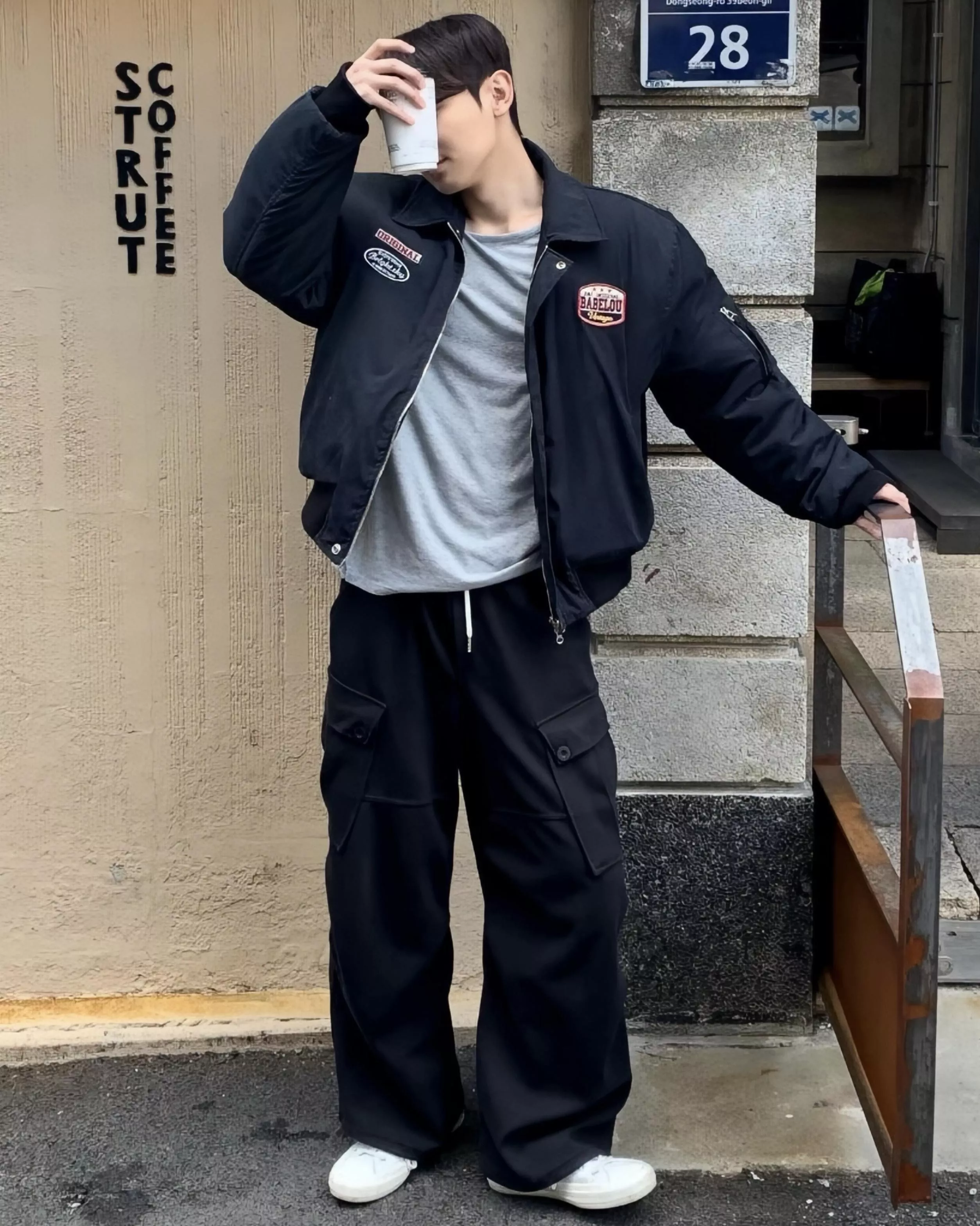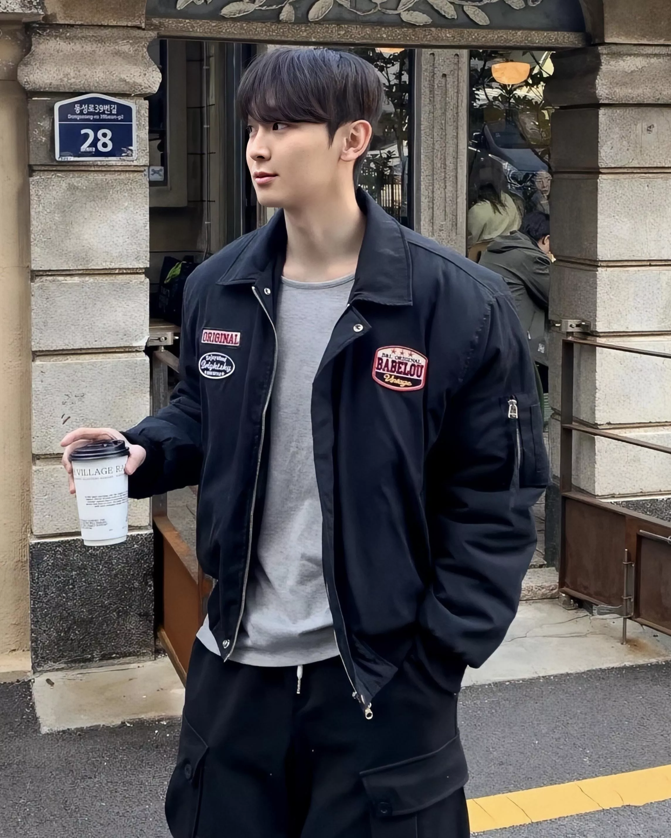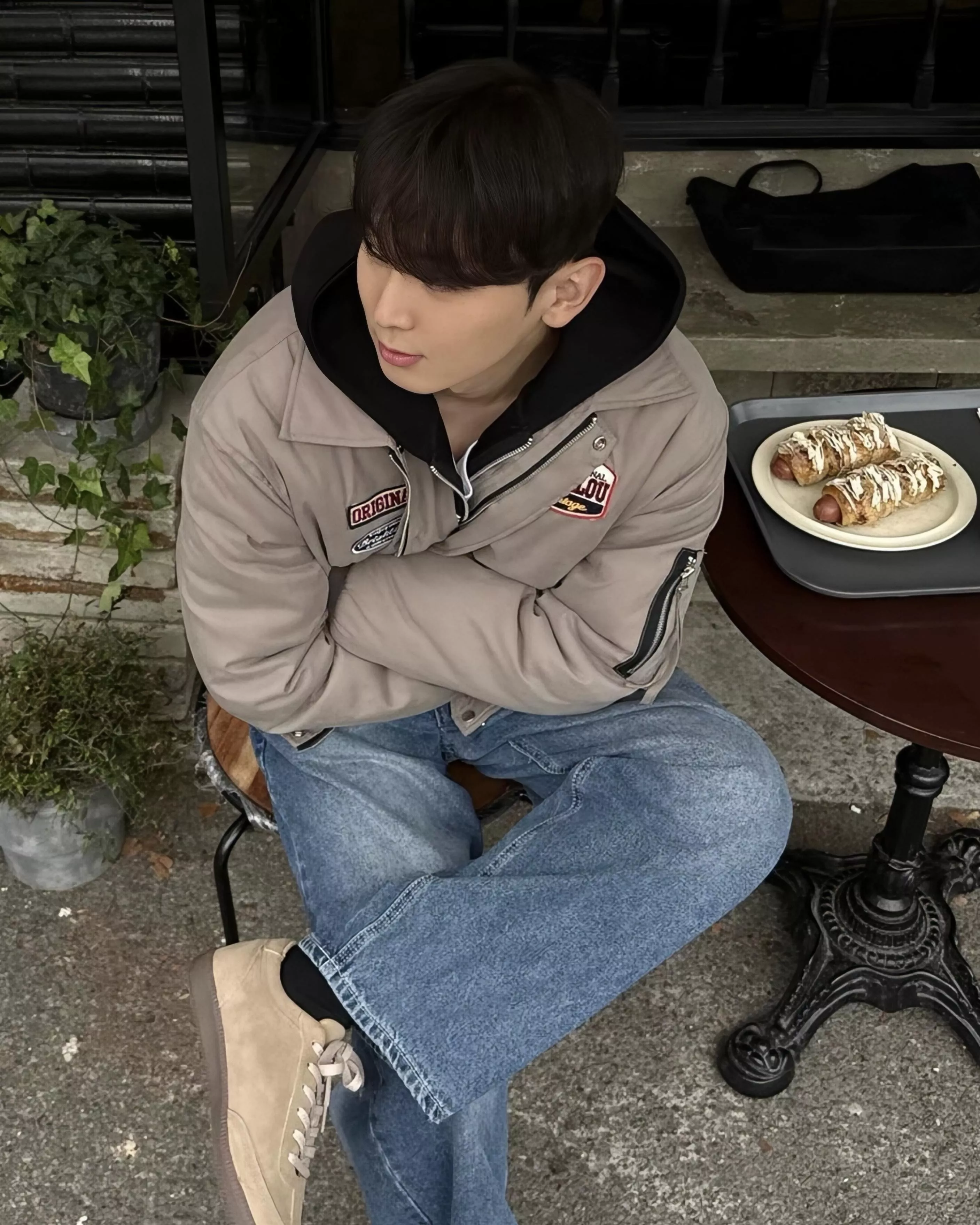 將原本簡約的鋪棉外套增添了些街頭氛圍與記憶點