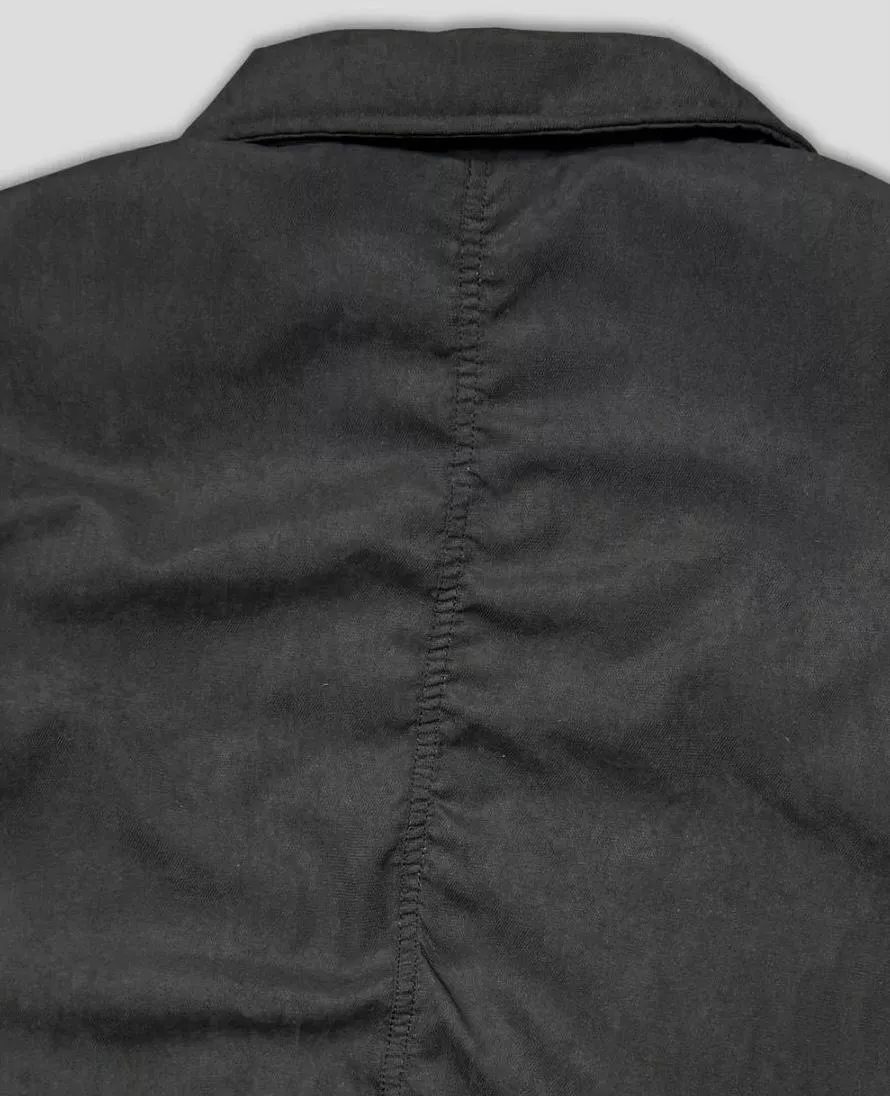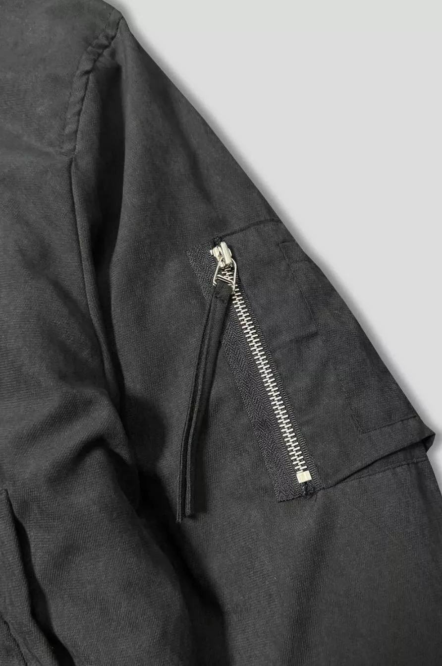 整體剪裁、抽皺背面&袖子拉鍊口袋