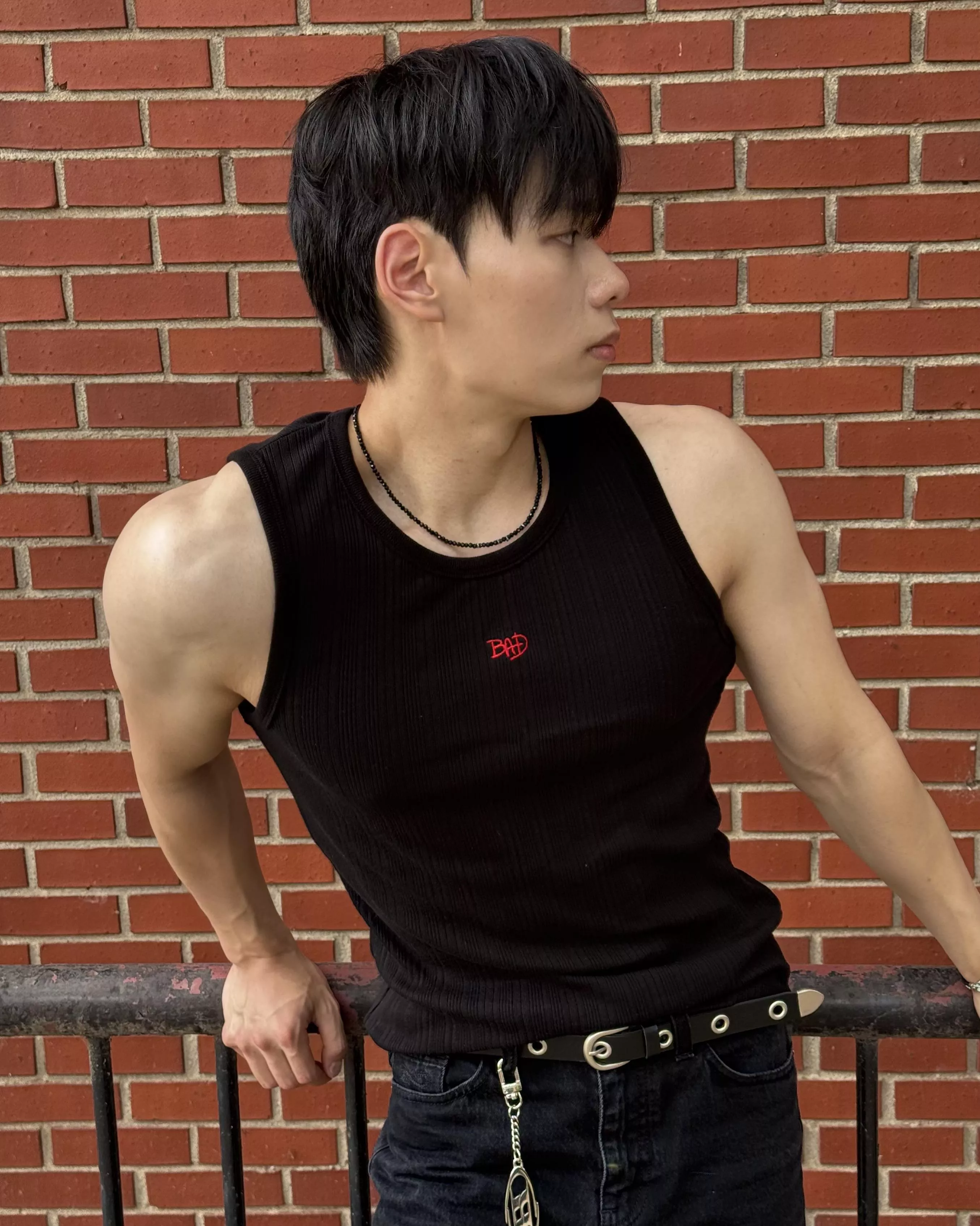 黑色也是胸前一個紅色BAD刺繡字母