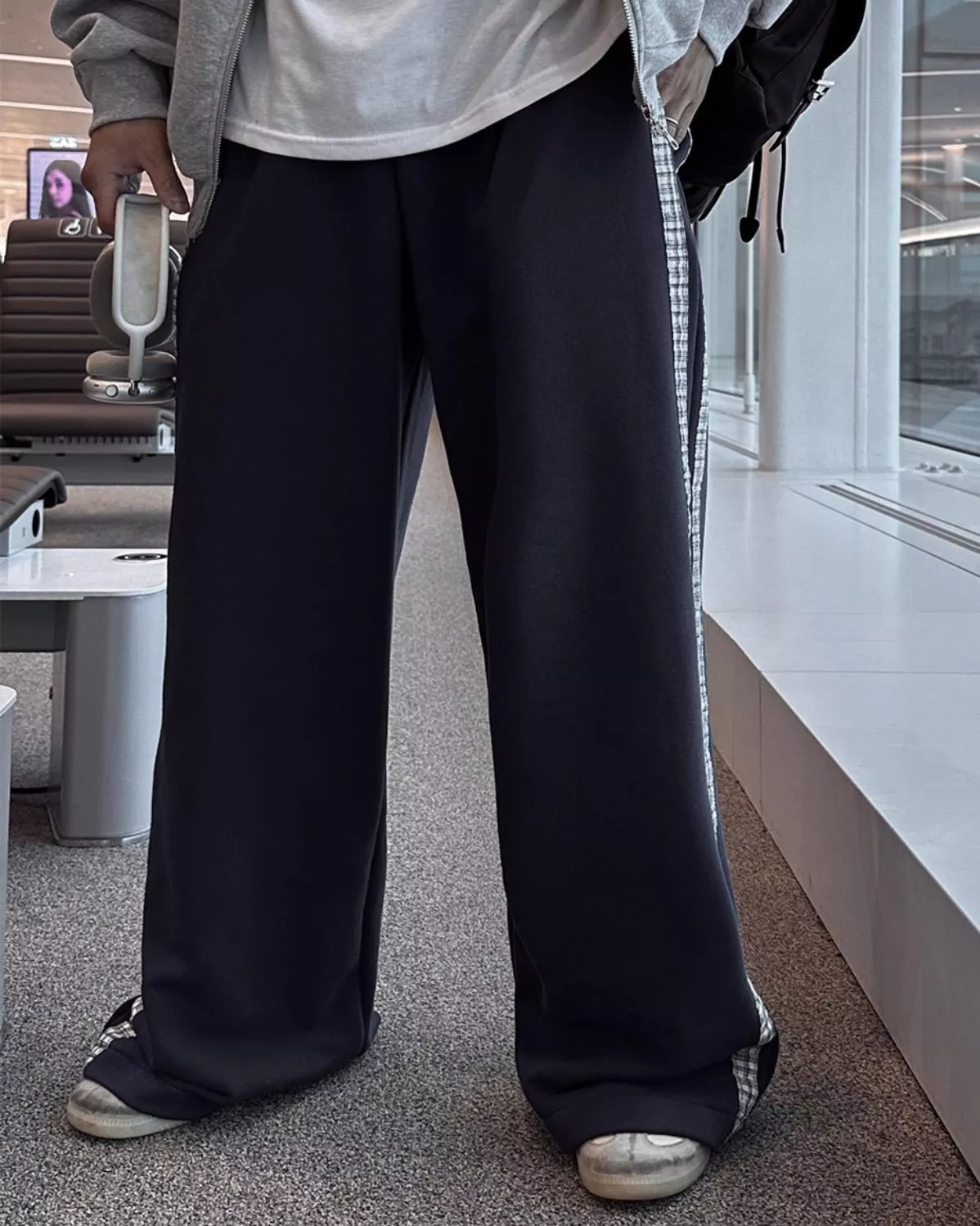 格紋側邊拼接撞色線條 為整件褲子增添造型亮點🫧