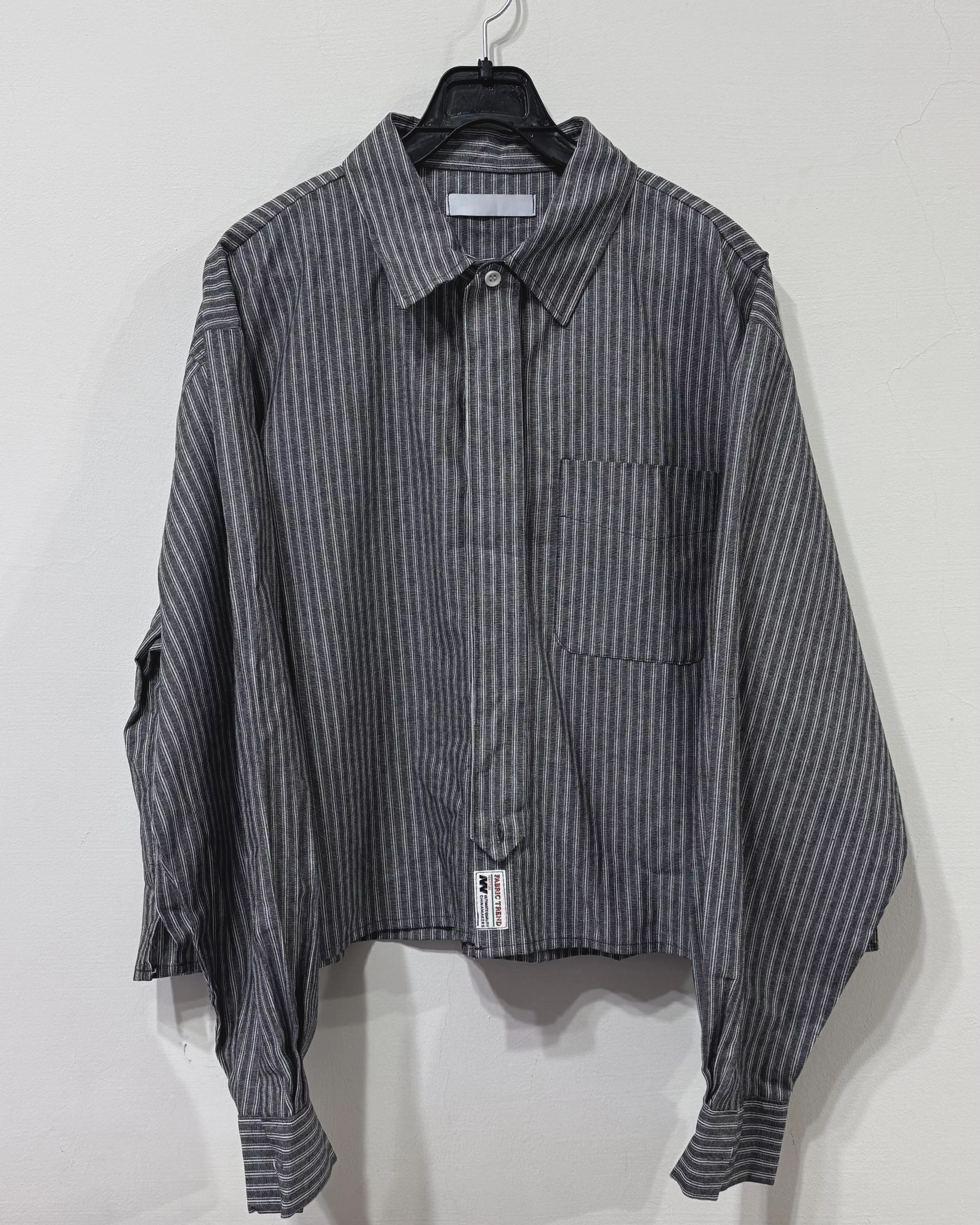 短版剪裁 文青感兩用式綁帶條紋襯衫