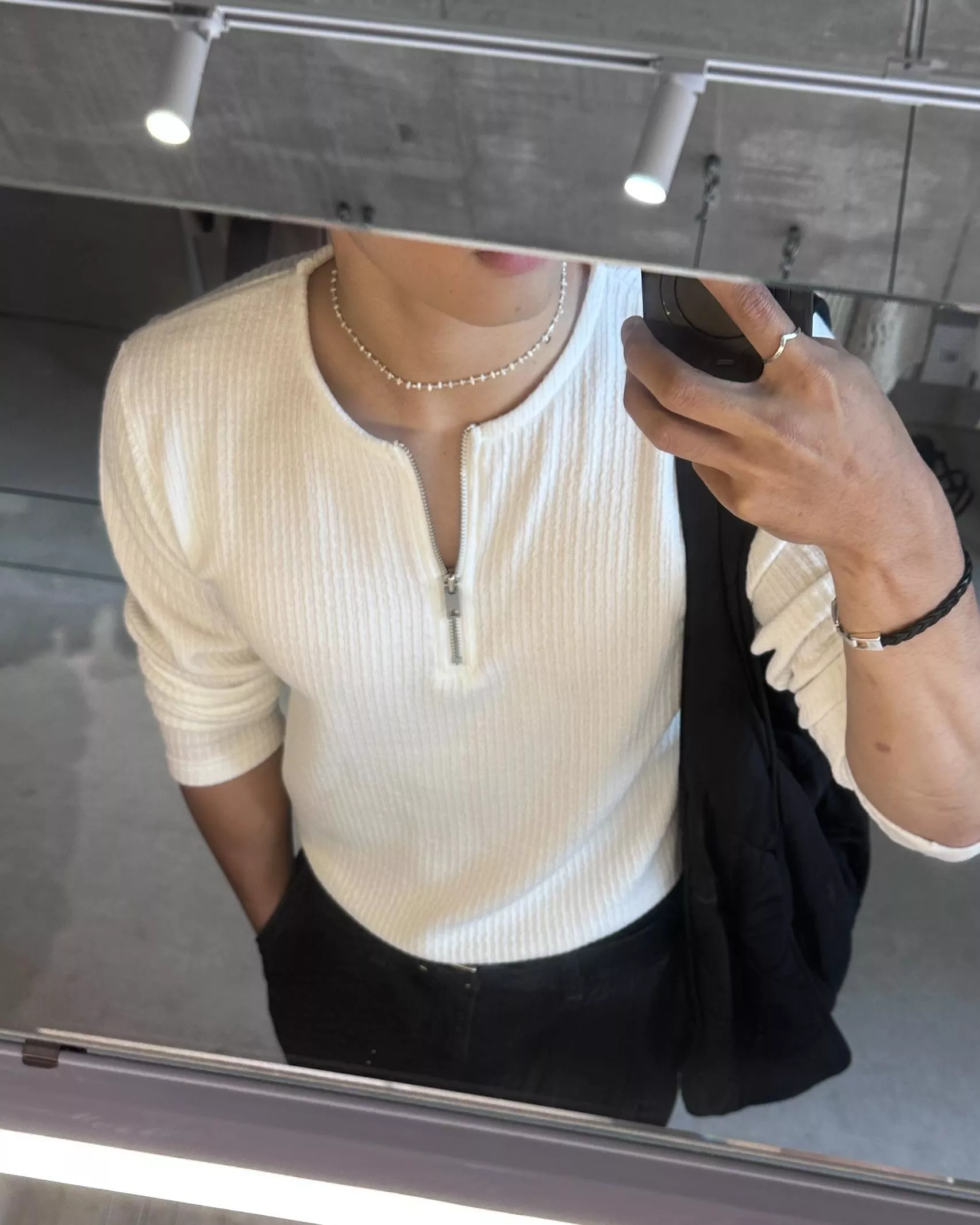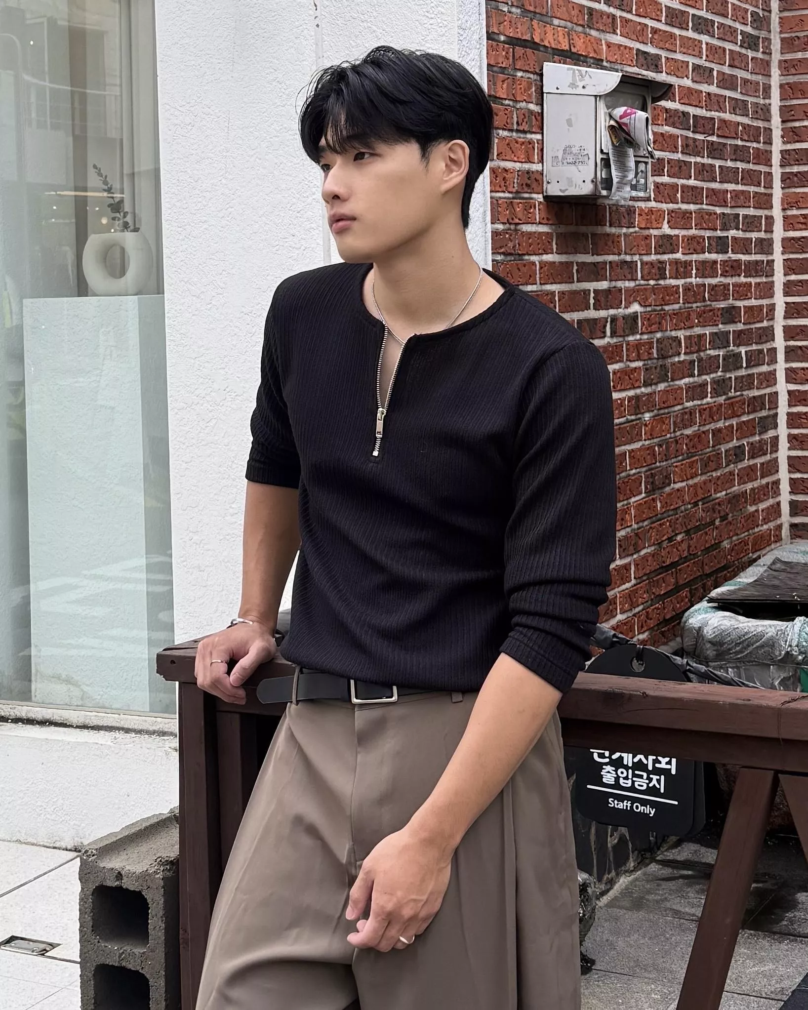 細緻的羅紋紋理 + 顯壯剪裁版型 展現俐落性感的氛圍