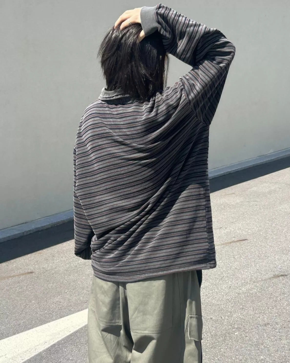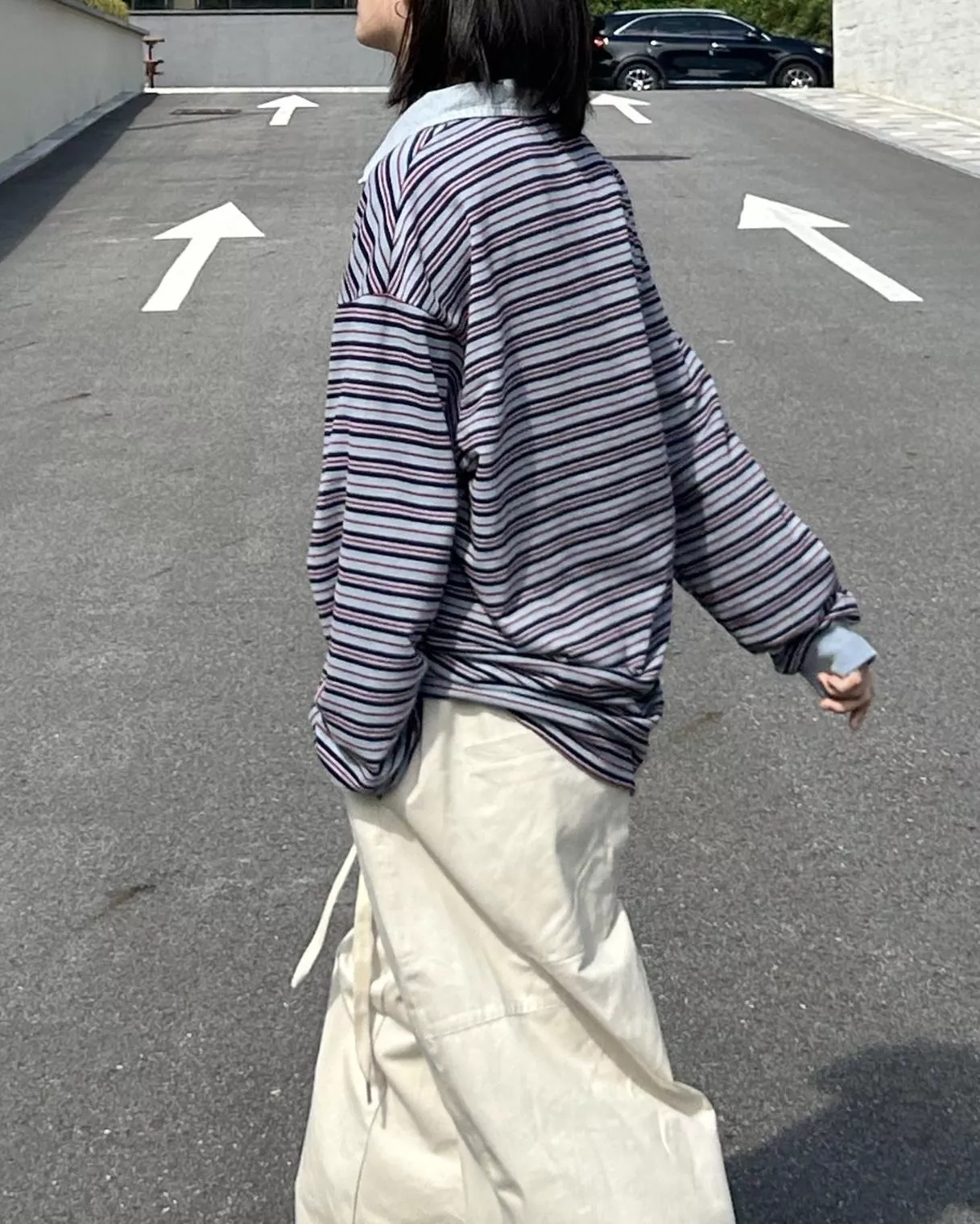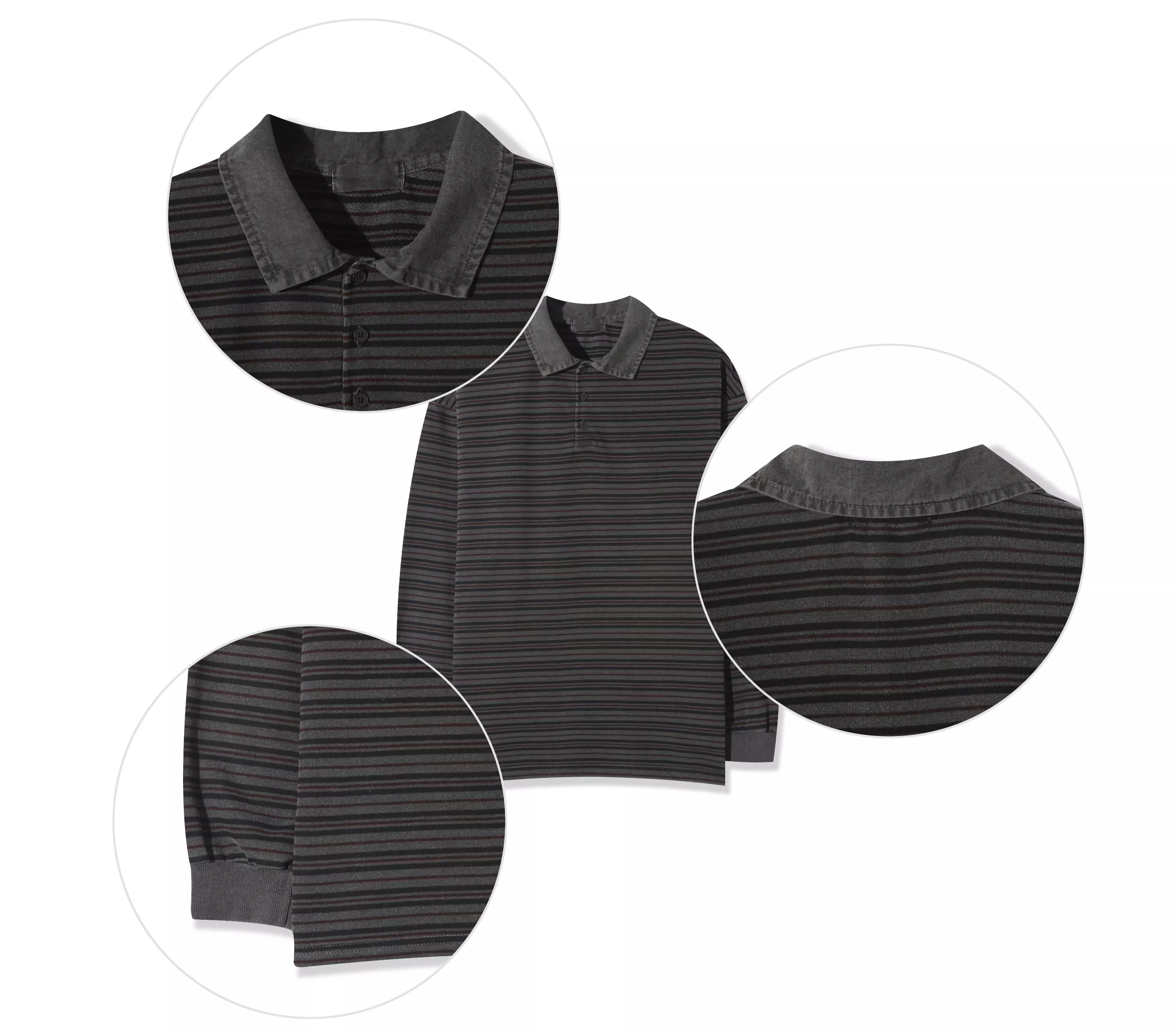 領口拼接髒染水洗材質|感受上明顯與條紋部分不同