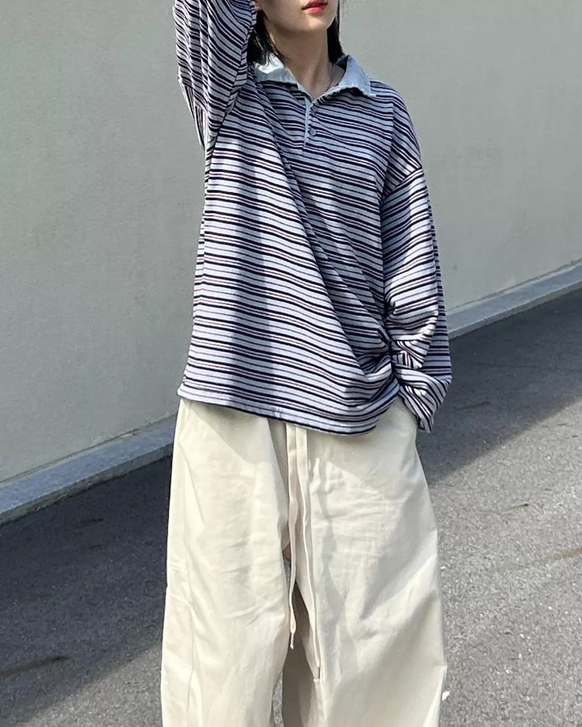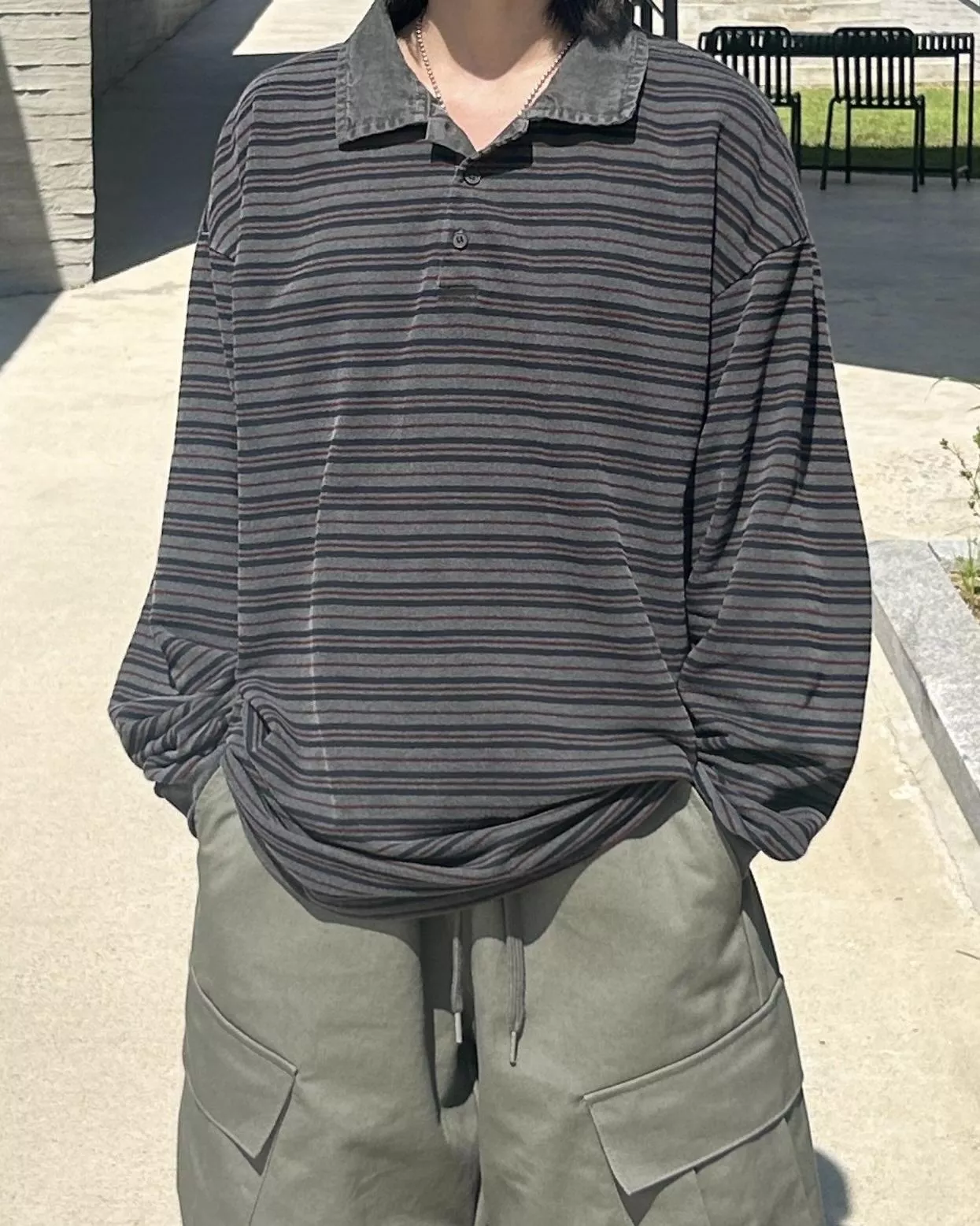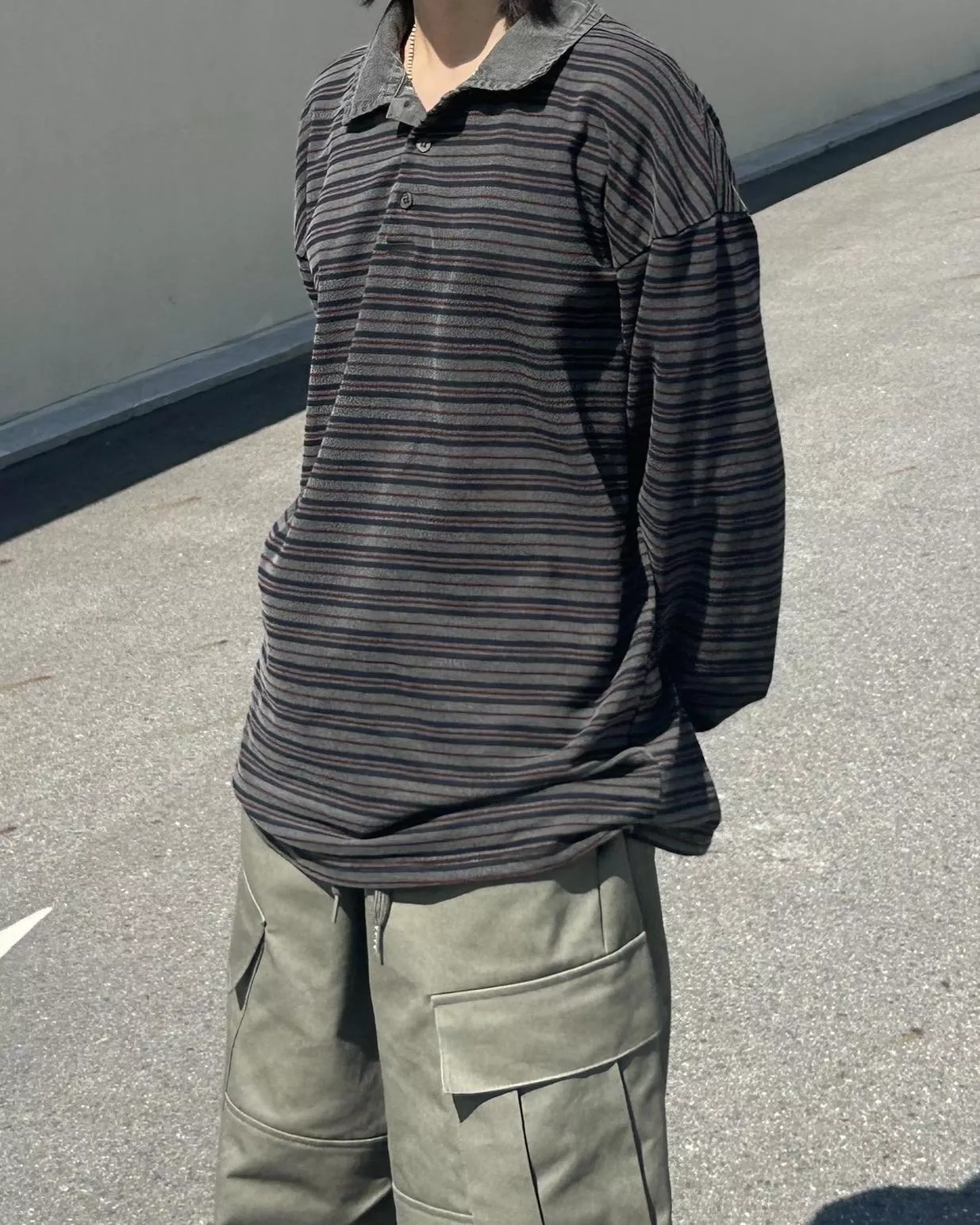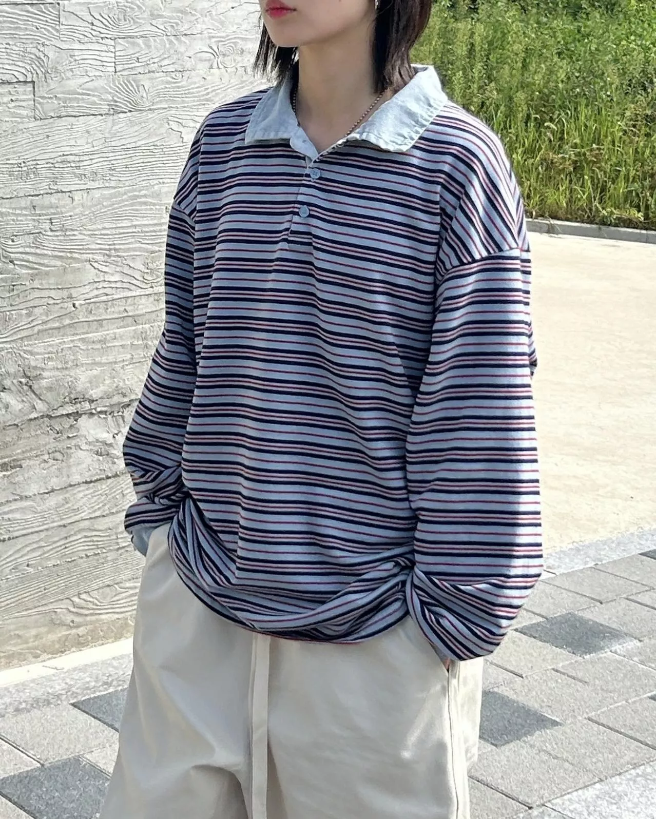 領口拼接髒染水洗材質|感受上明顯與條紋部分不同