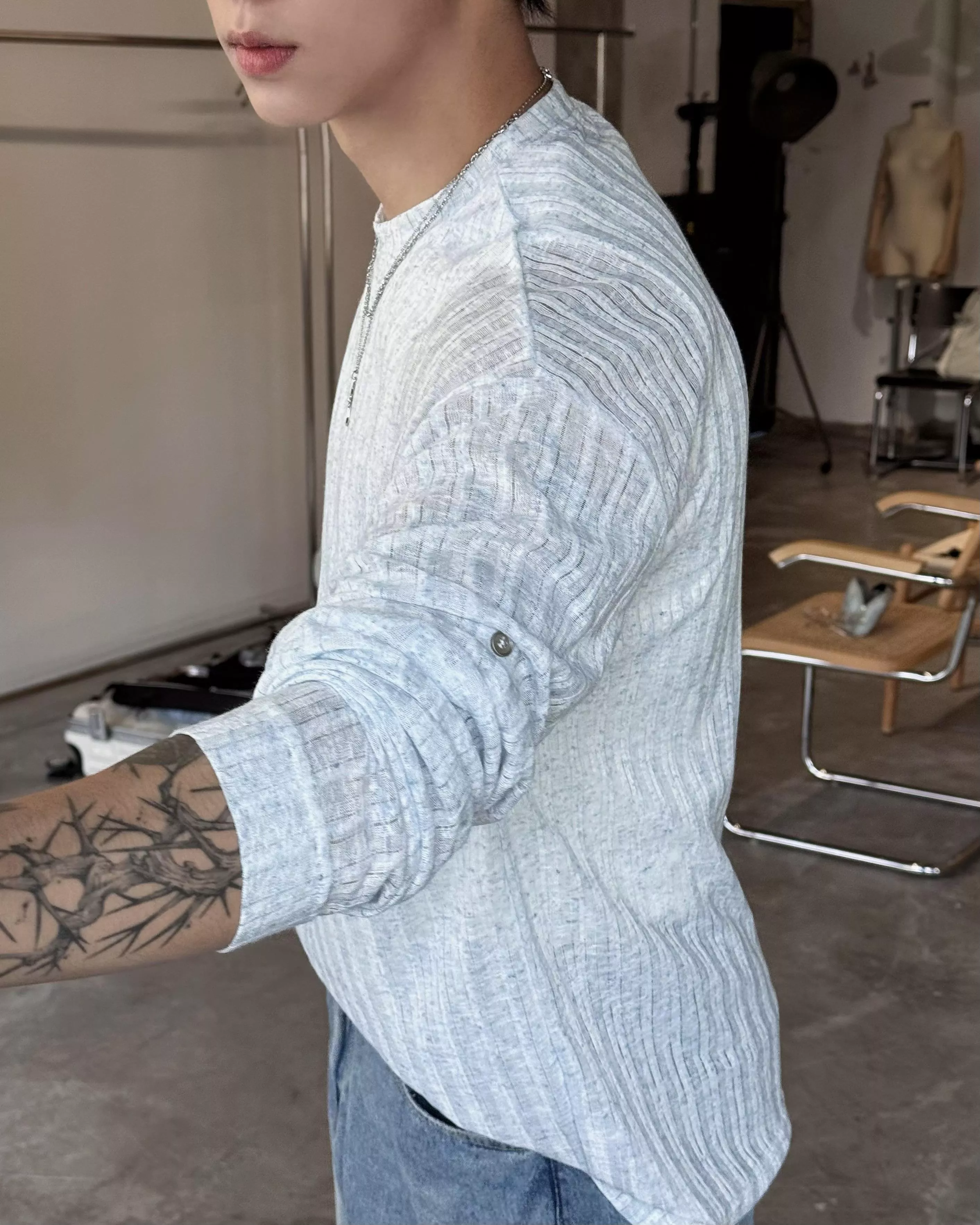 捲袖設計 虛渺細紋 UNISEX薄透長衫