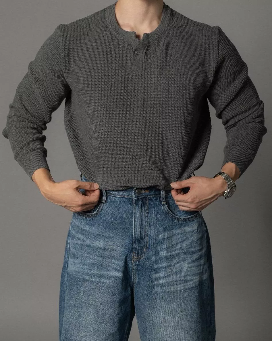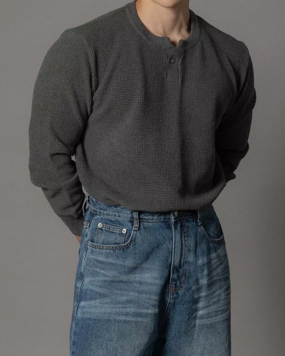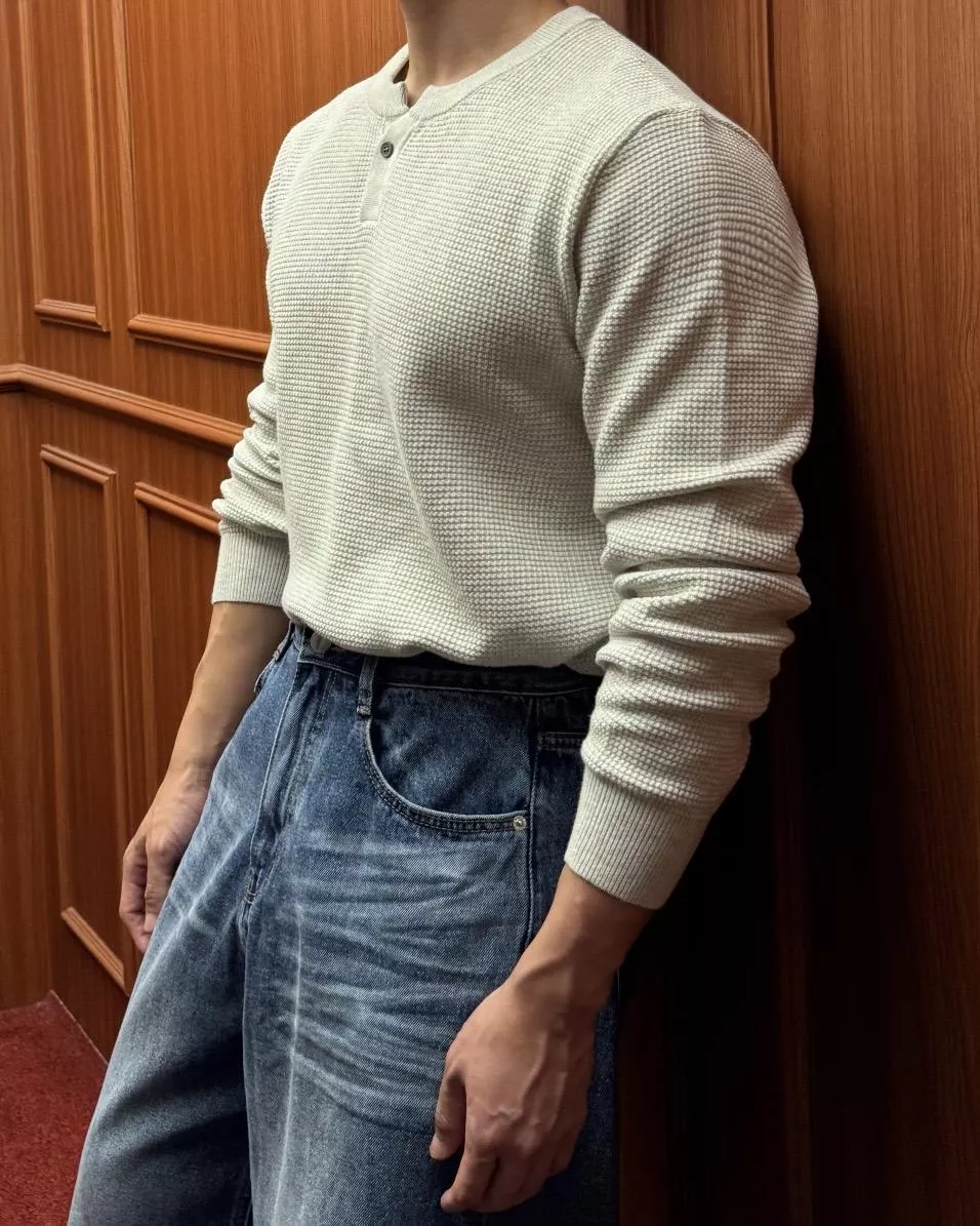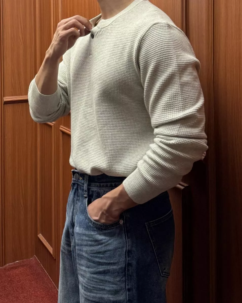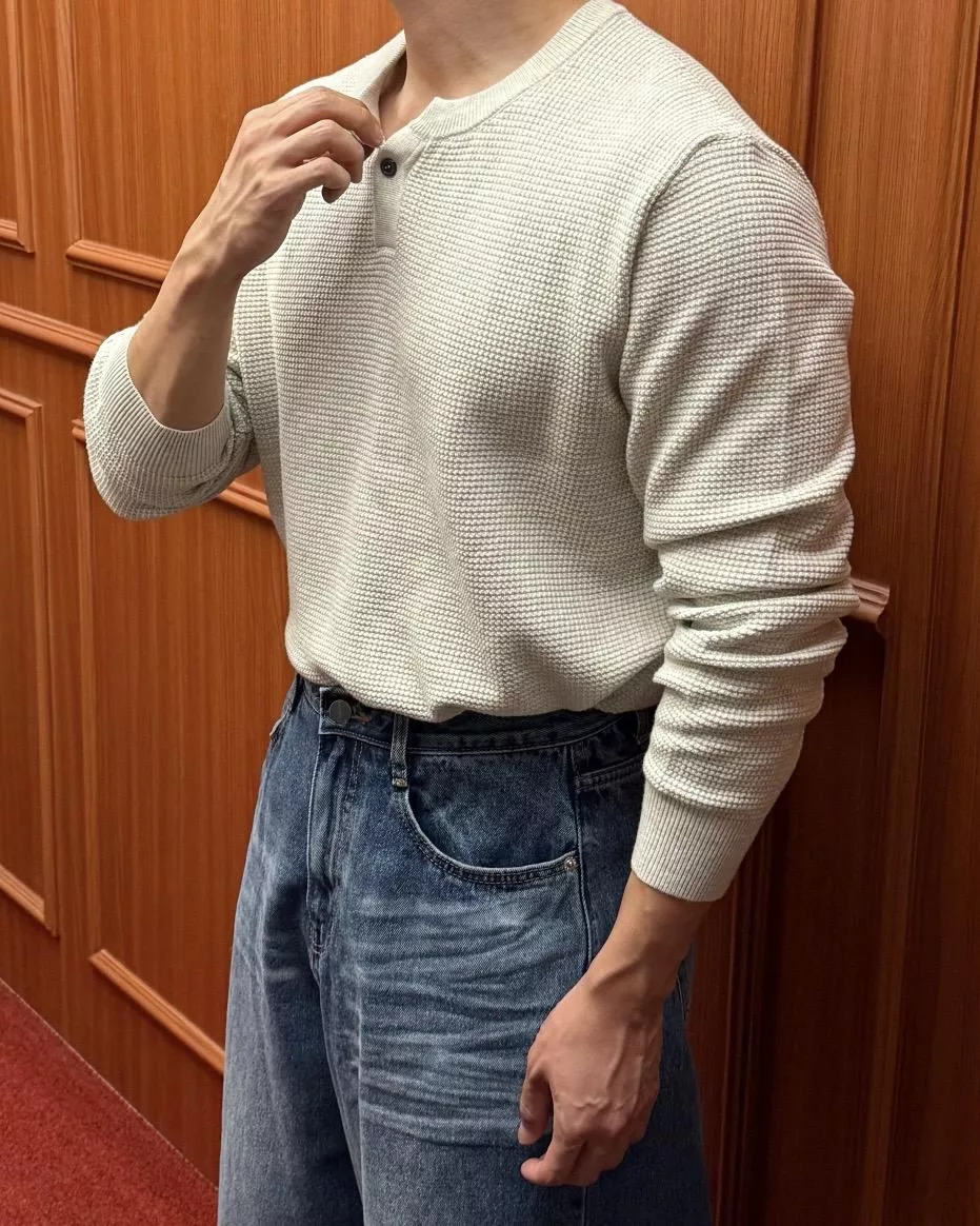 春天熱銷的單釦亨利領短袖 推出了秋冬長袖版♡