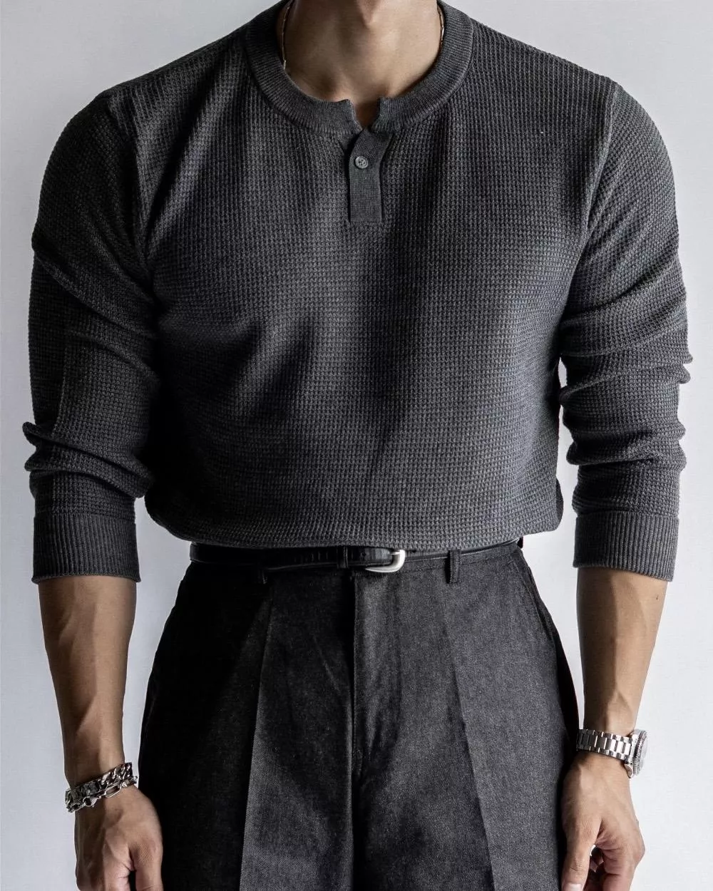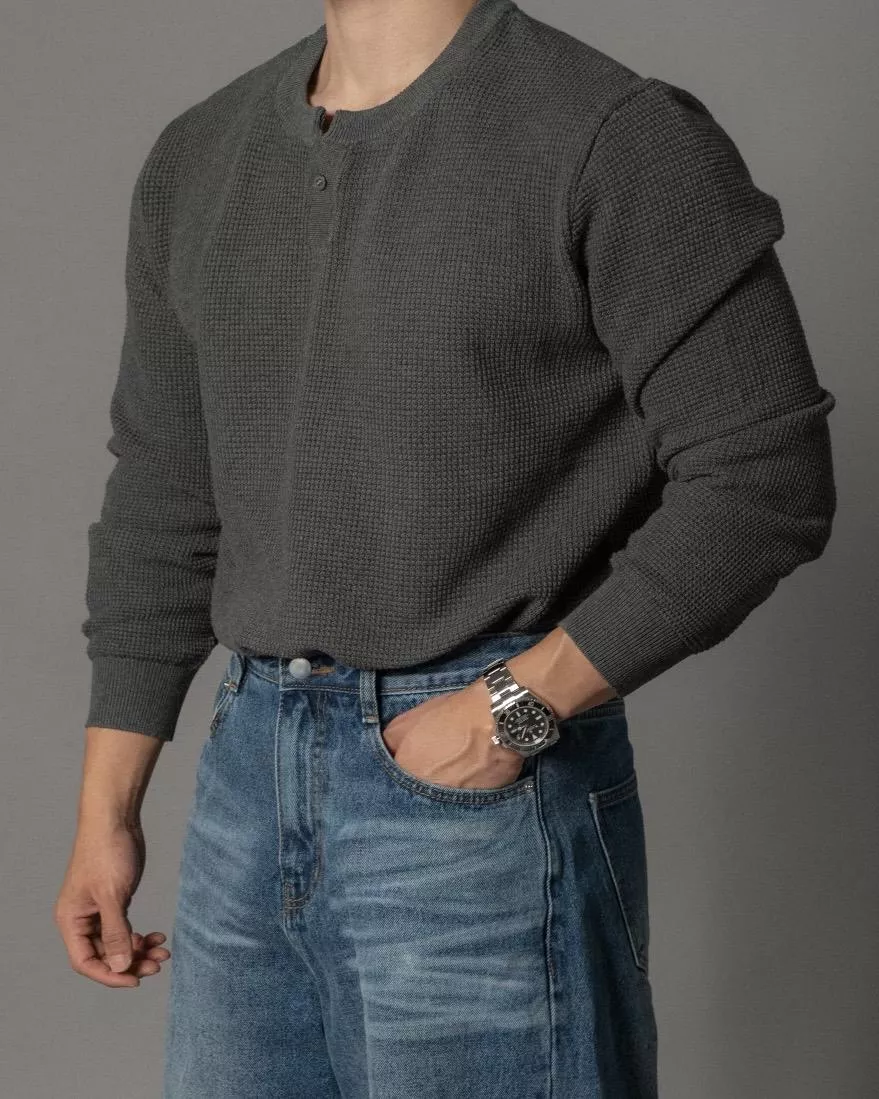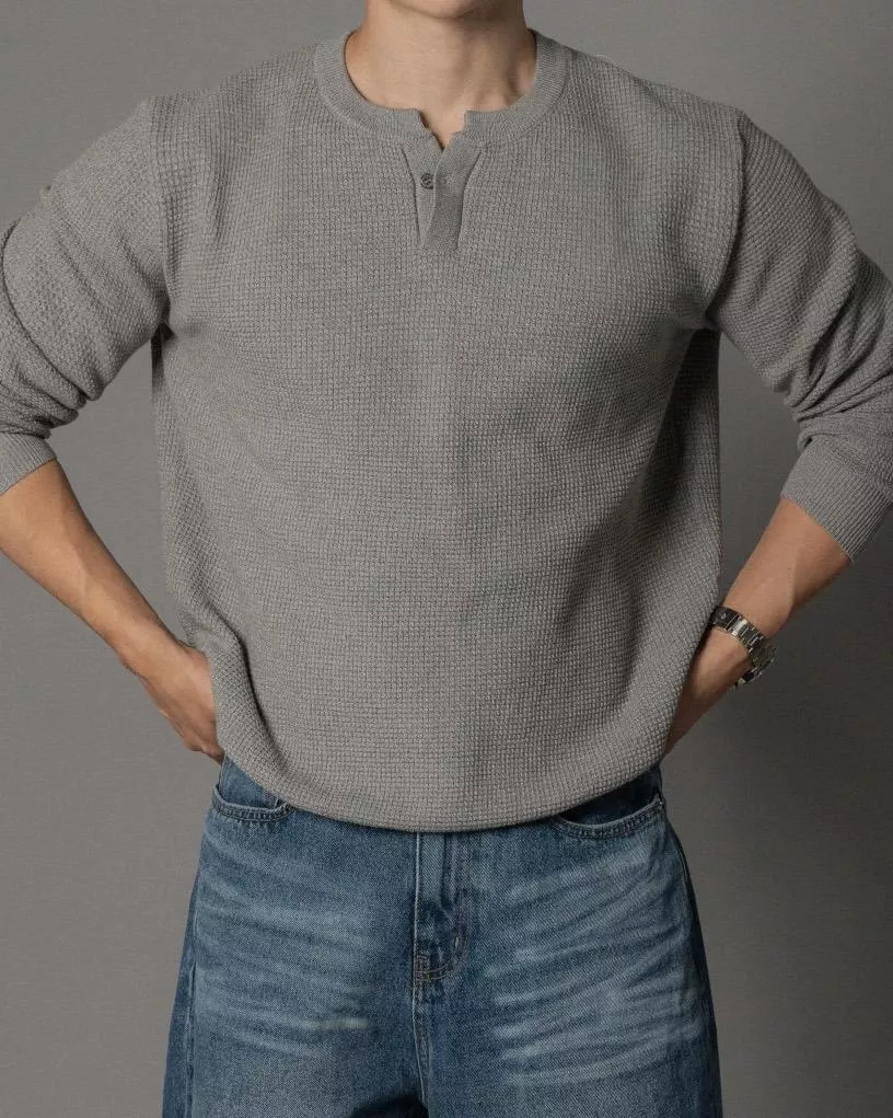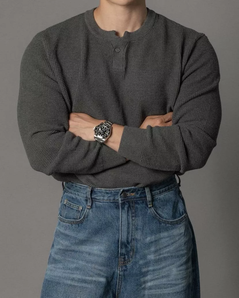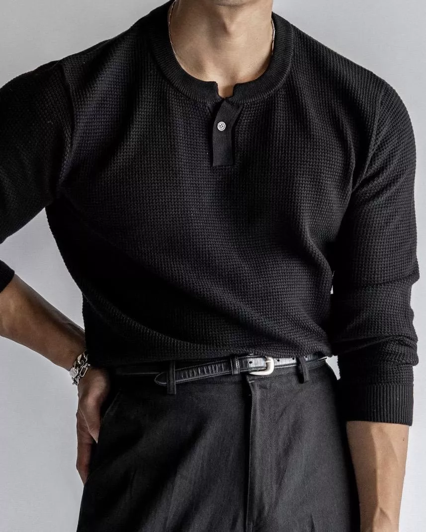 春天熱銷的單釦亨利領短袖 推出了秋冬長袖版♡