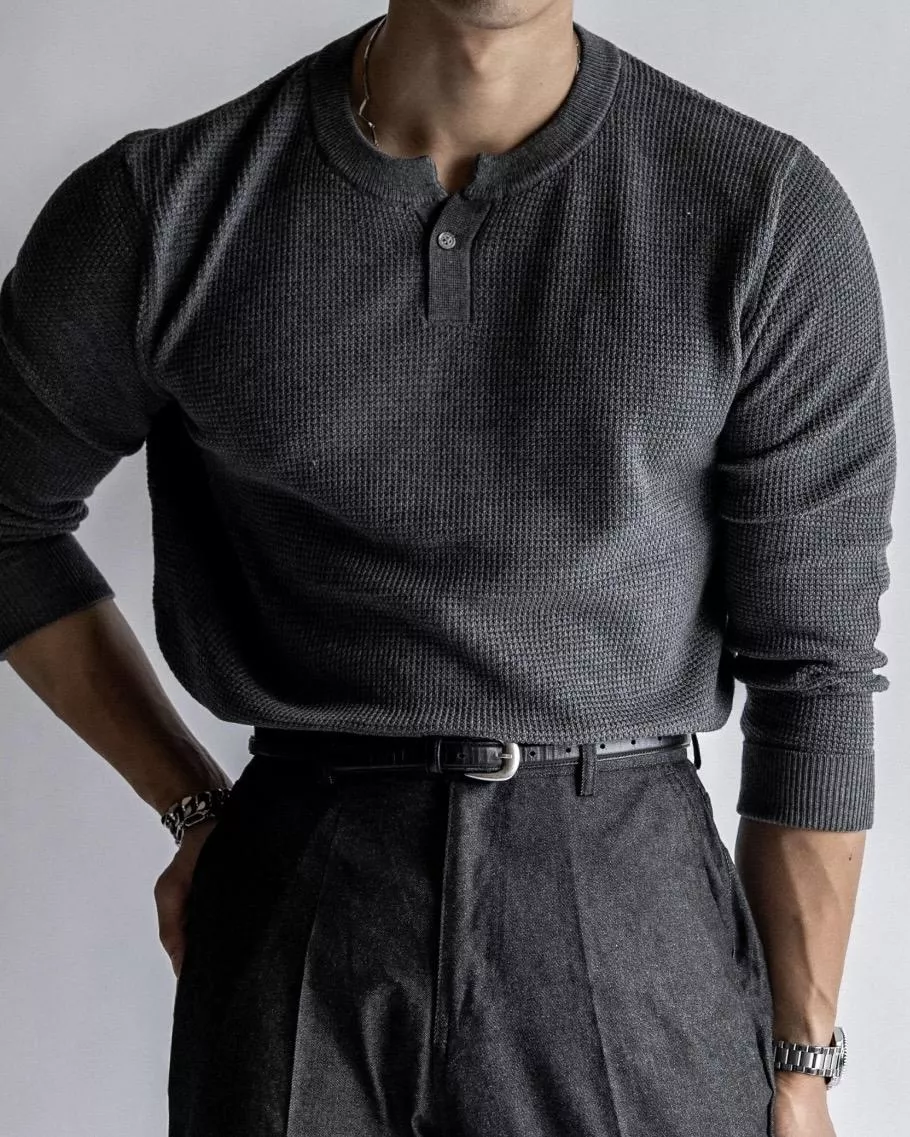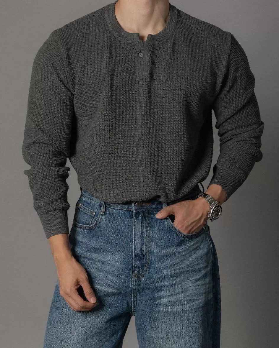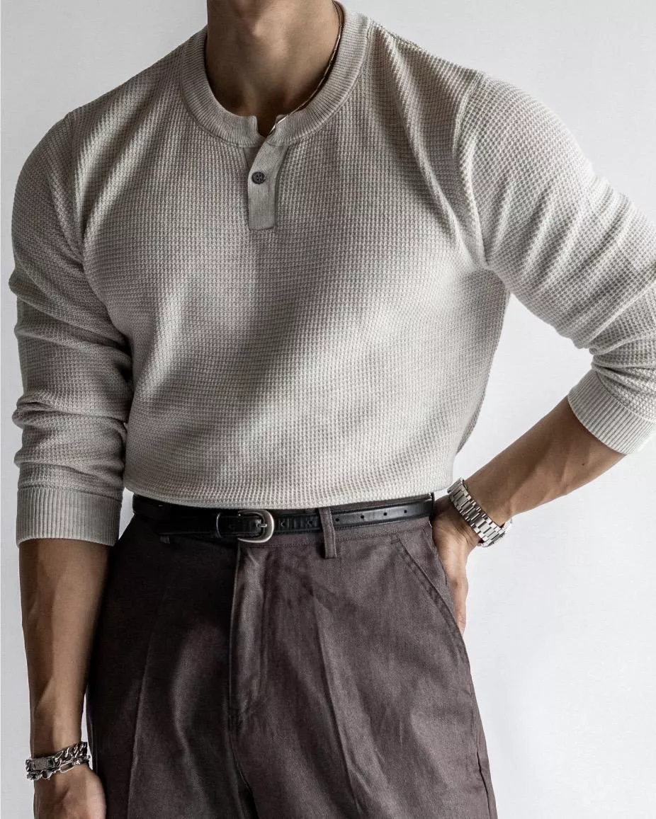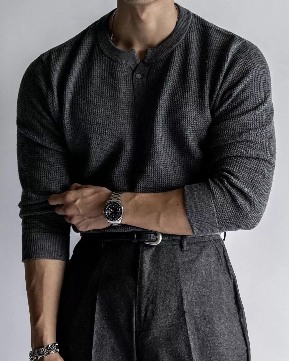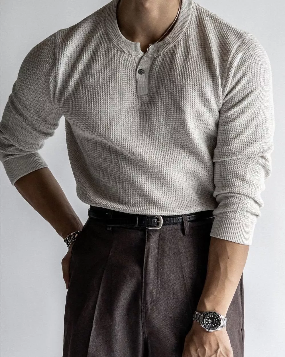 春天熱銷的單釦亨利領短袖 推出了秋冬長袖版♡