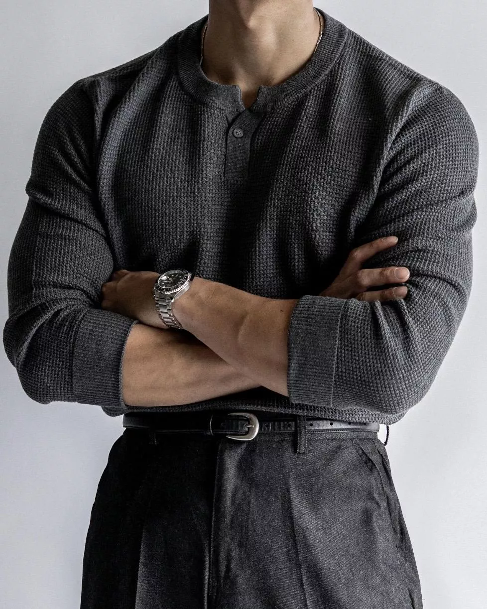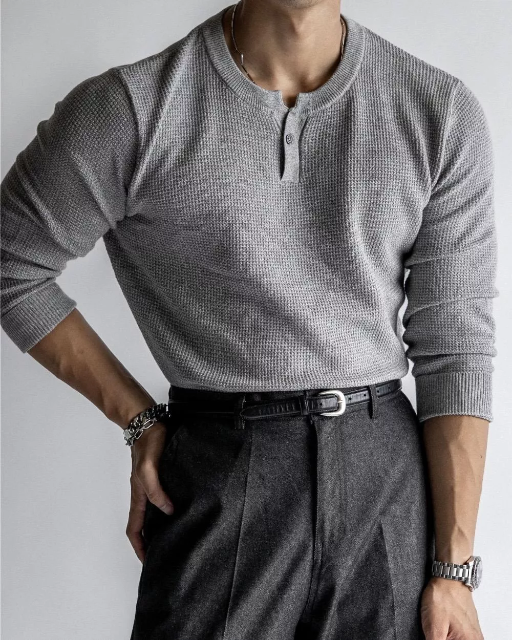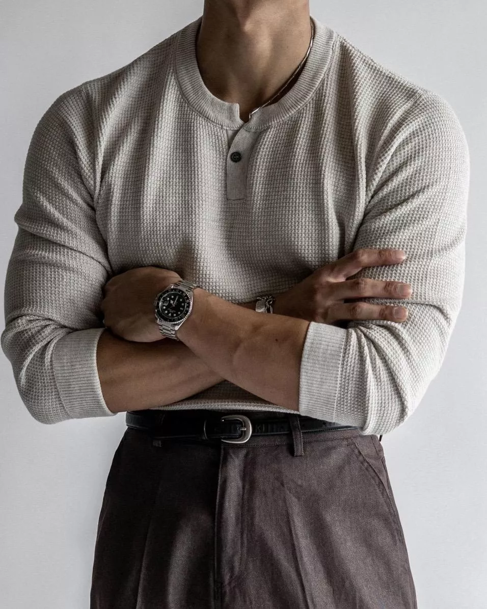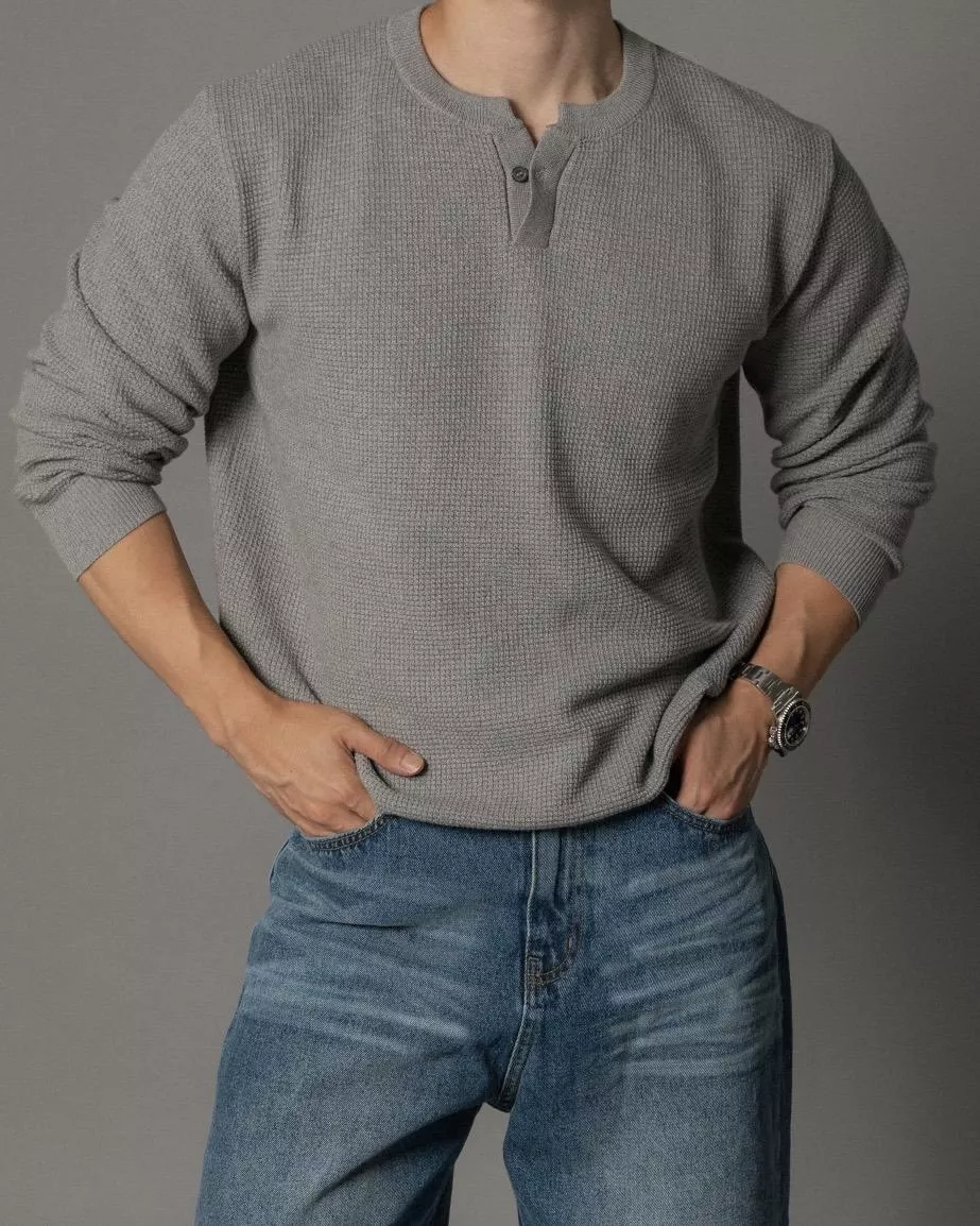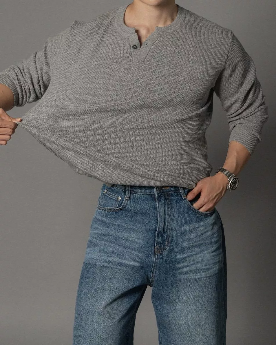 春天熱銷的單釦亨利領短袖 推出了秋冬長袖版♡