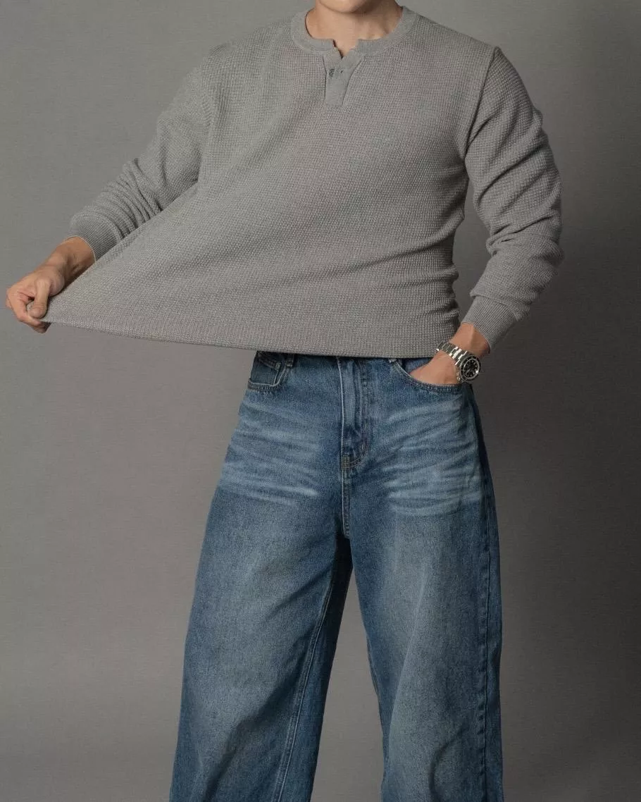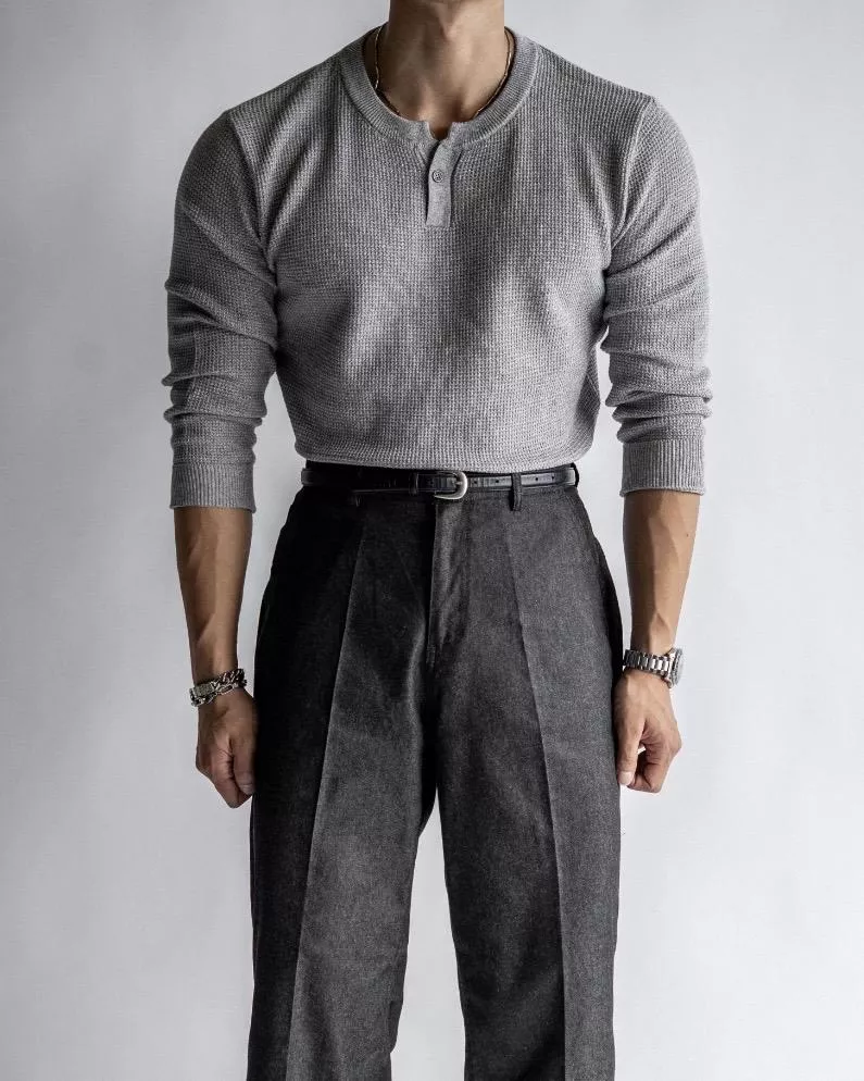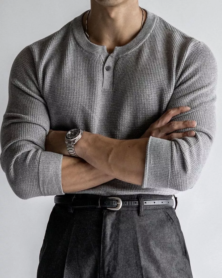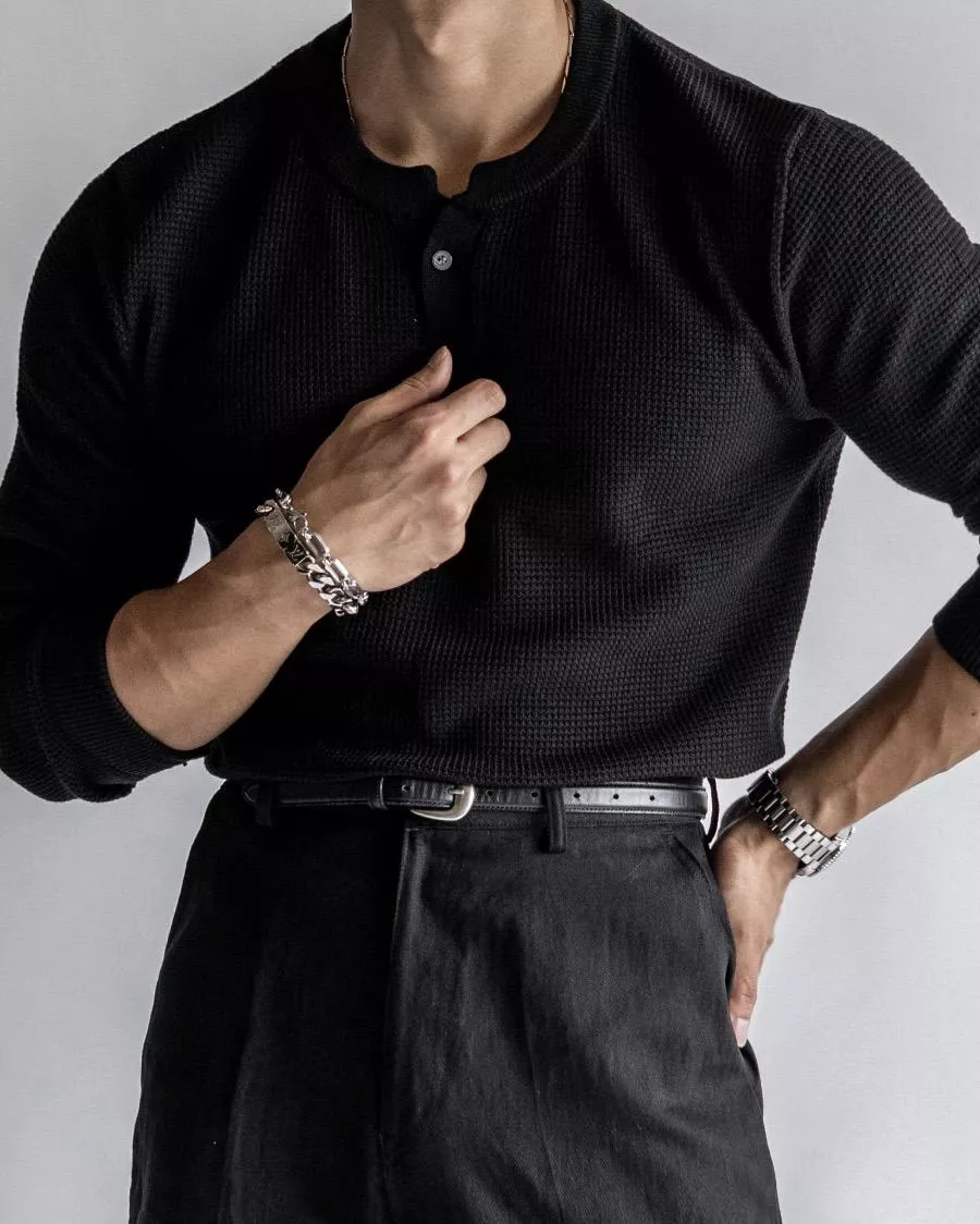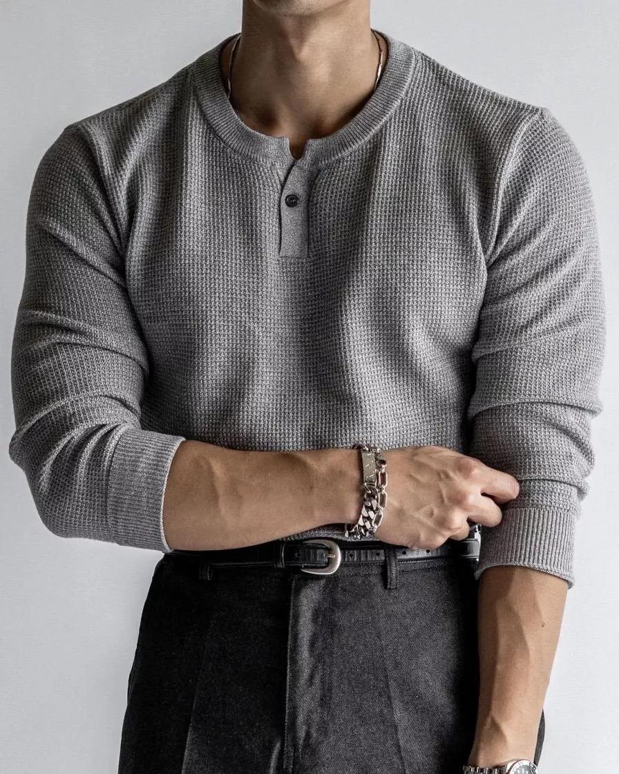 春天熱銷的單釦亨利領短袖 推出了秋冬長袖版♡