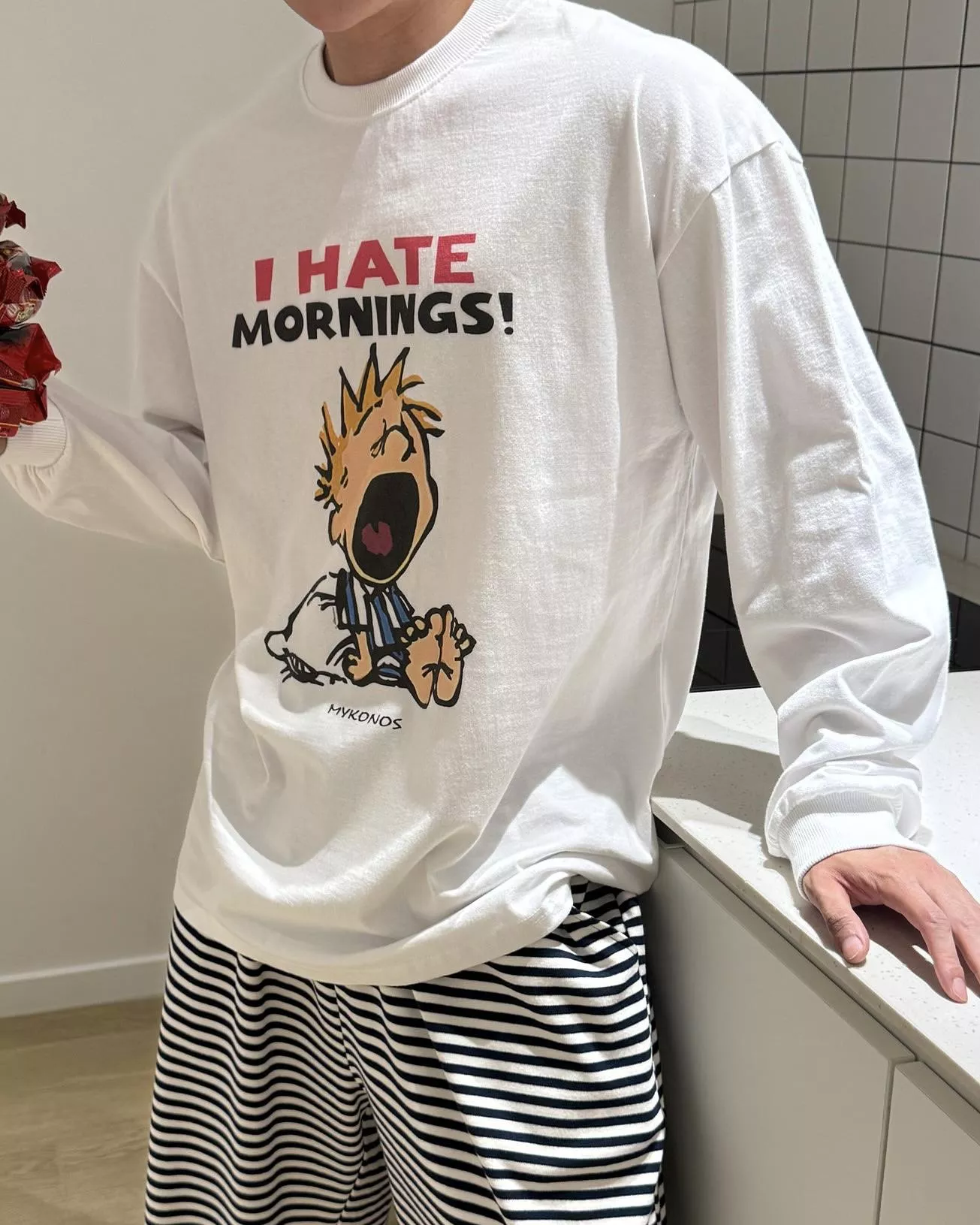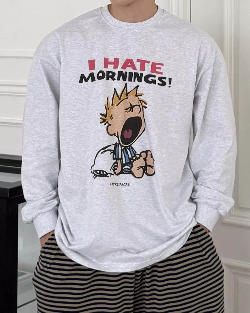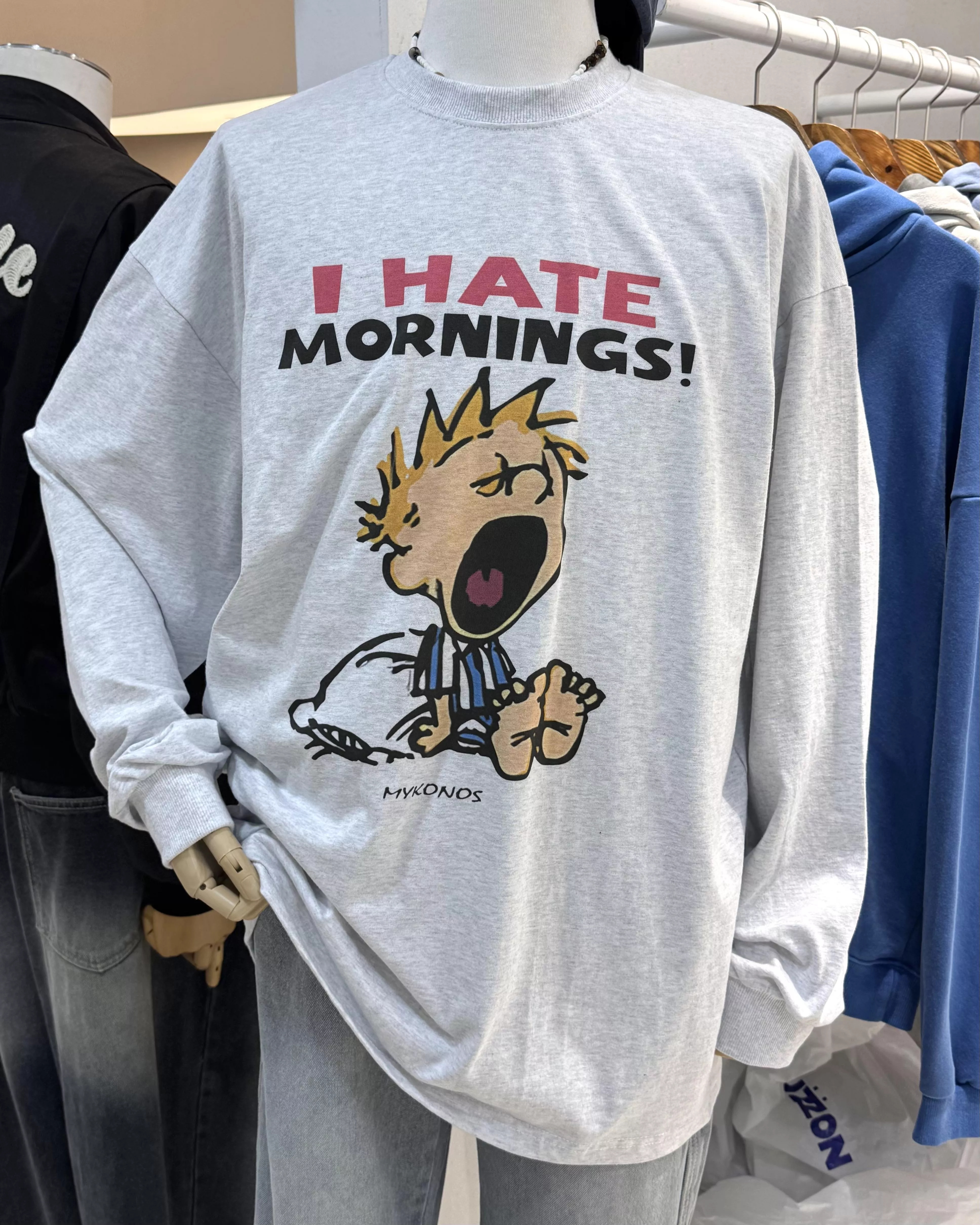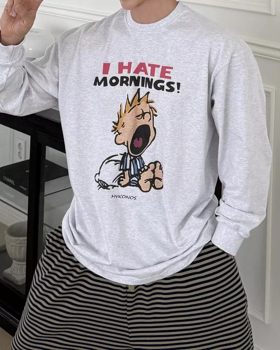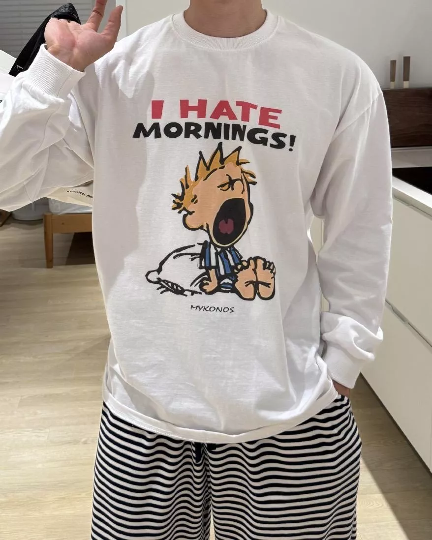 HATE MORNINGS .ᐟ.ᐟ 瞌睡蟲印花長袖