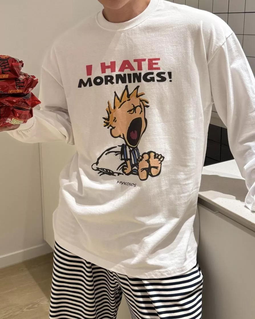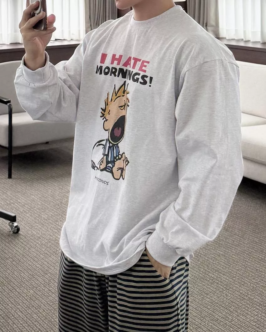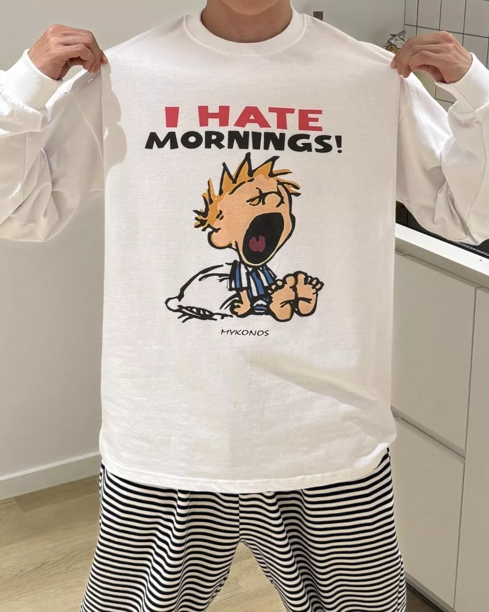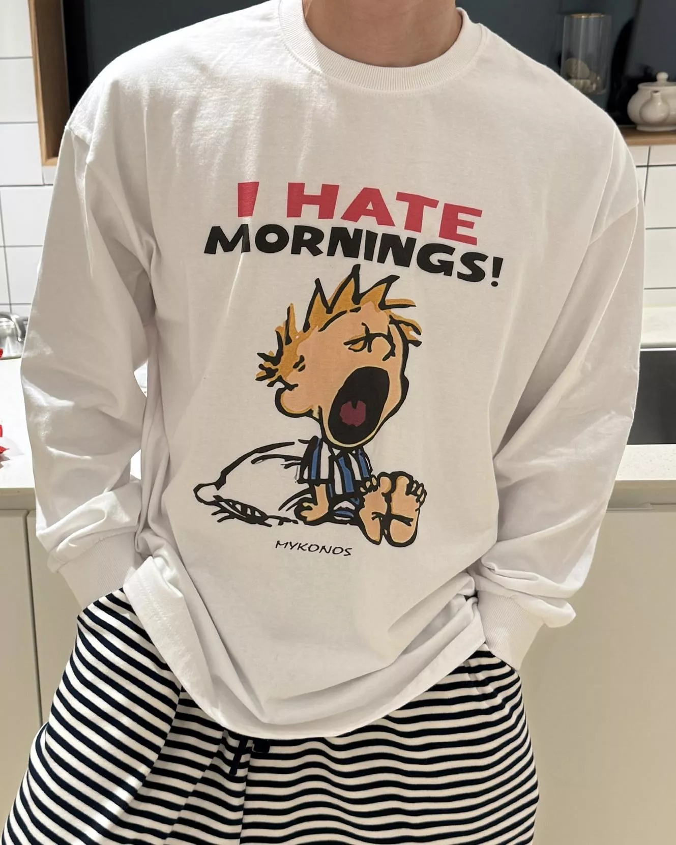 HATE MORNINGS .ᐟ.ᐟ 瞌睡蟲印花長袖