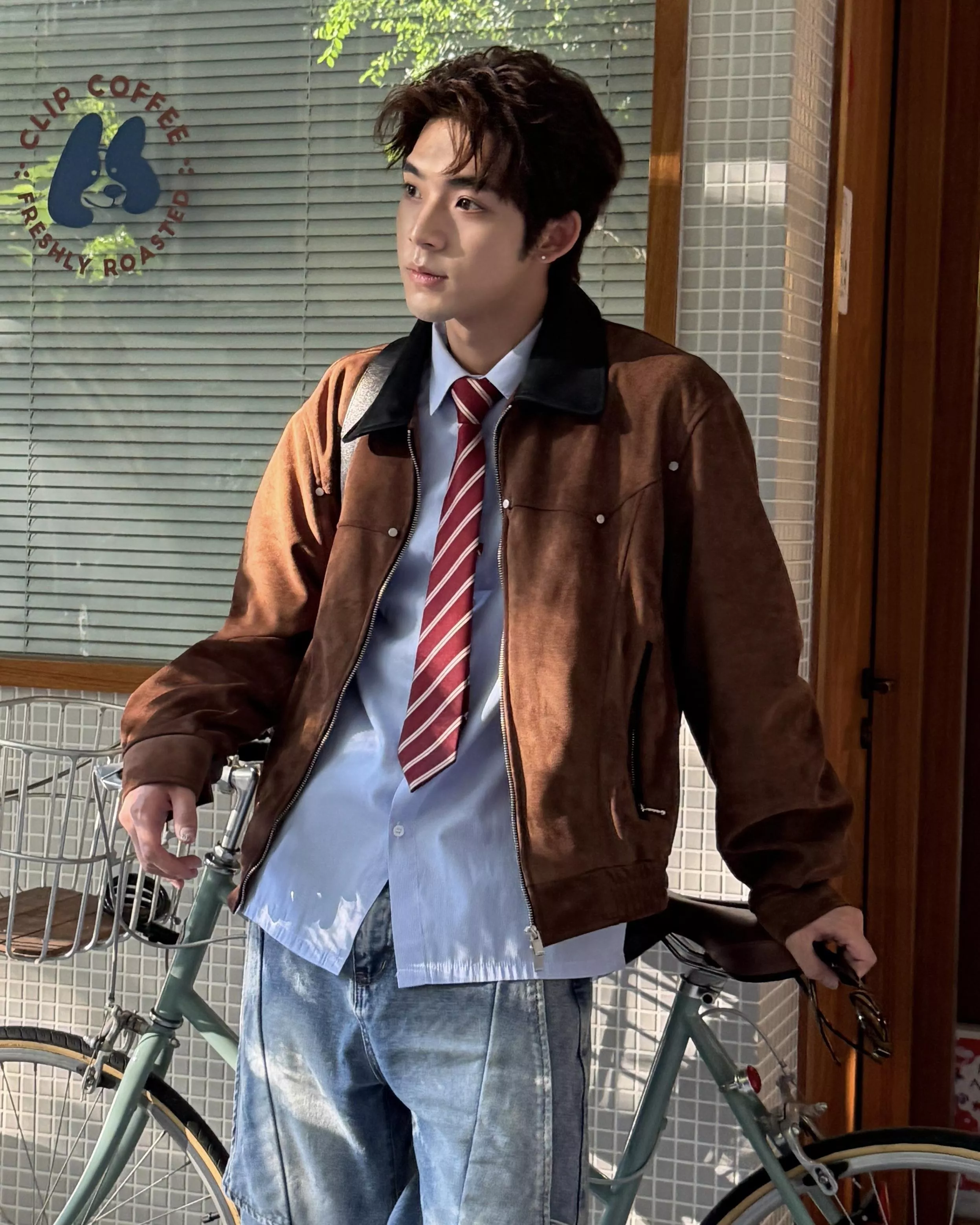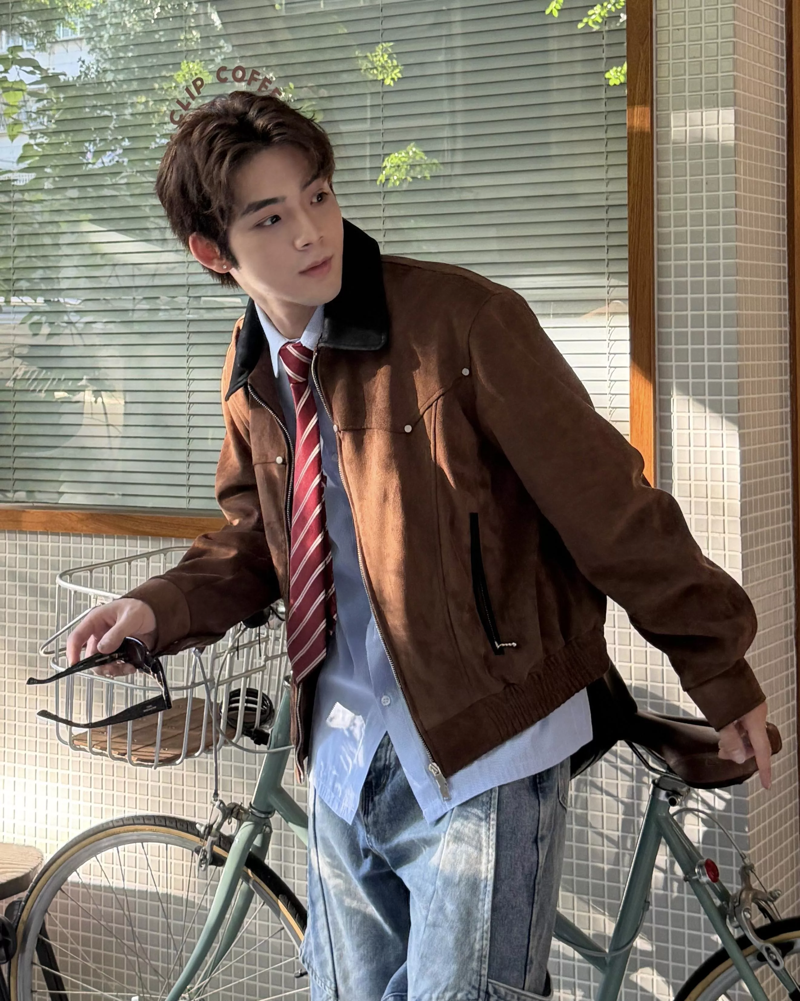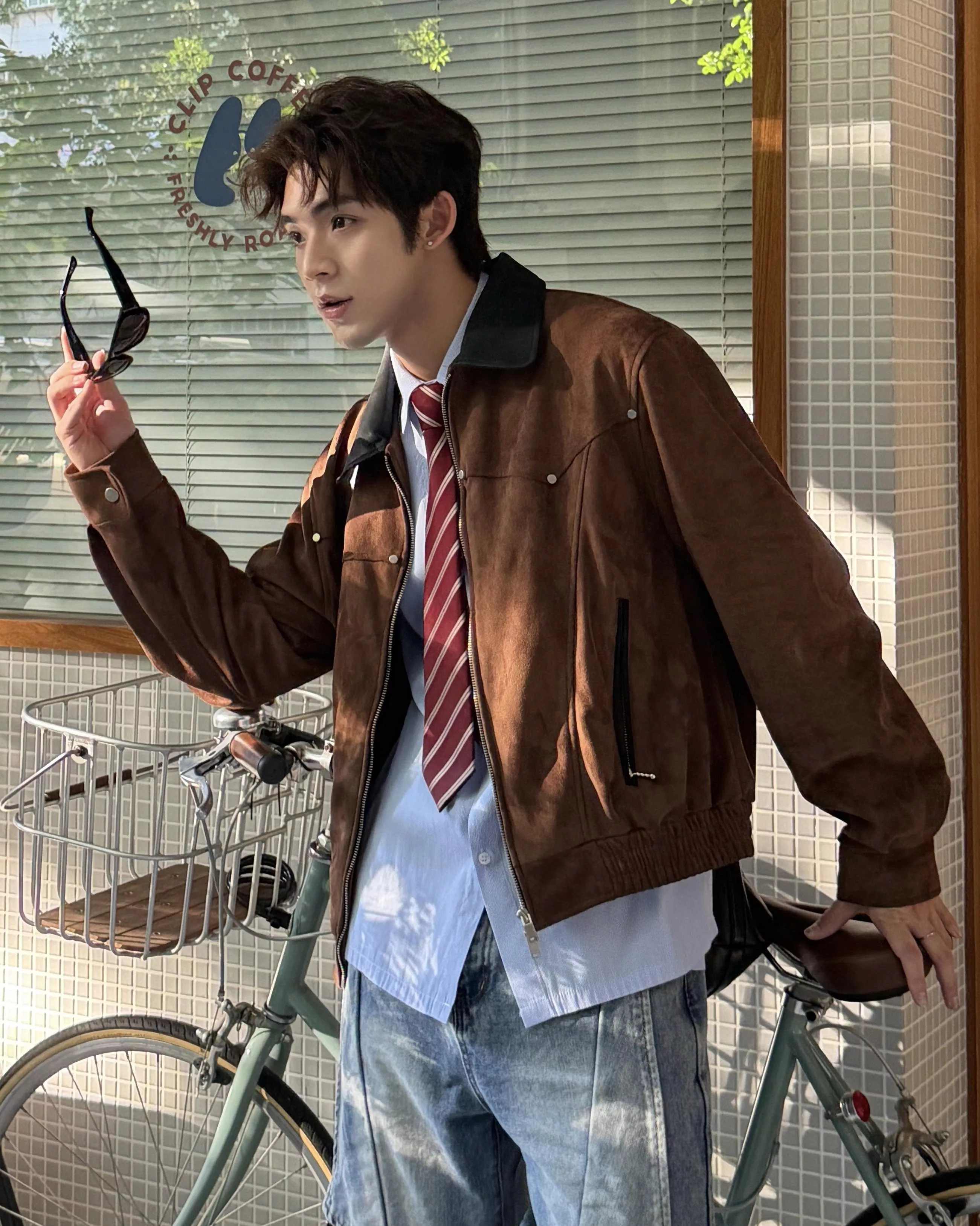 背面設計上亦不馬虎|整體是硬挺親膚的麂皮外套