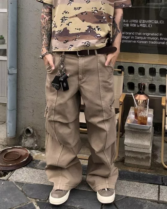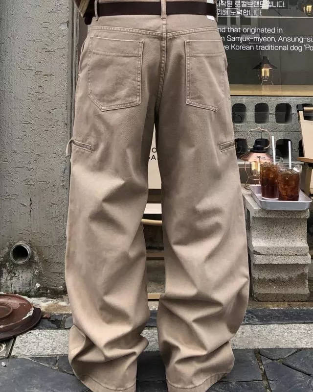 水洗染色 雙痕無褶剪裁直筒落地工褲