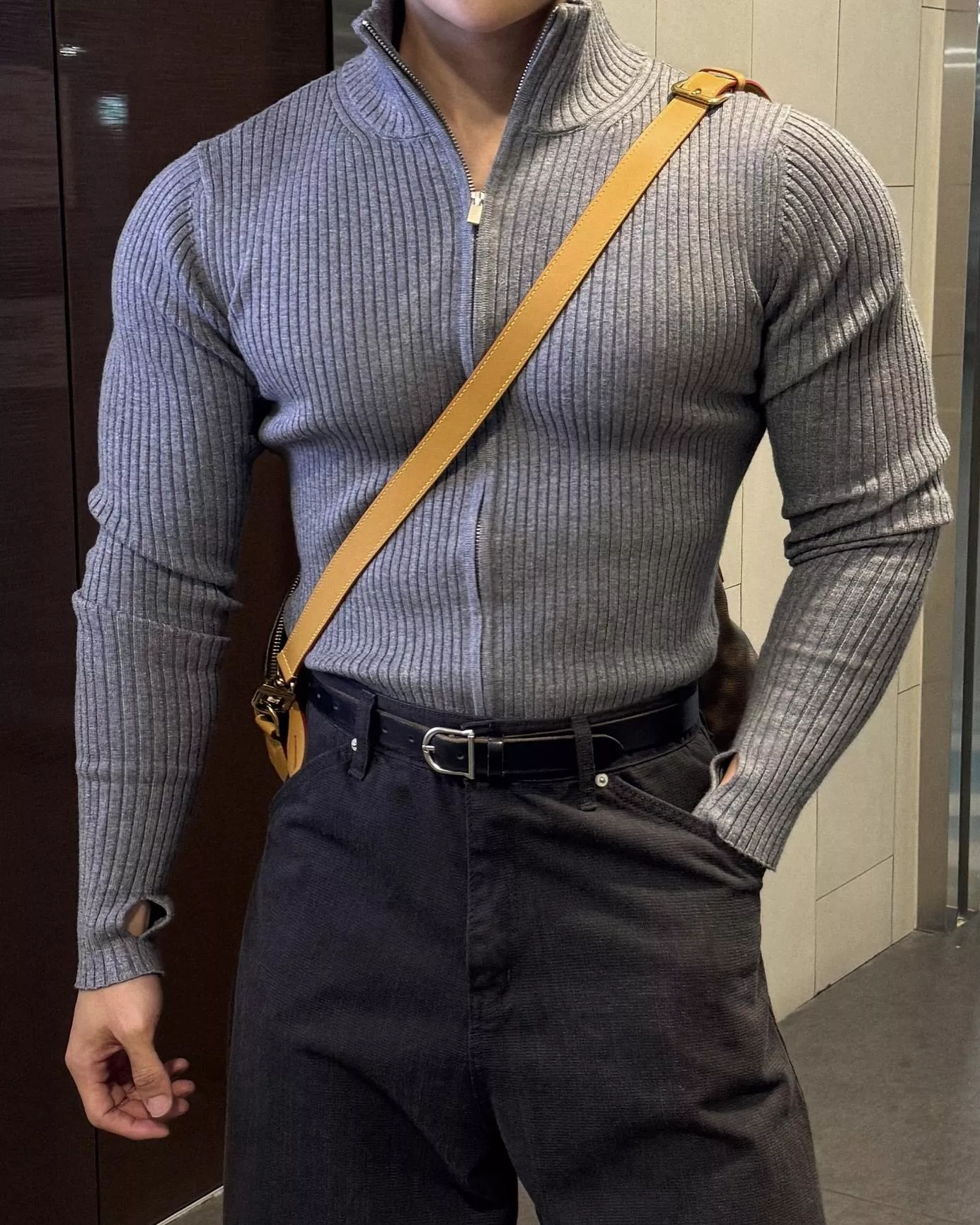 高領剪裁設計營造出洗鍊俐落的氛圍感
