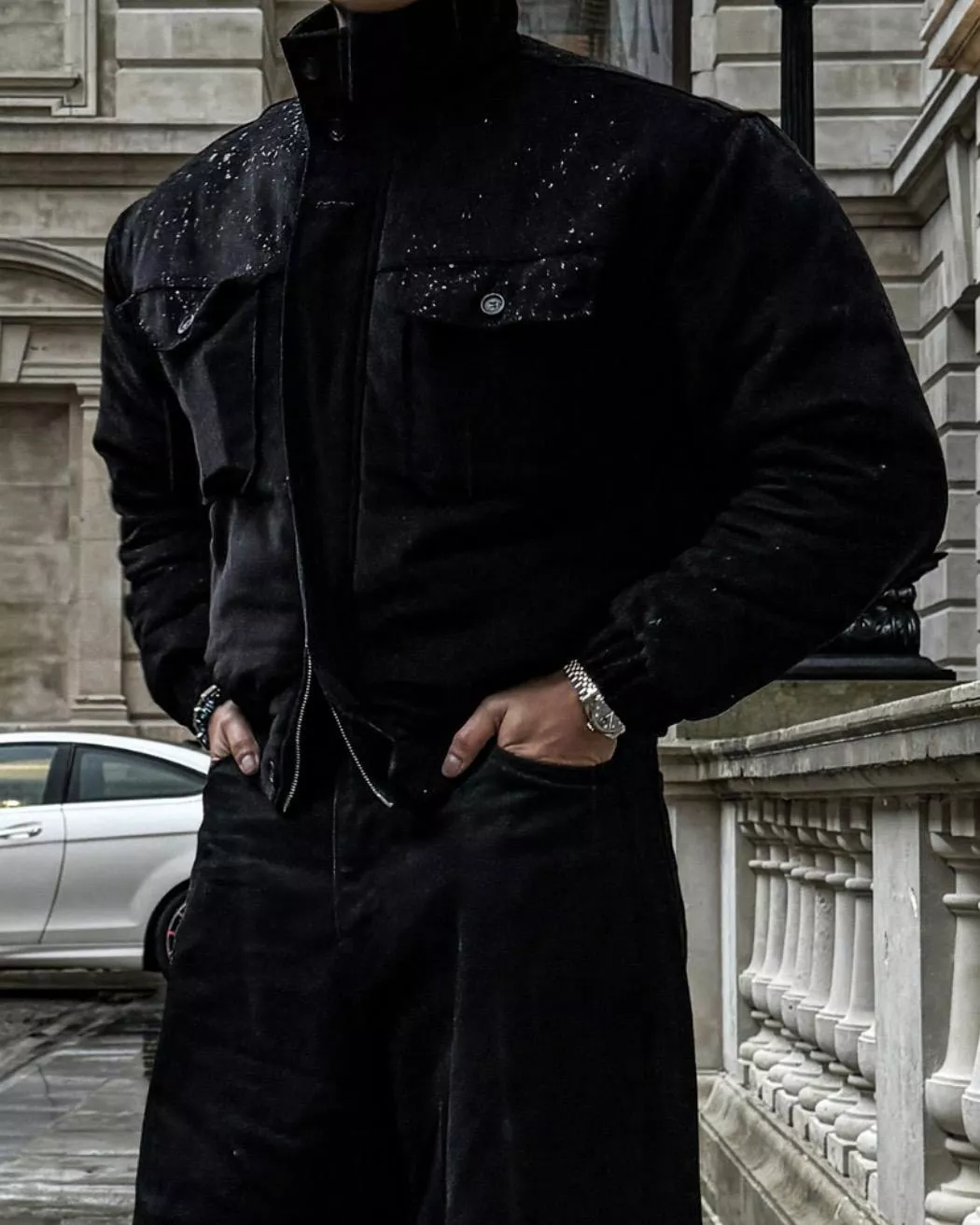 短版剪裁設計的工裝感卡車司機燈芯絨外套