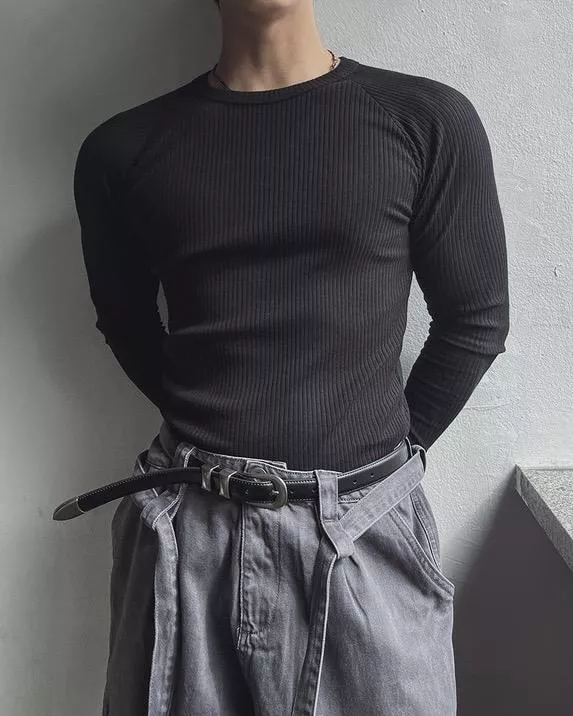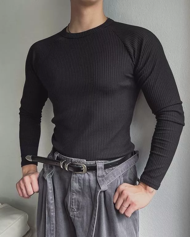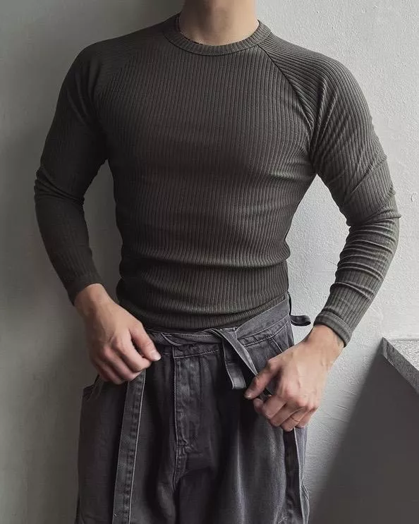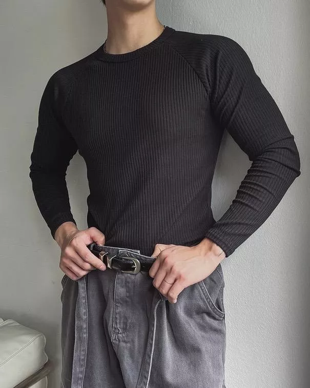 修身顯肌款 羅紋彈性合身長袖