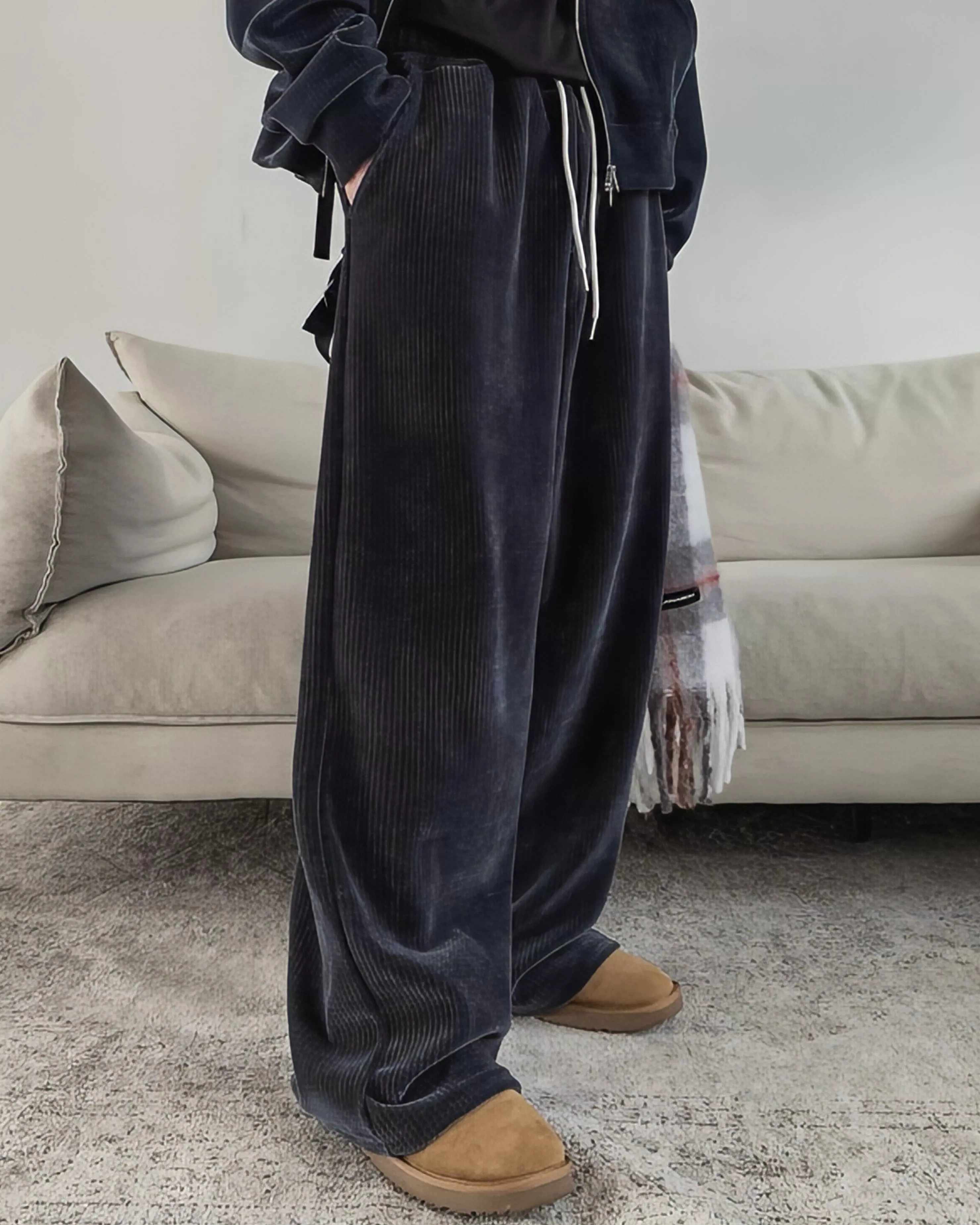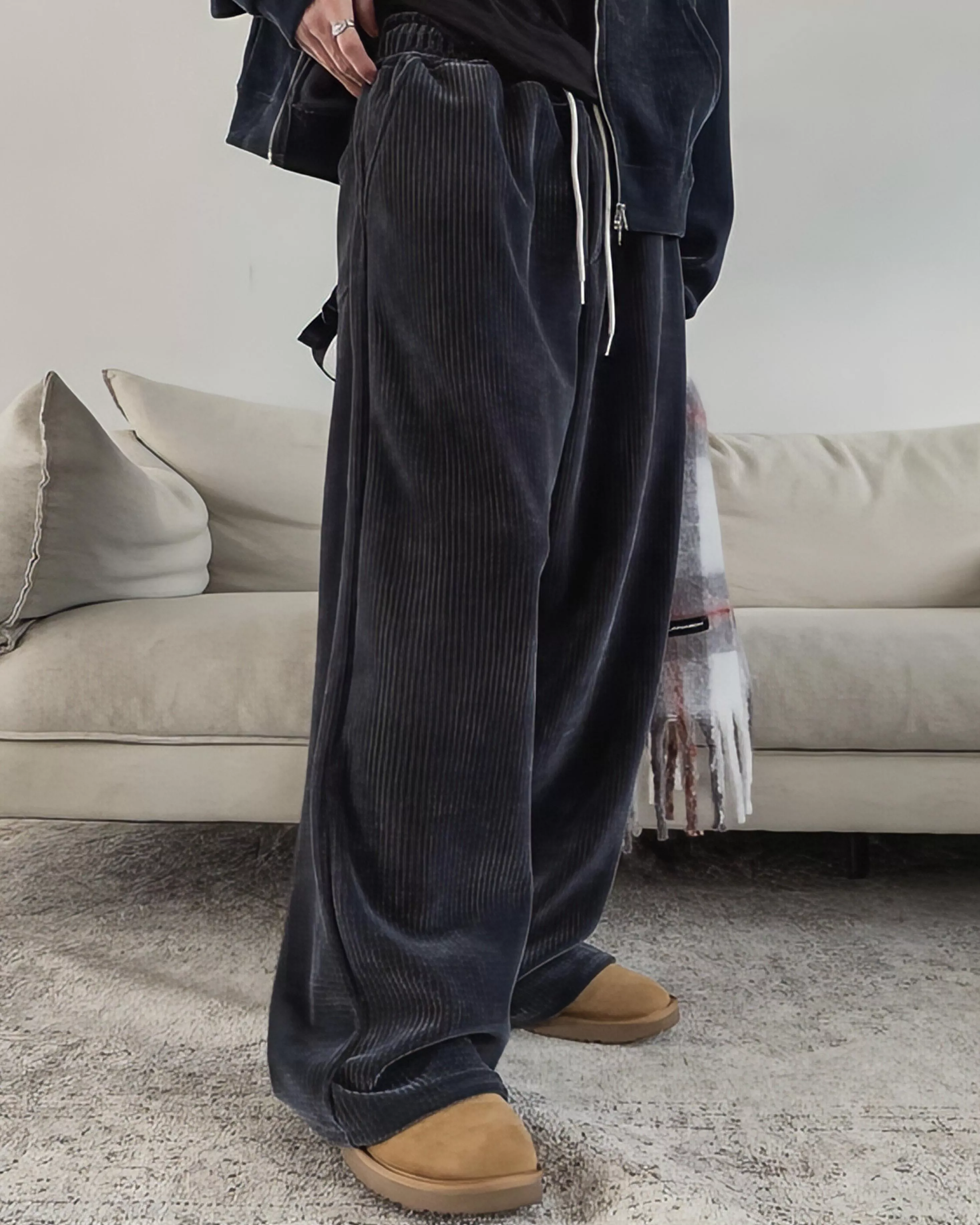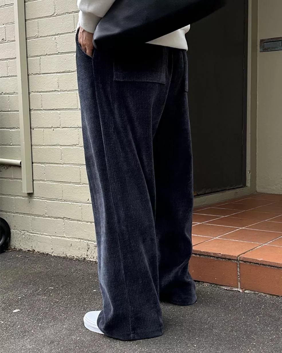 彈性高、寬版剪裁、親膚舒適的燈芯絨材質