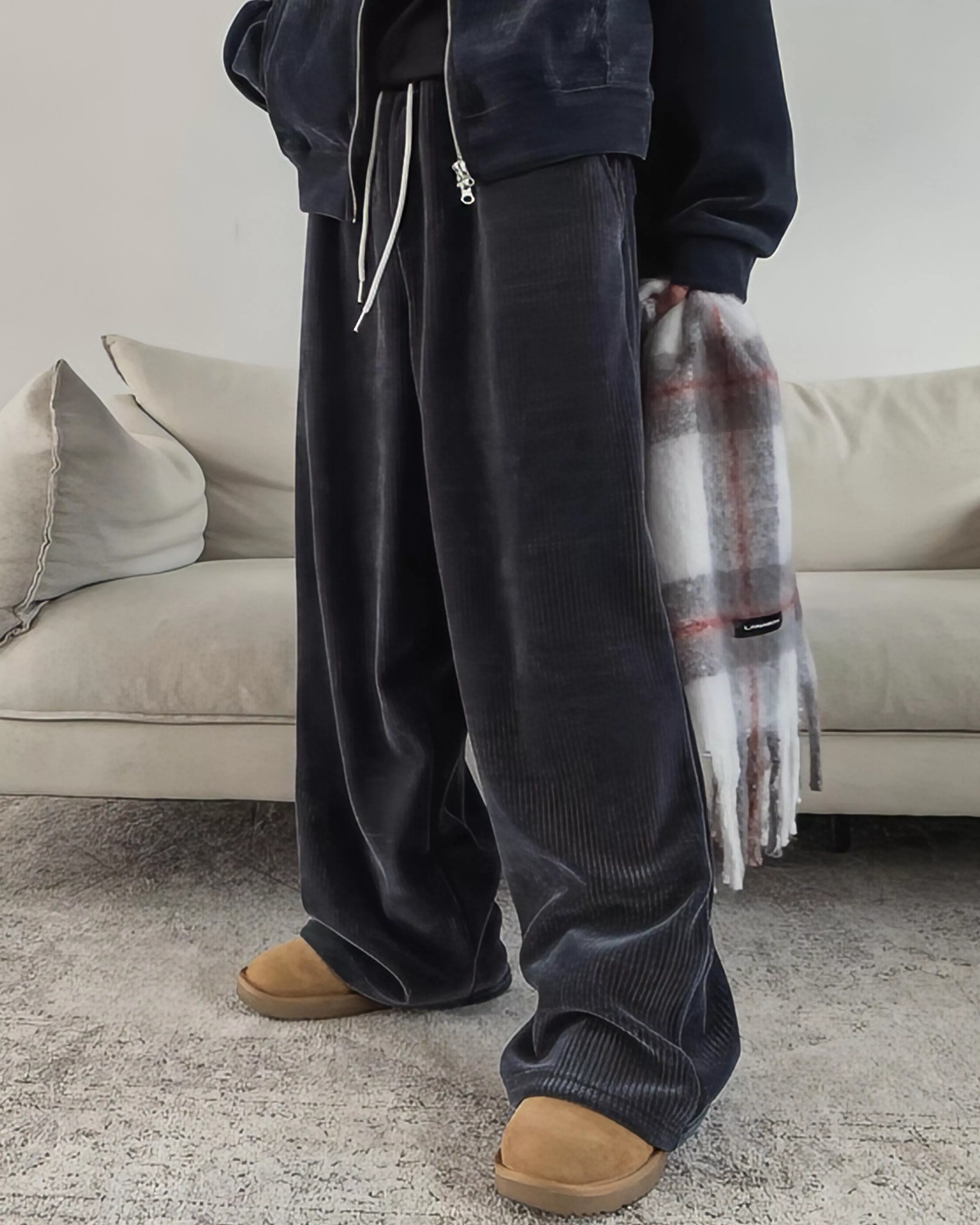 羅賓斯 天鵝絨燈芯絨 寬版休閒長褲