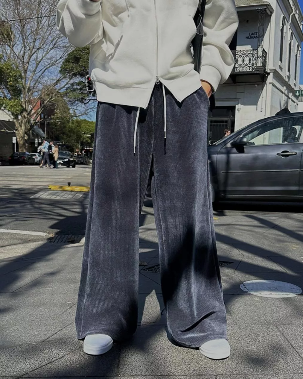 寬版剪裁自然修飾腿型與整體比例!