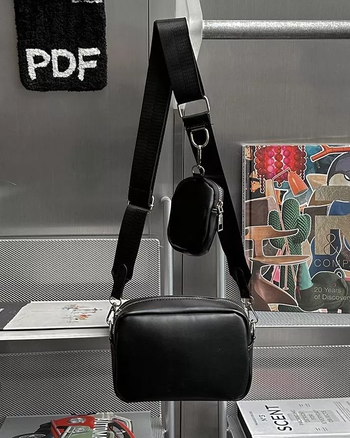 肩帶上附贈掛著的小皮包可當零錢包等等