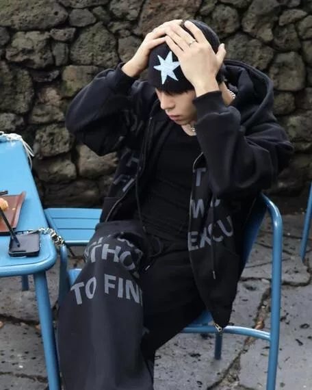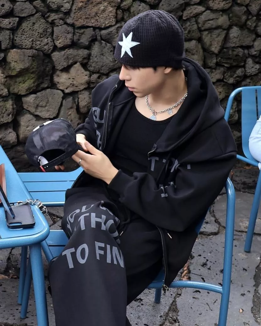 充滿街頭氛圍的水藍色格紋星星刺繡✨