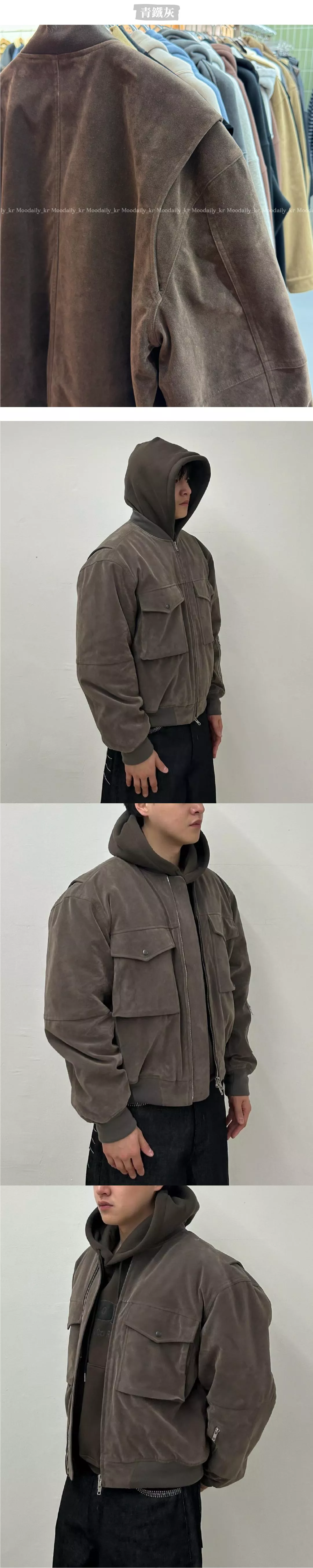 3D層次肩線 四盎司高級磨砂麂皮外套