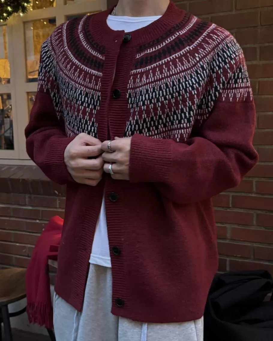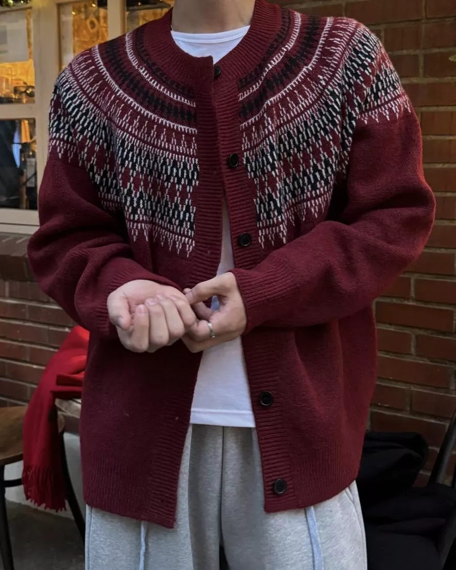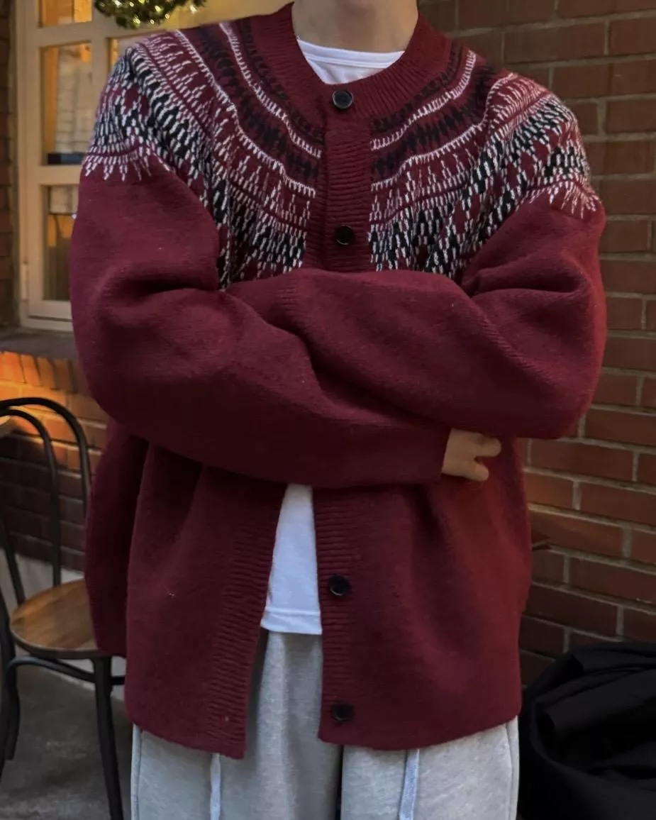 北歐弧形圖騰 拉格蘭針織開襟衫