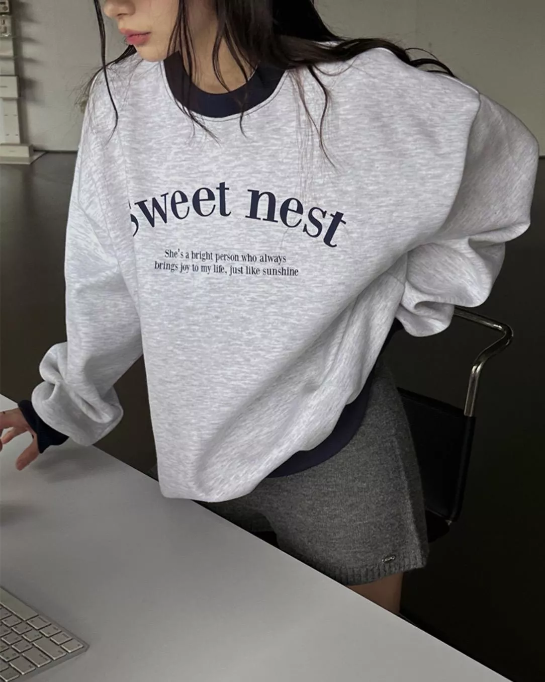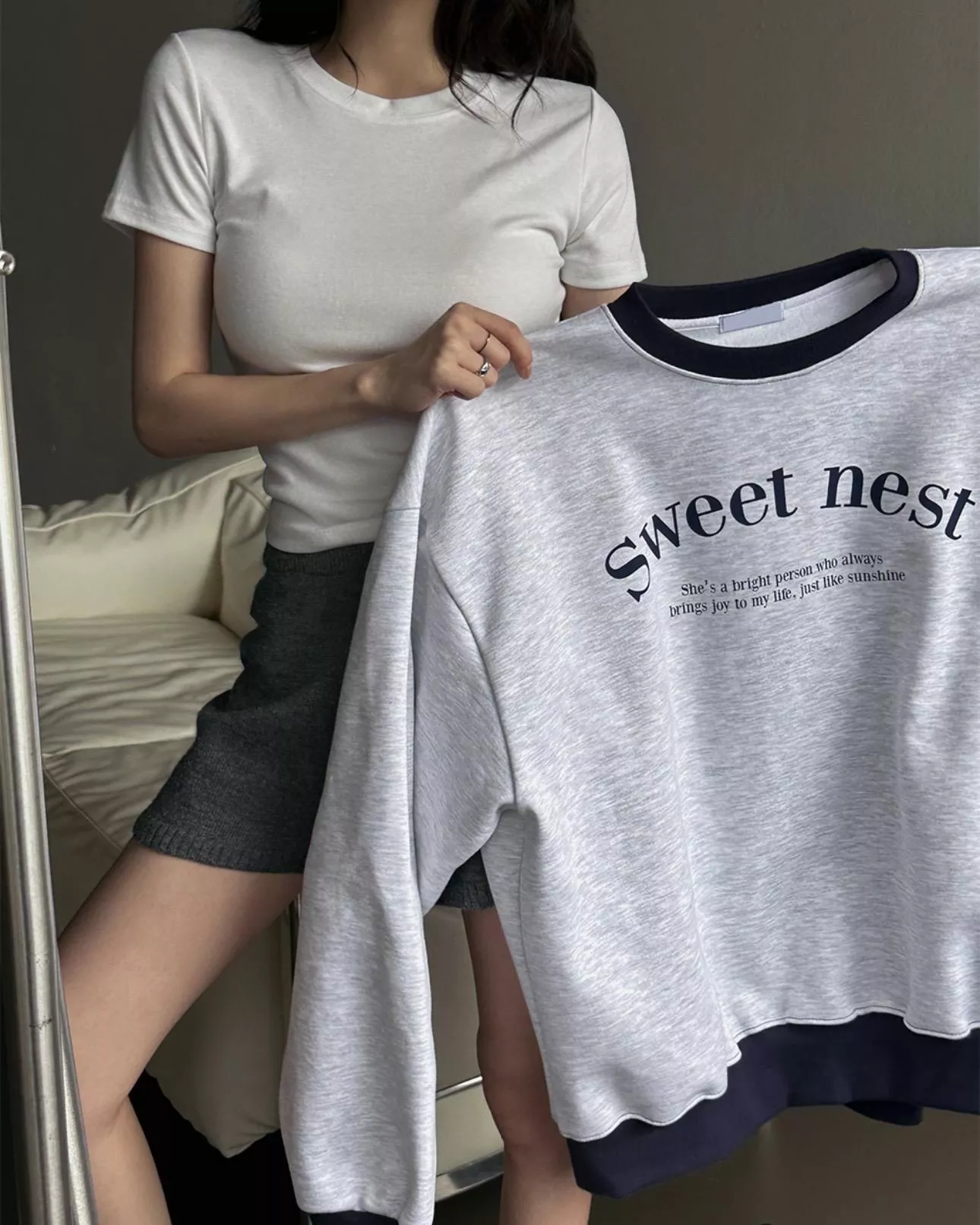 領口跟下擺還加小虛線縫線點綴 偷偷增添可愛感