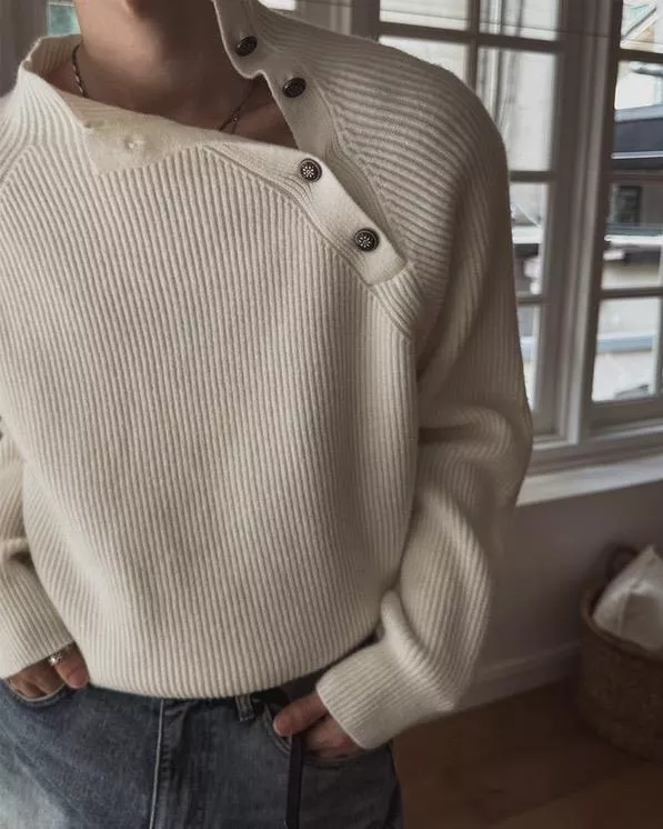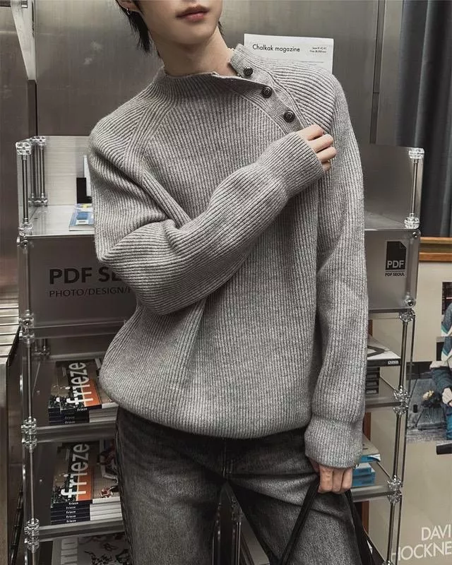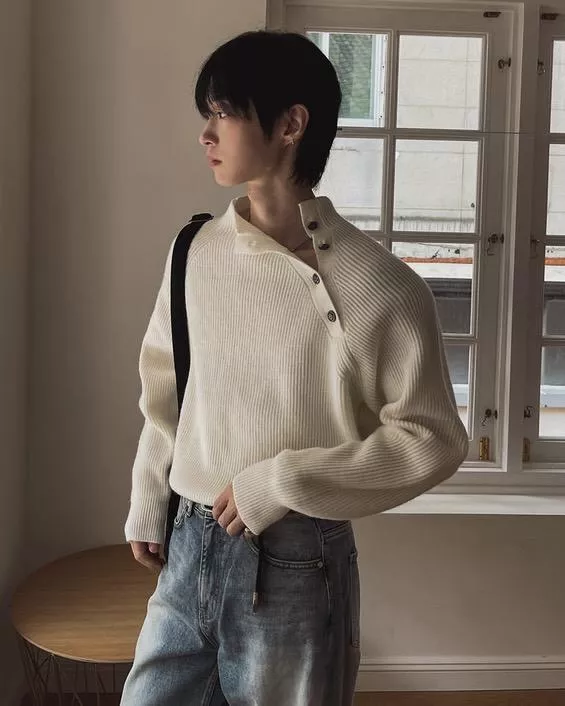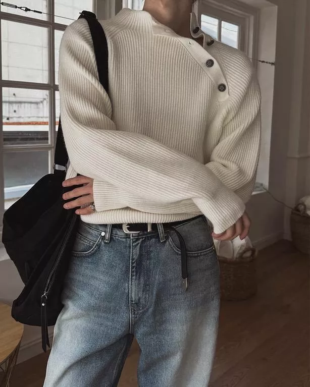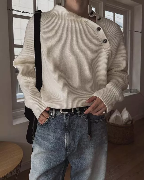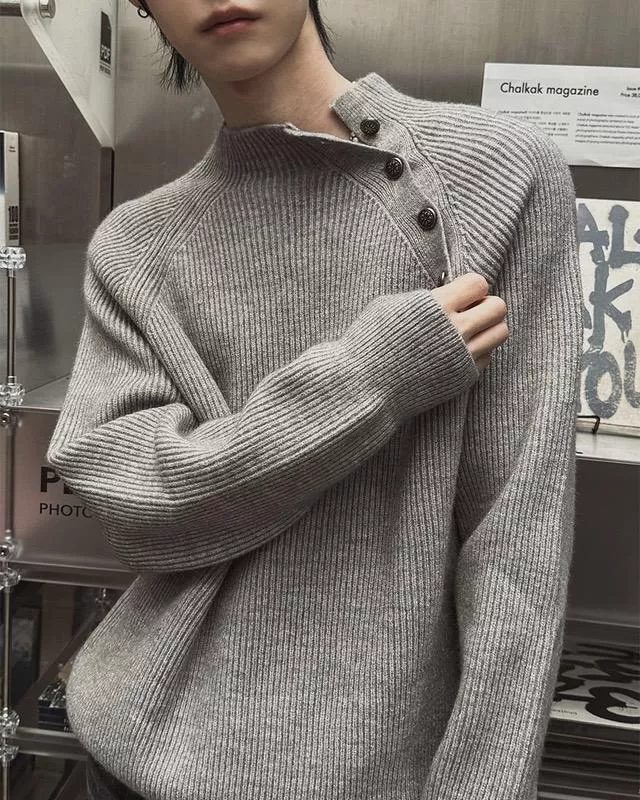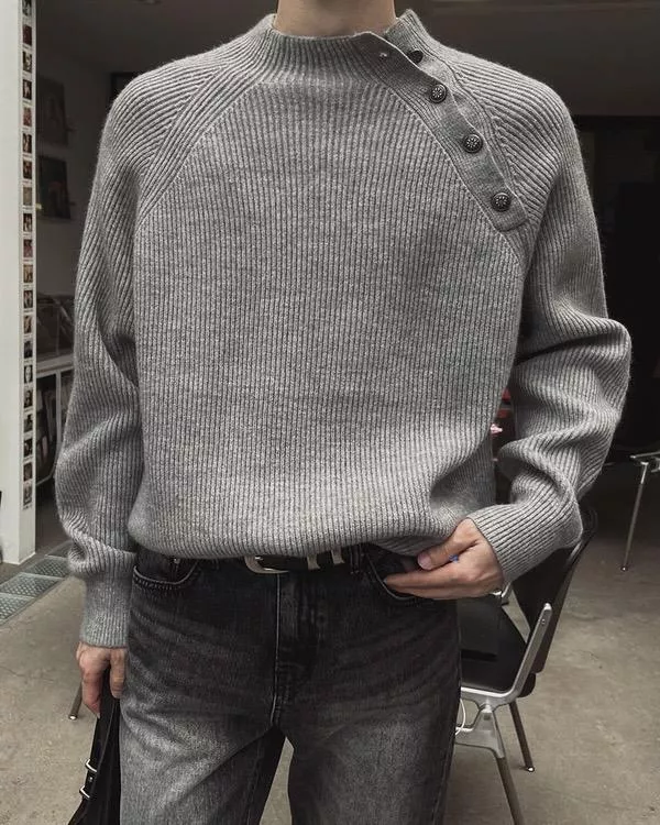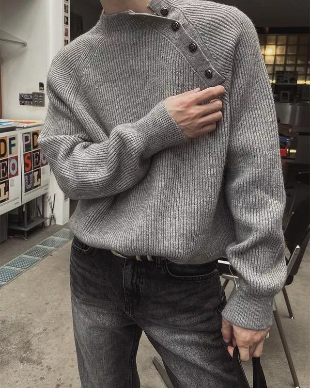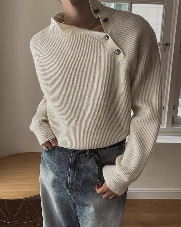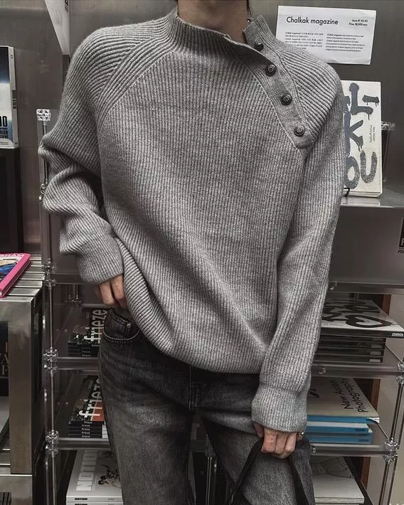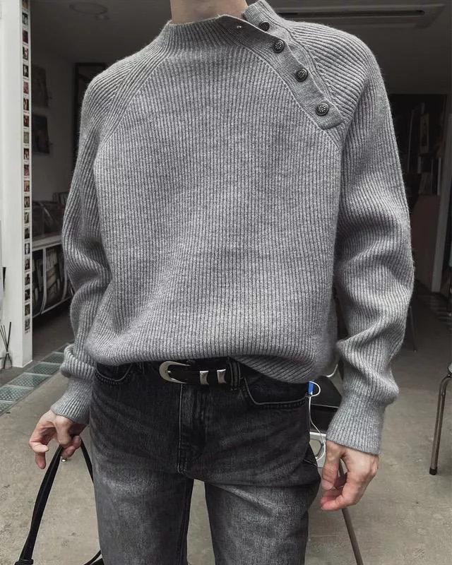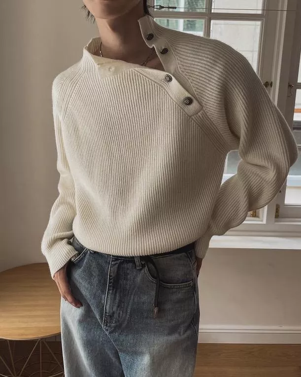 半高領搭配斜向排扣設計|低調但獨具特色✨