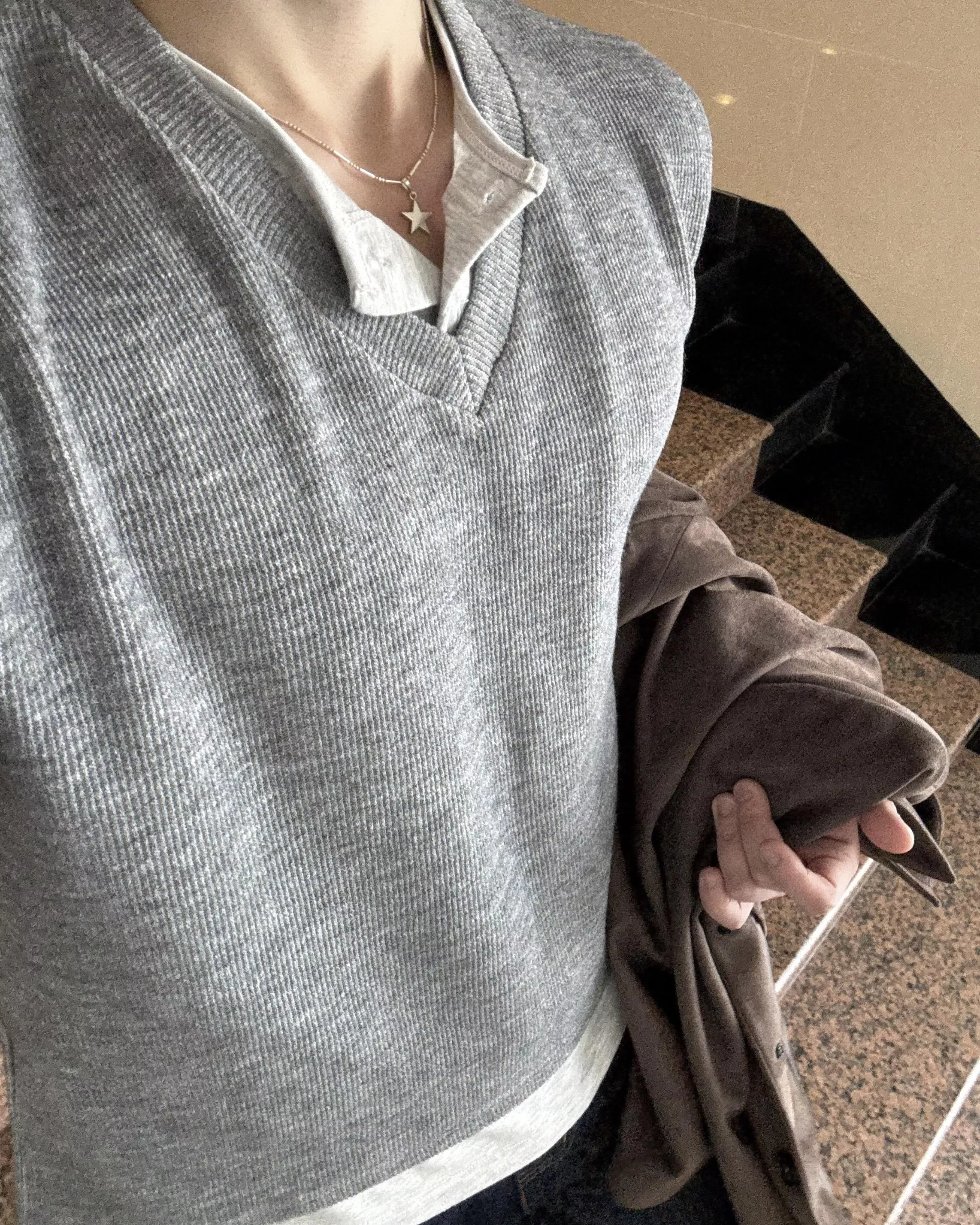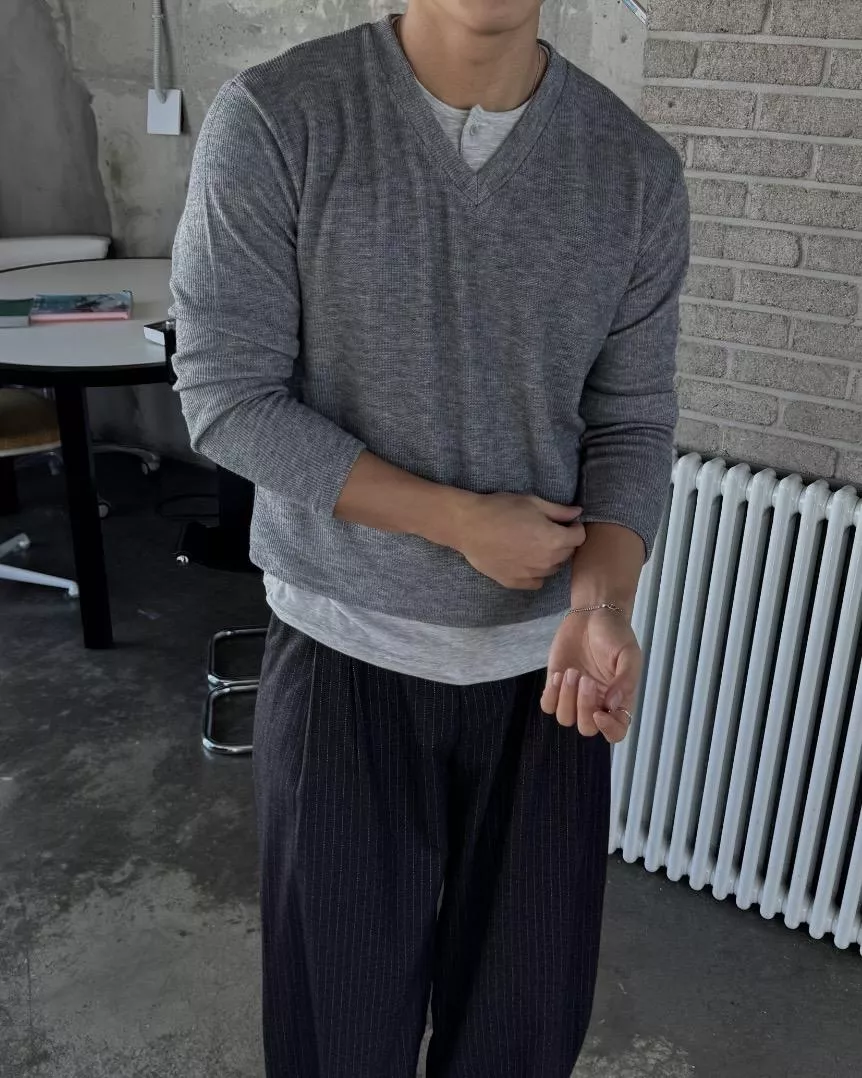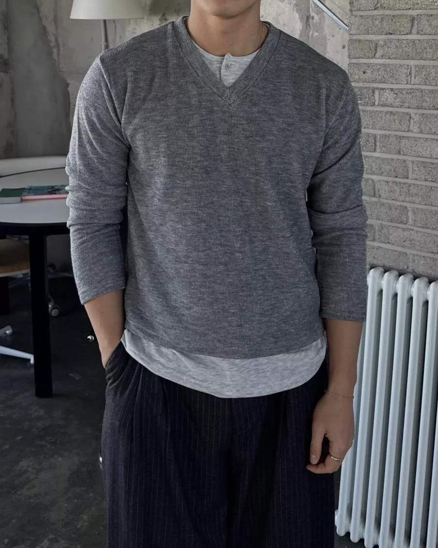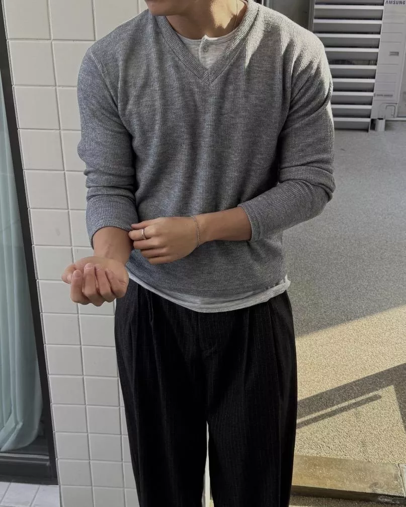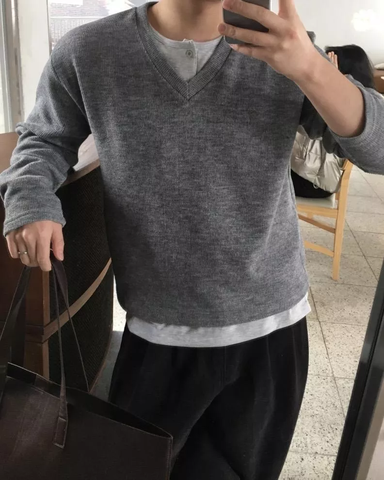 當內搭也非常出彩🙂↕️很像裡面穿了件襯衫+V領針織