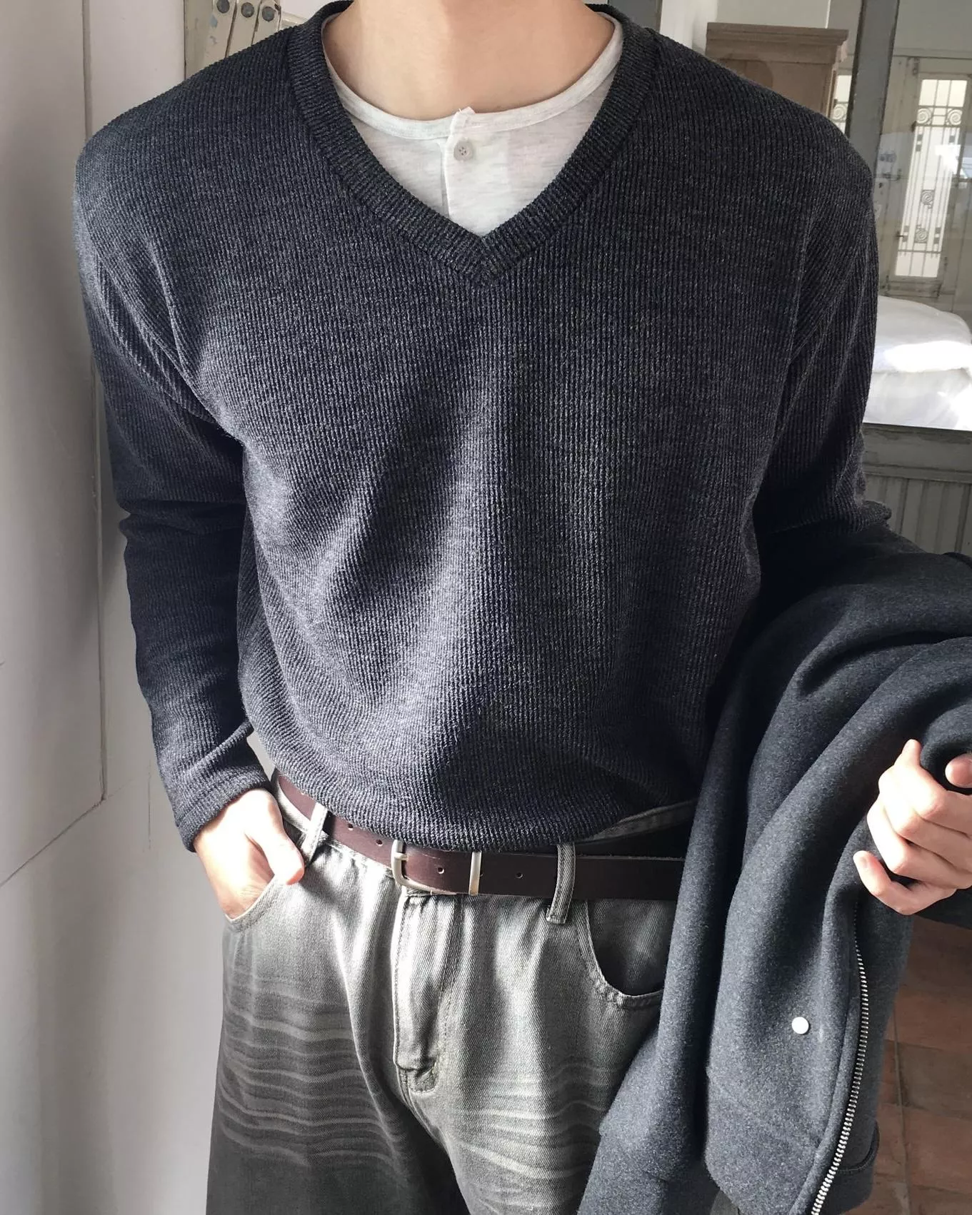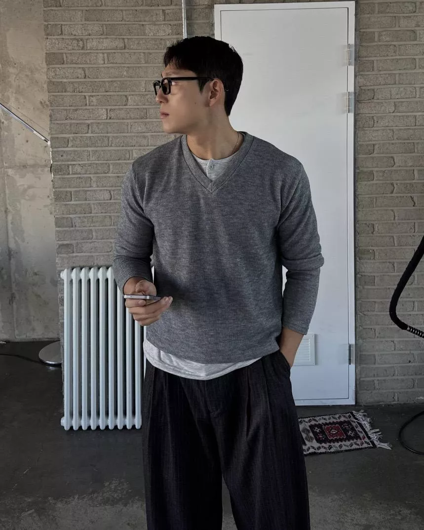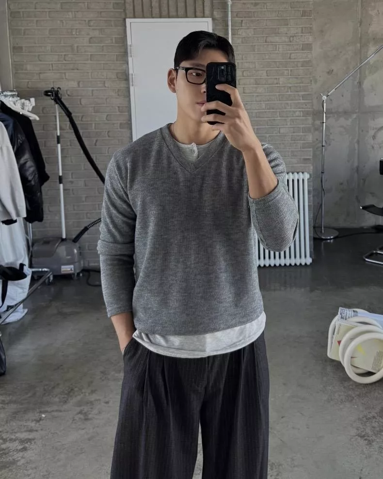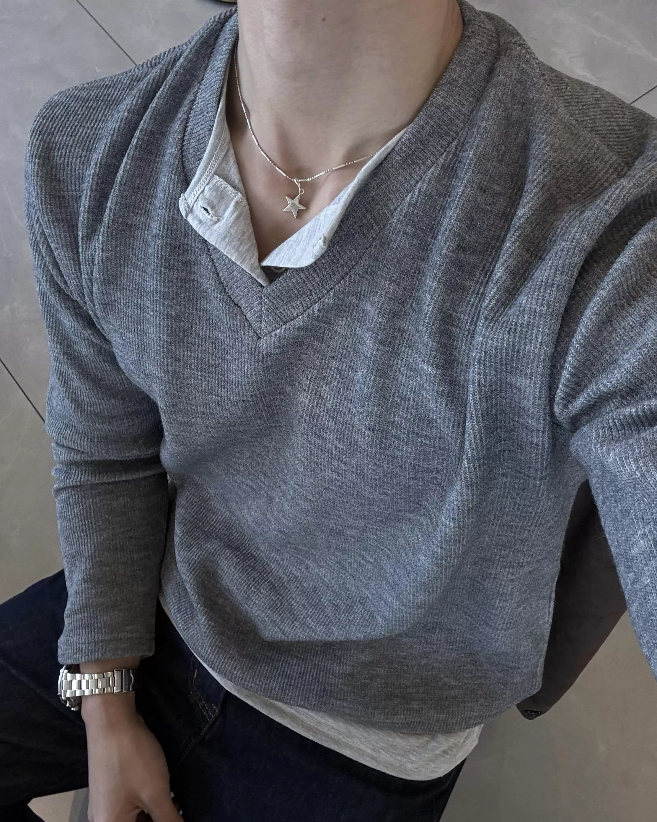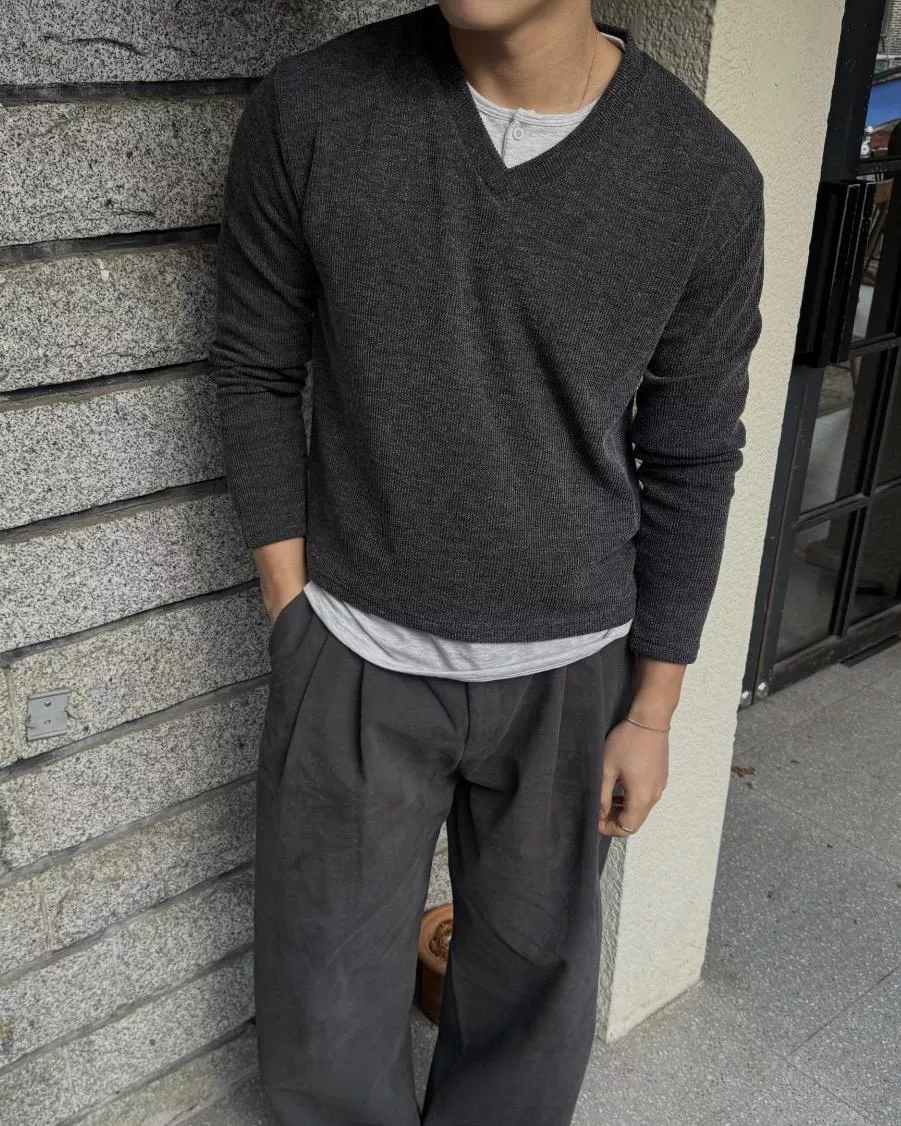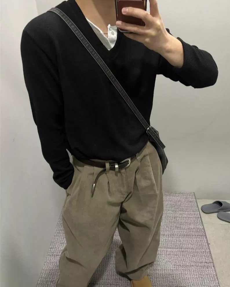 當內搭也非常出彩🙂↕️很像裡面穿了件襯衫+V領針織