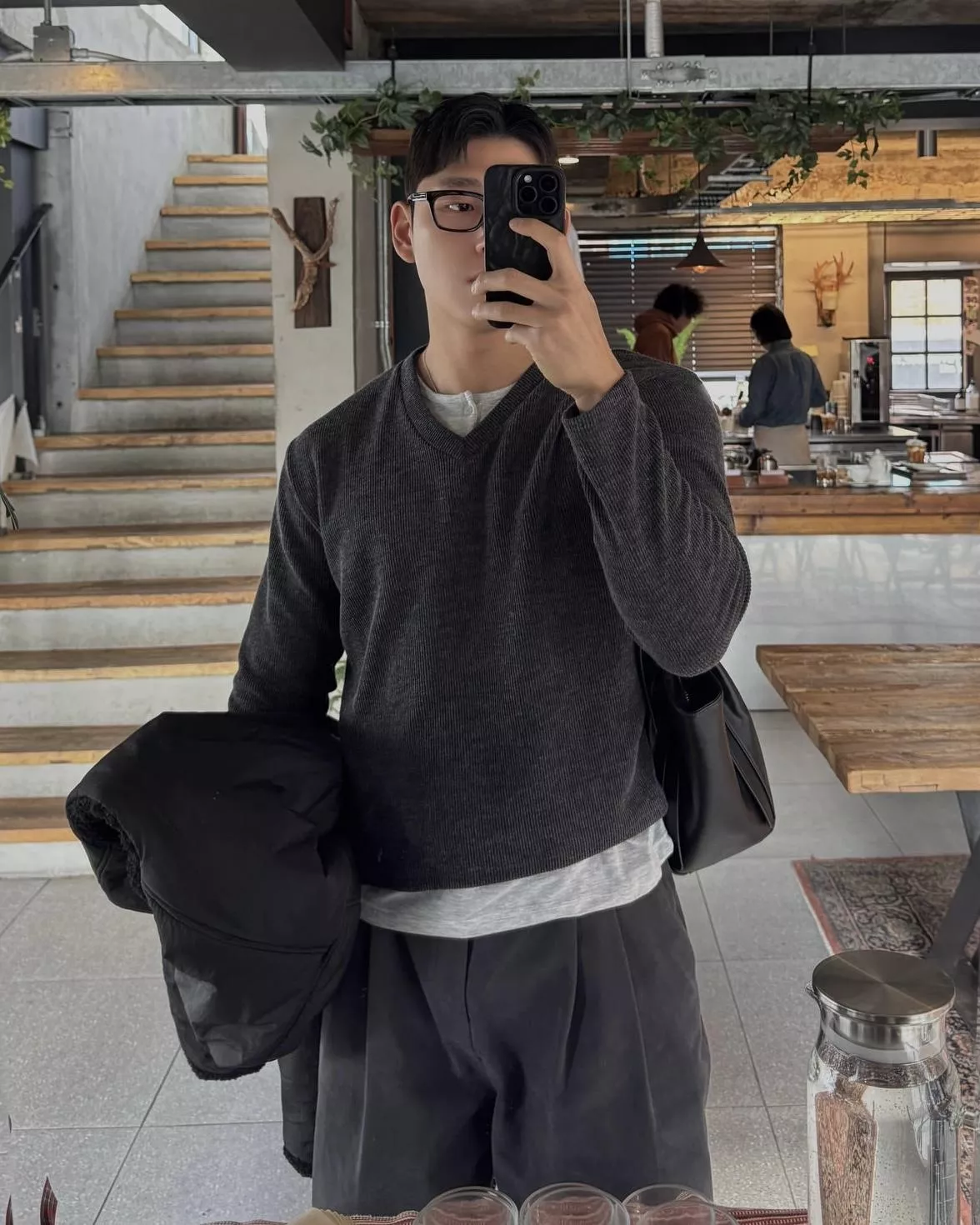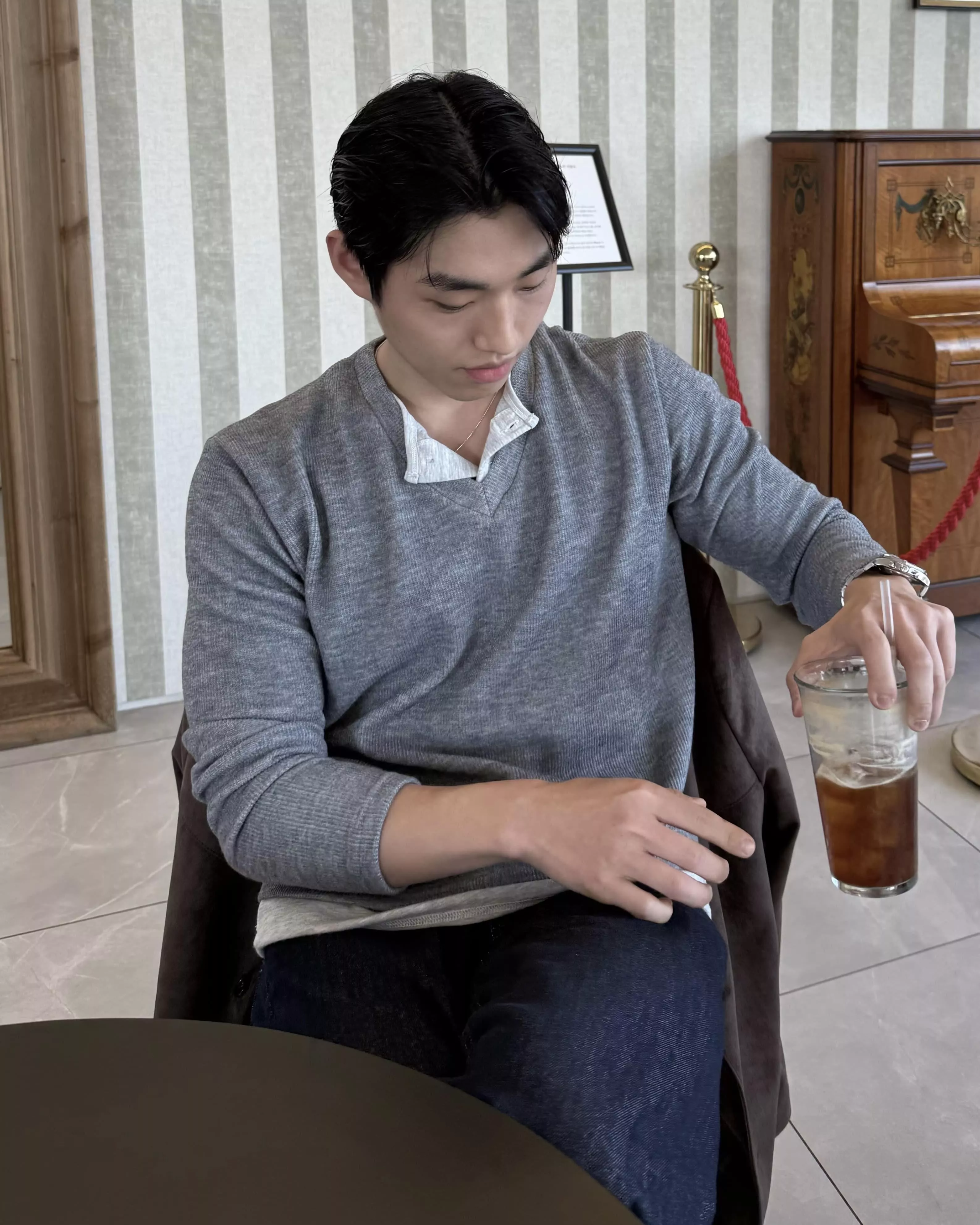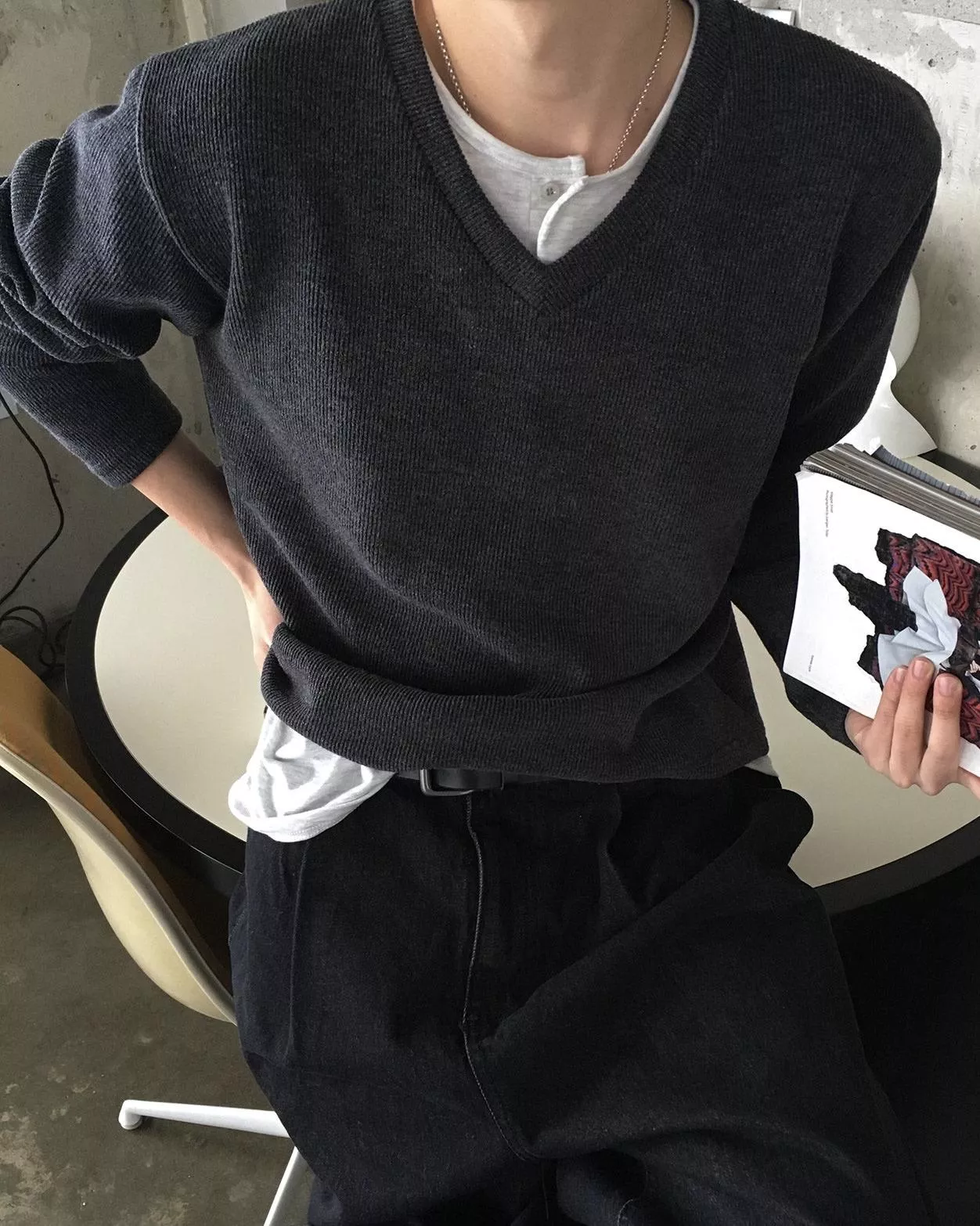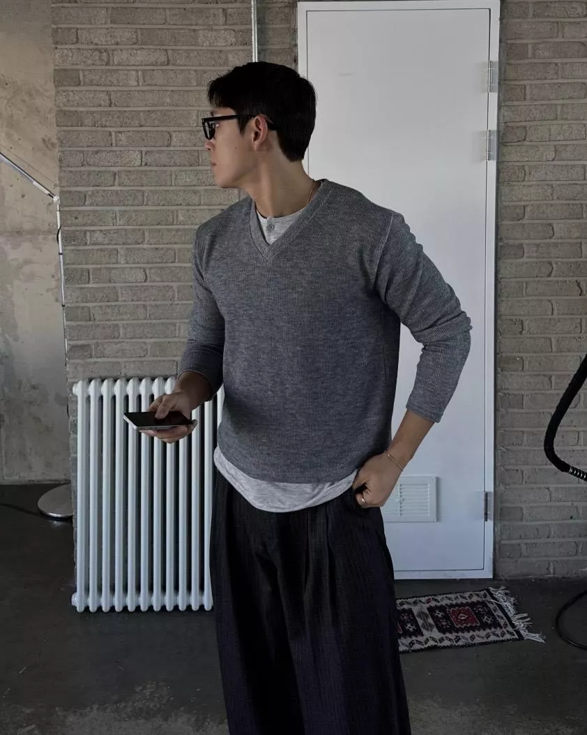 當內搭也非常出彩🙂↕️很像裡面穿了件襯衫+V領針織