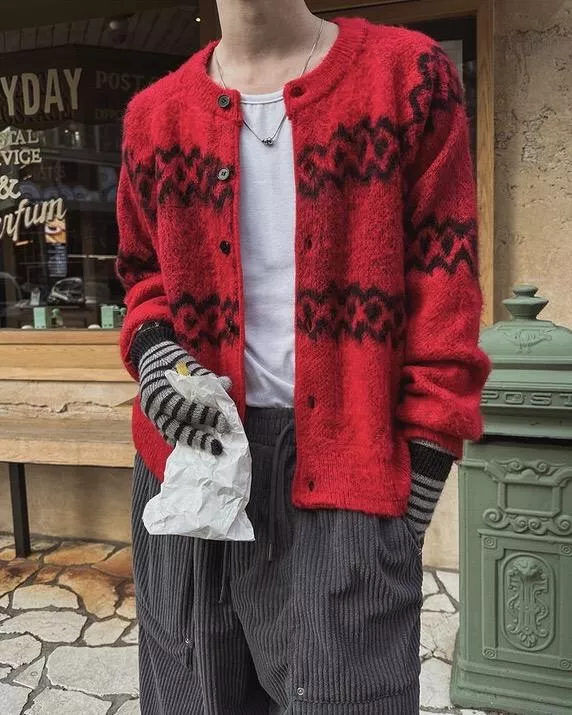 斯里蘭卡 街頭圖騰 羊毛針織開襟衫