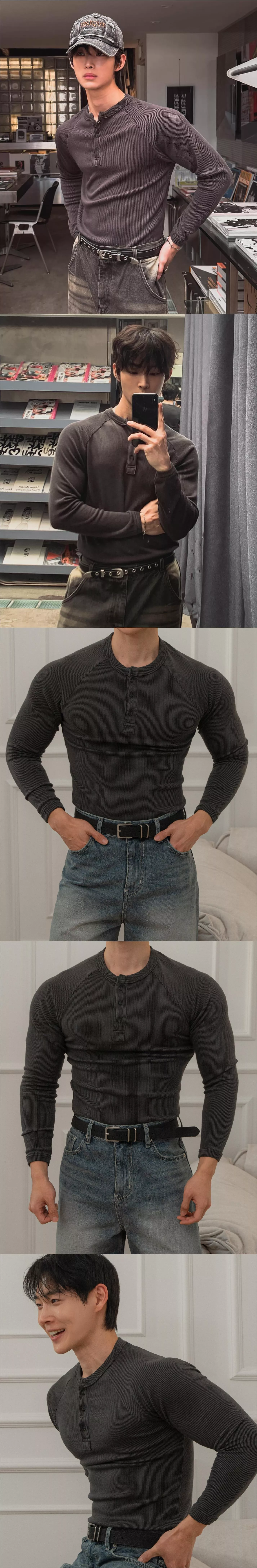 顯壯肌肉 細柔羅紋2.0 插肩袖亨利領