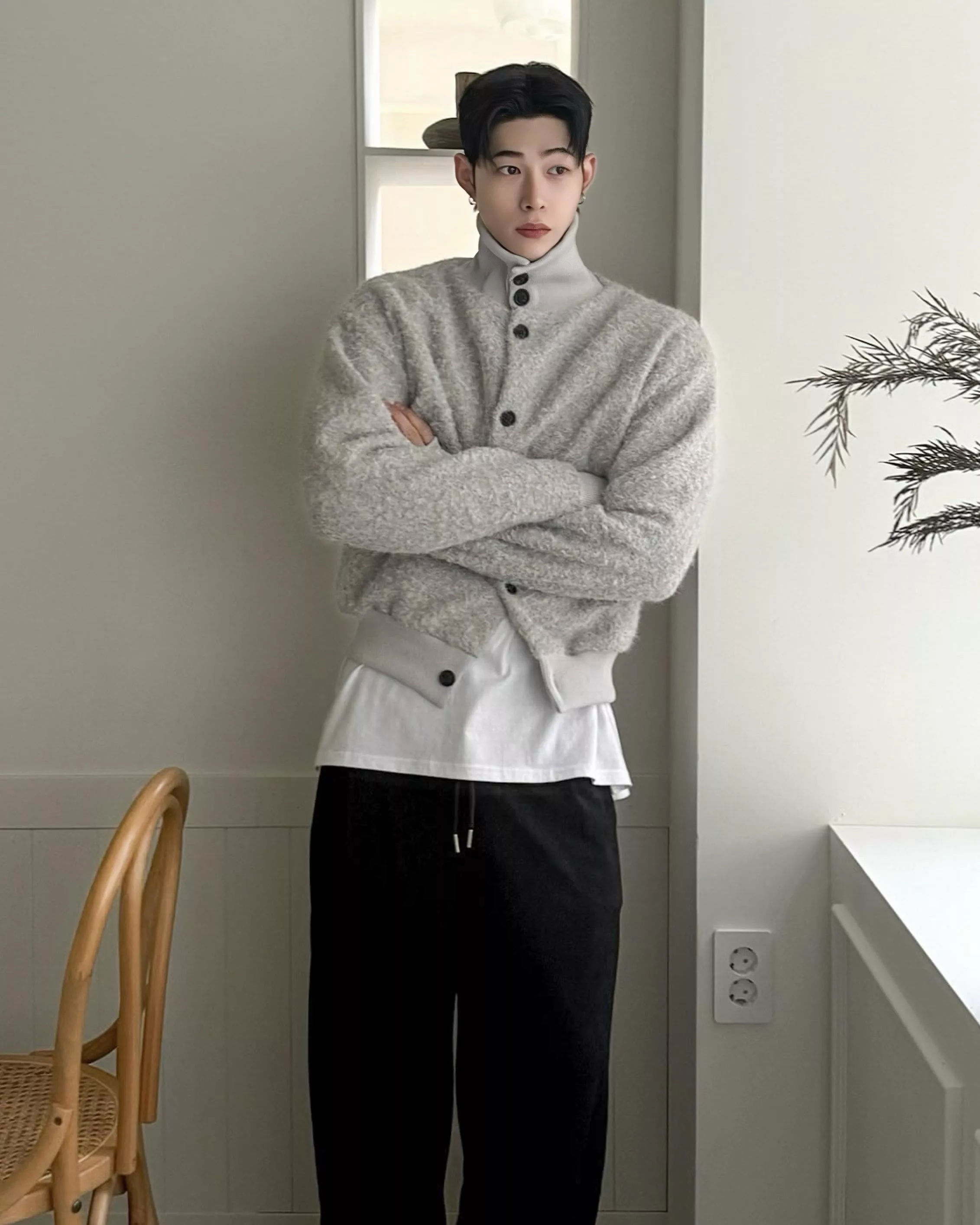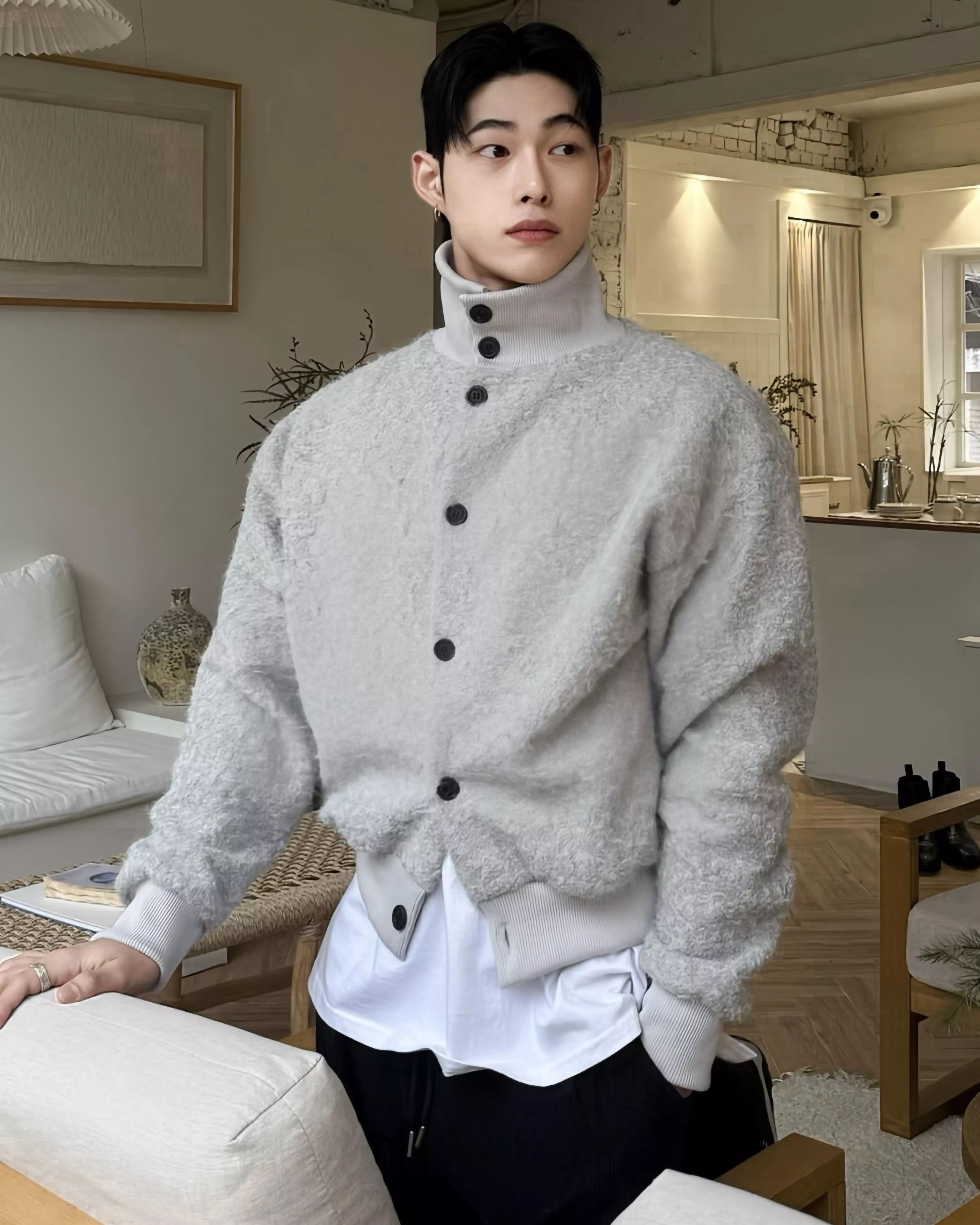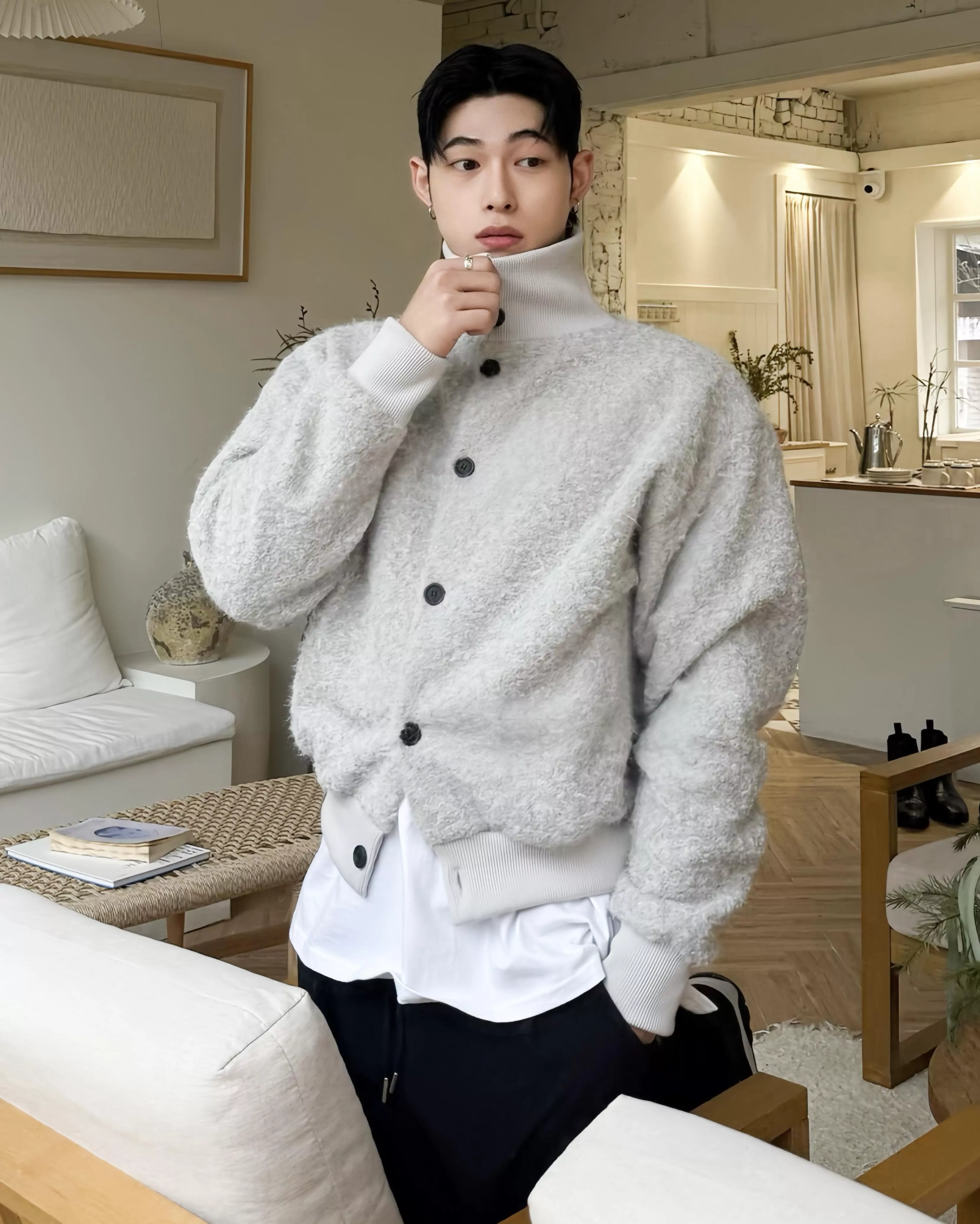 釦式高領開襟衫不管怎麼穿都好看!✨