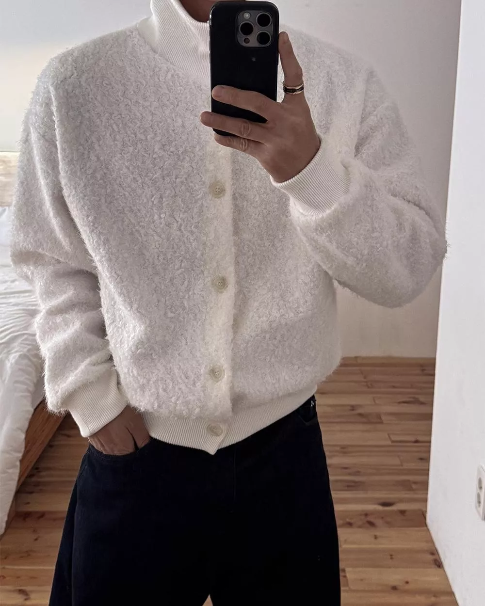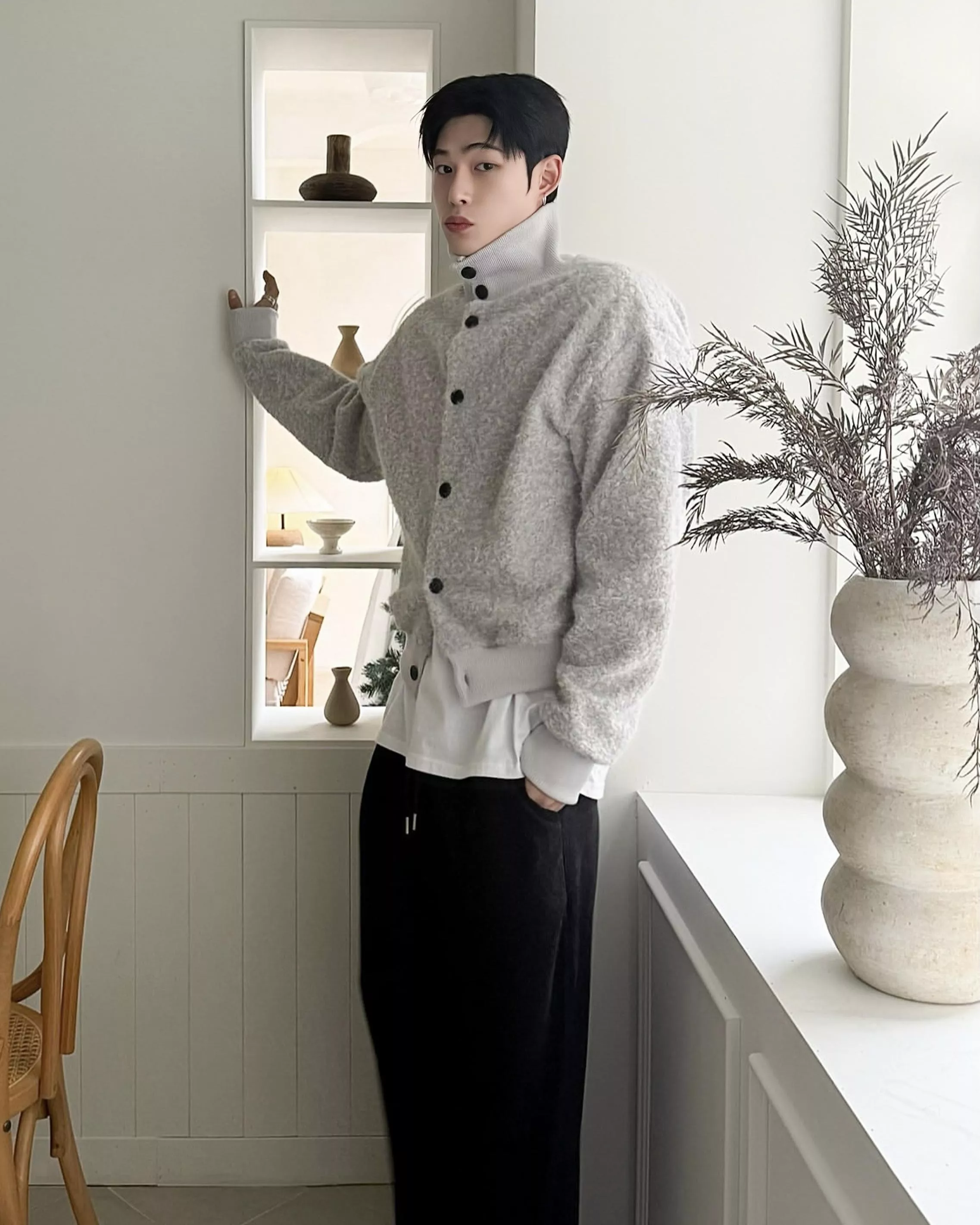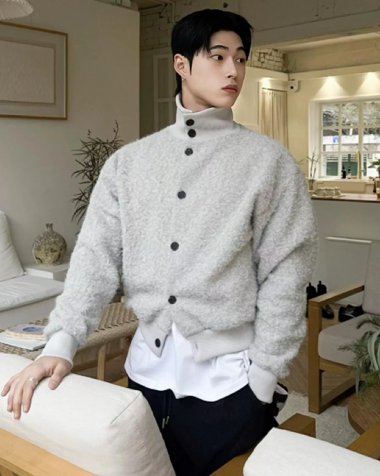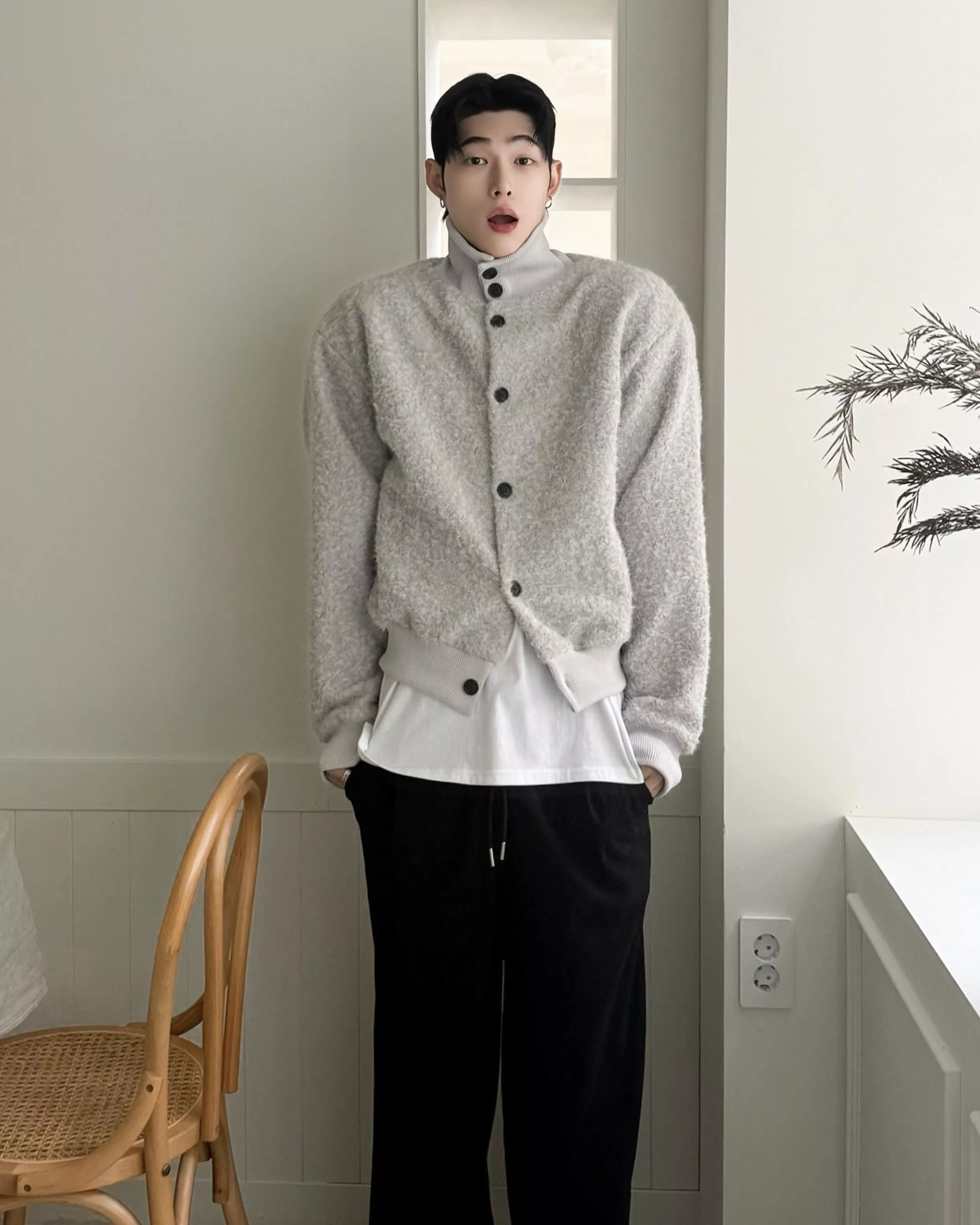 釦式高領開襟衫不管怎麼穿都好看!✨