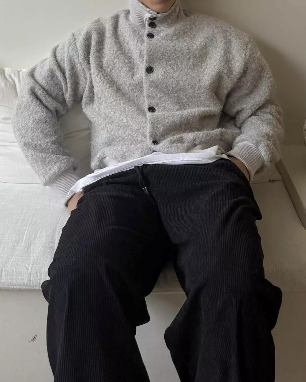 最底那顆扣子解開,下擺羅紋剛好收住版型很好看