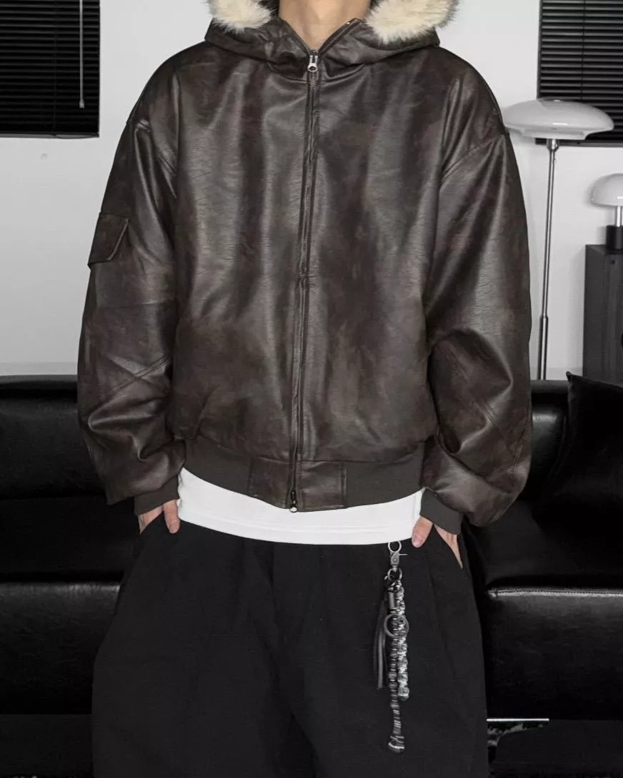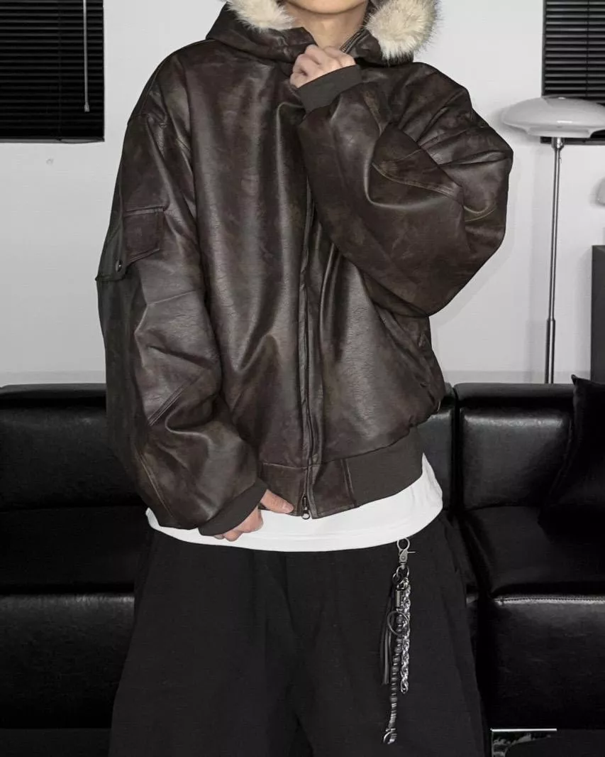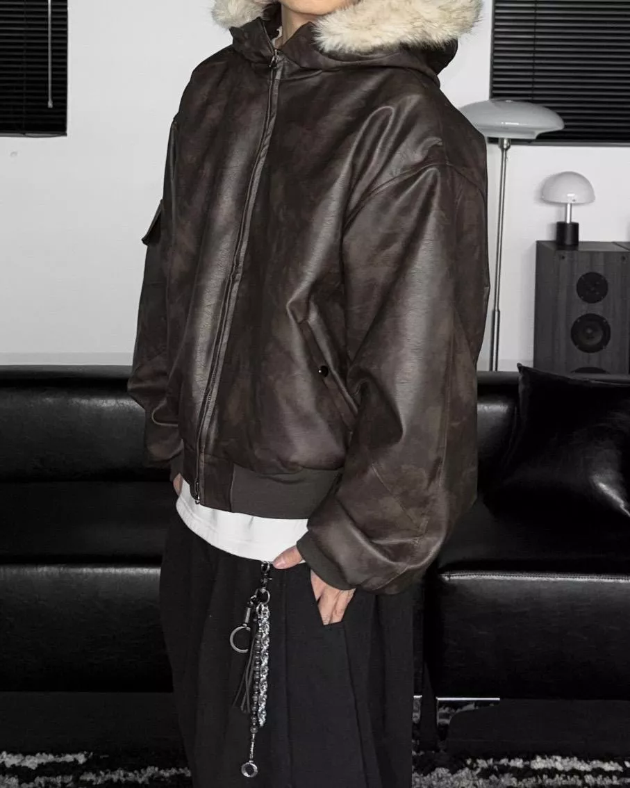 貂毛連帽 羊羔毛 重磅油蠟皮夾克外套