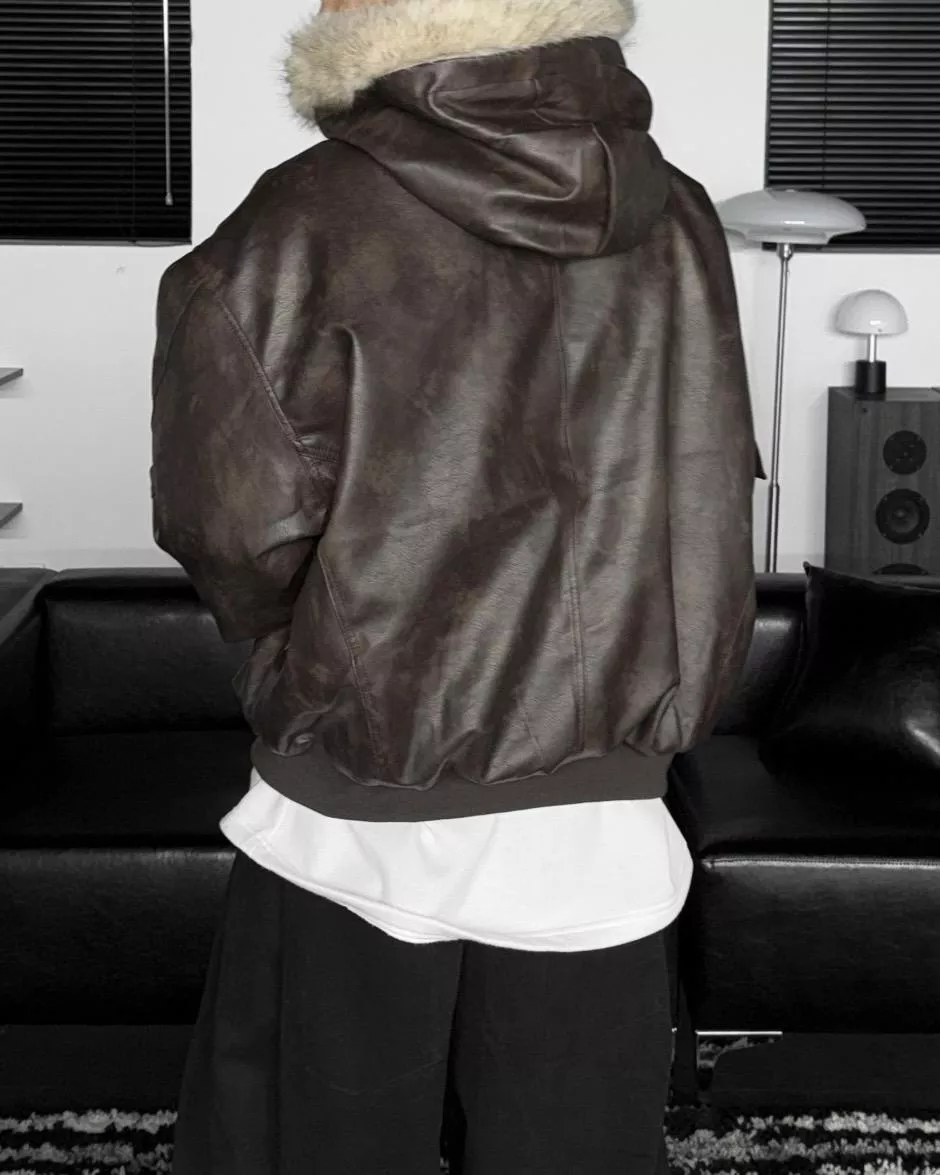 不浮誇的貂毛帽體、油蠟渲染皮革面料、短版剪裁