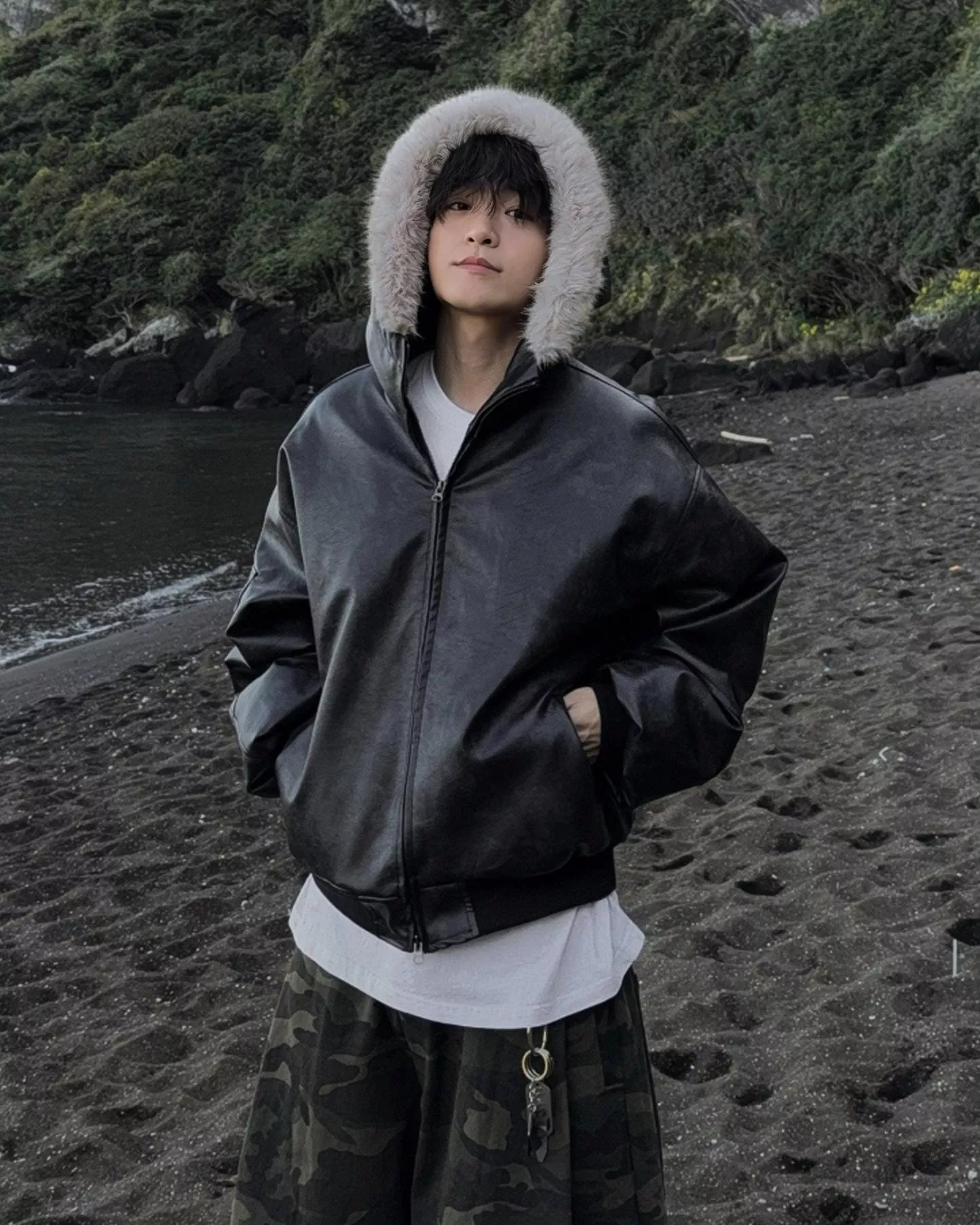毛絨連帽自然包裹住臉型直接拉滿秋冬氛圍感