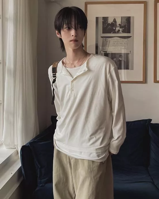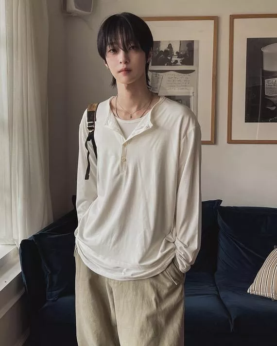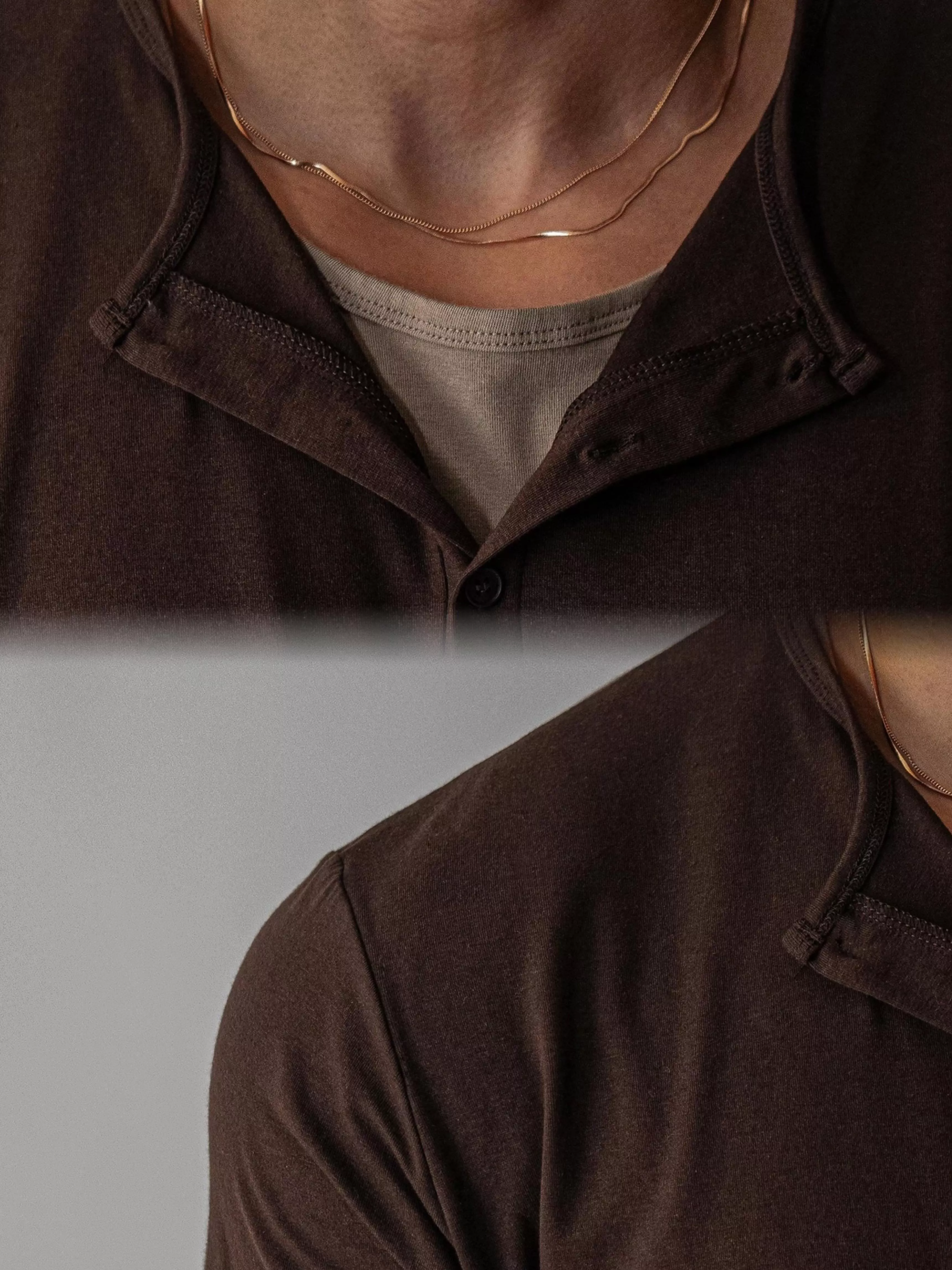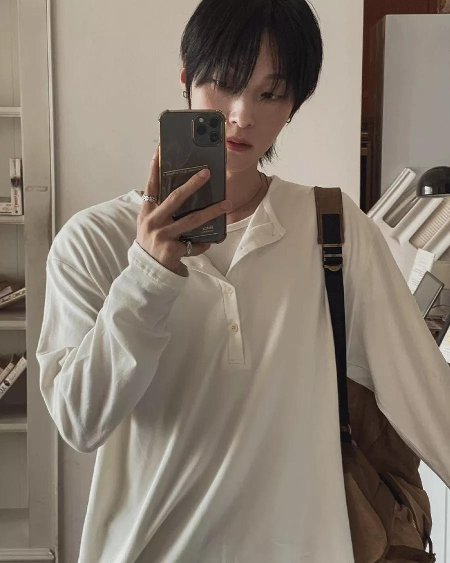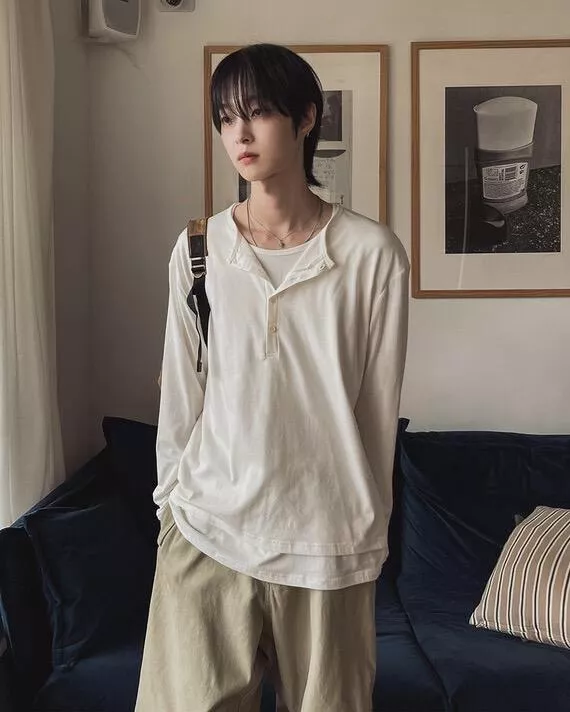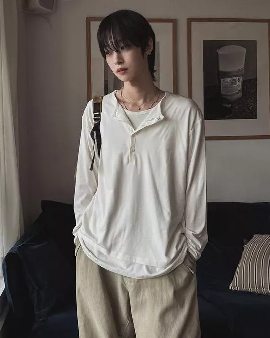 春季日常 雙色層次 亨利領薄長袖