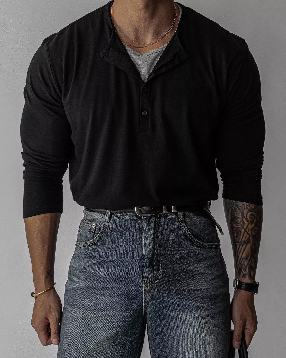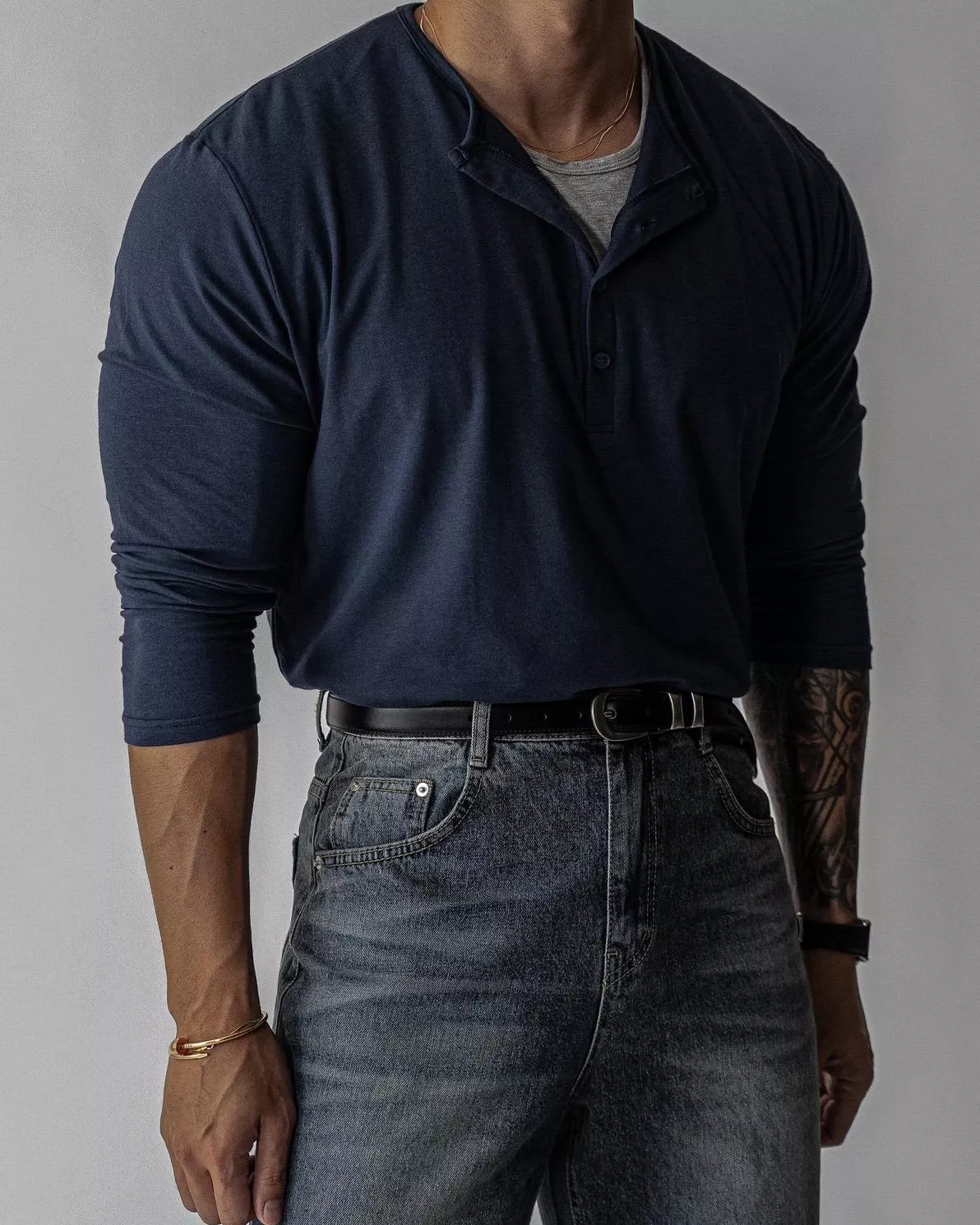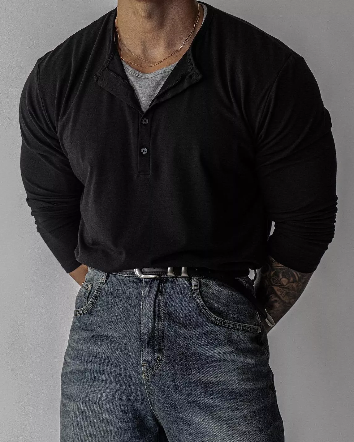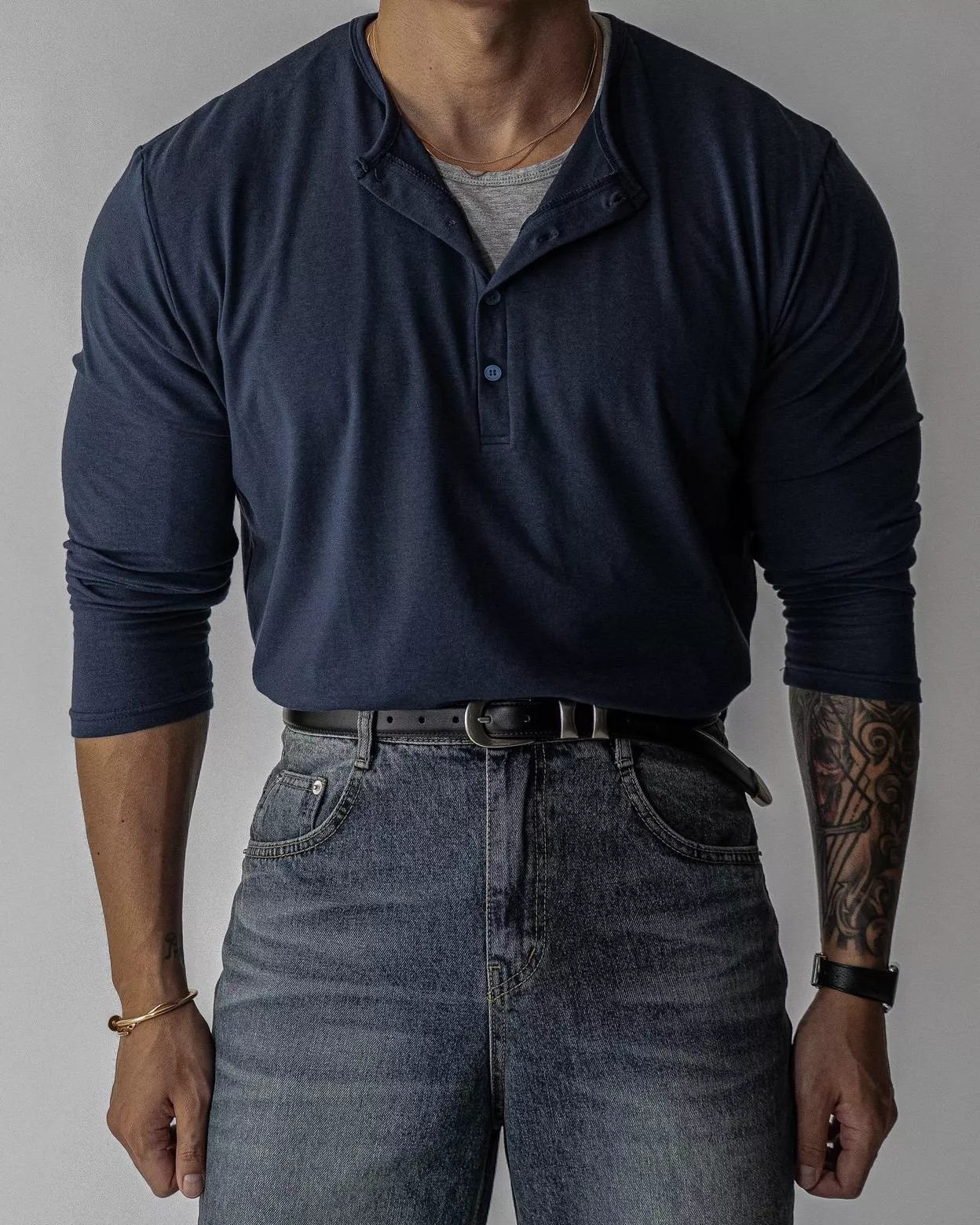 春季日常 雙色層次 亨利領薄長袖