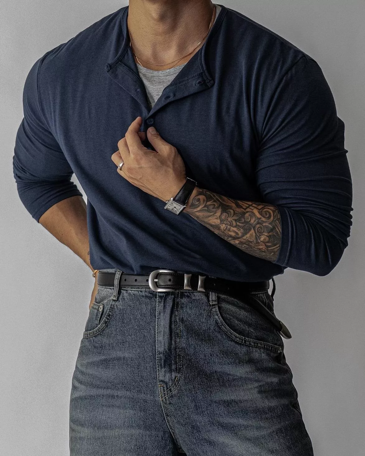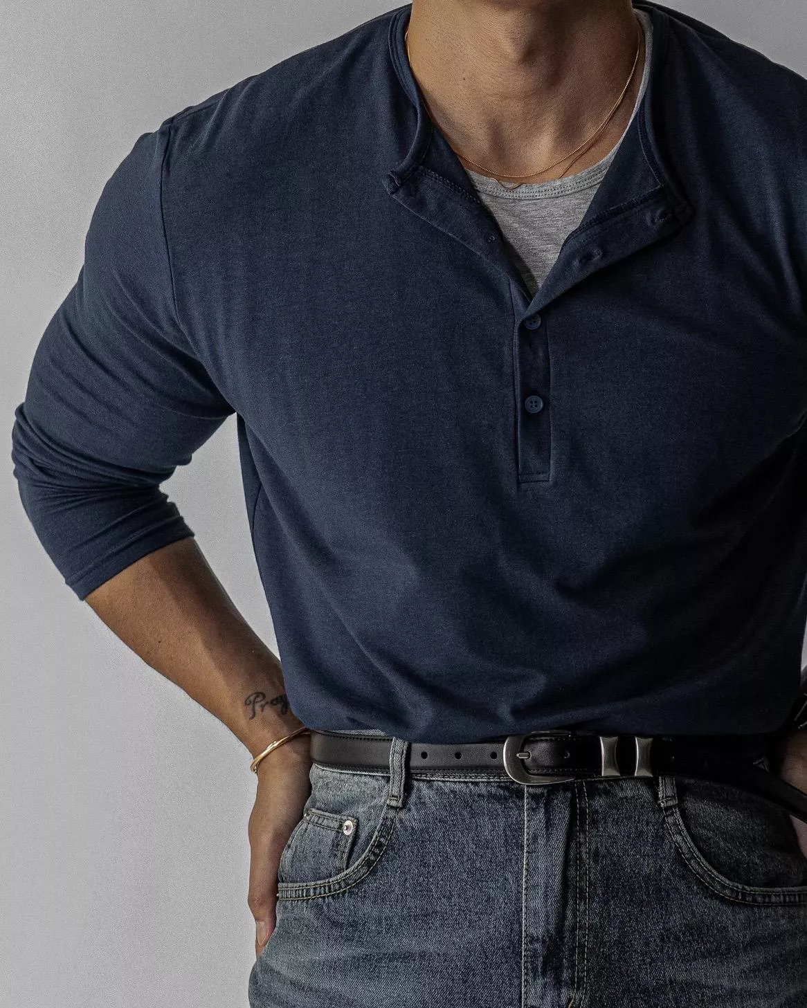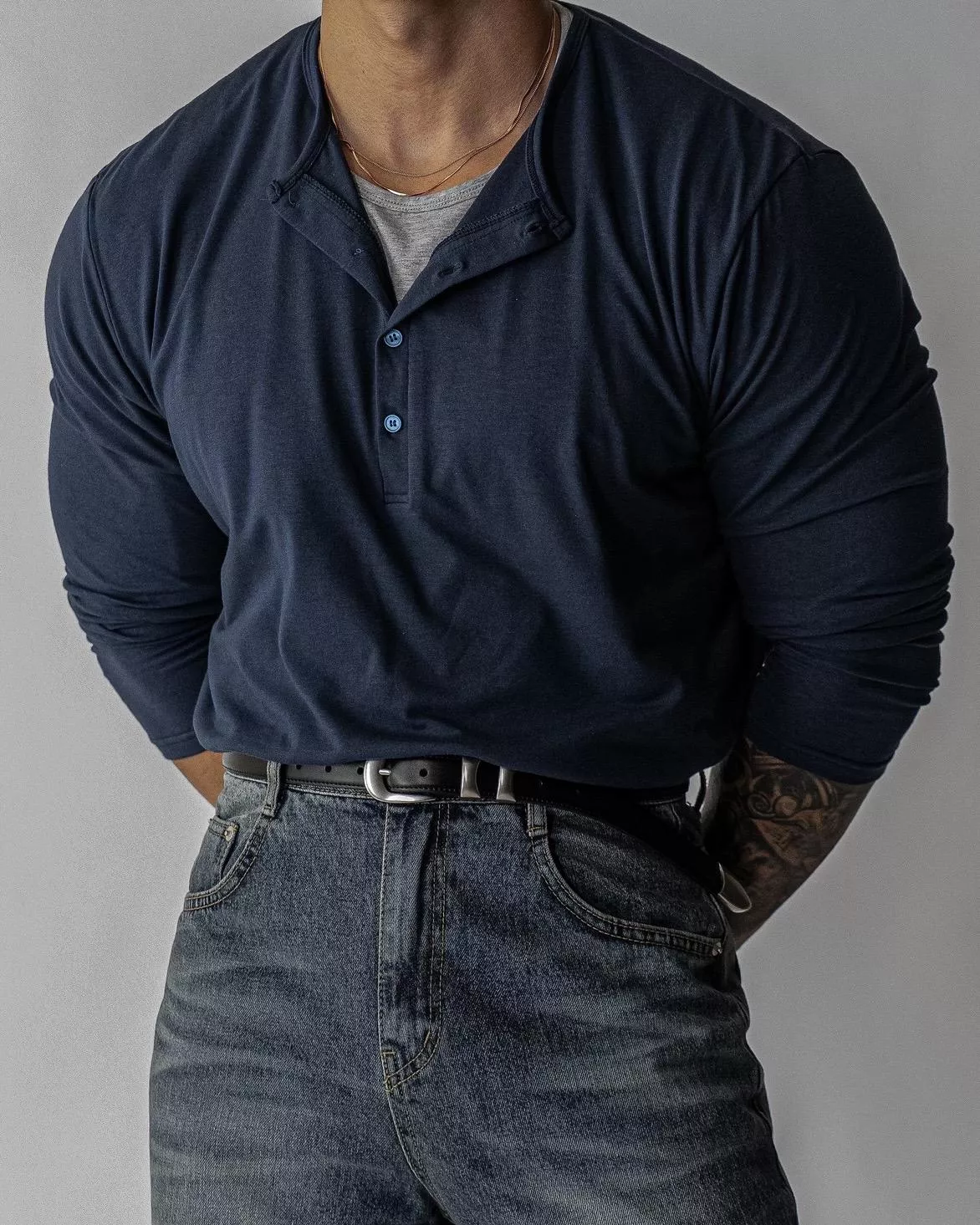 亨利領四顆扣設計、雙色內層做出層次感