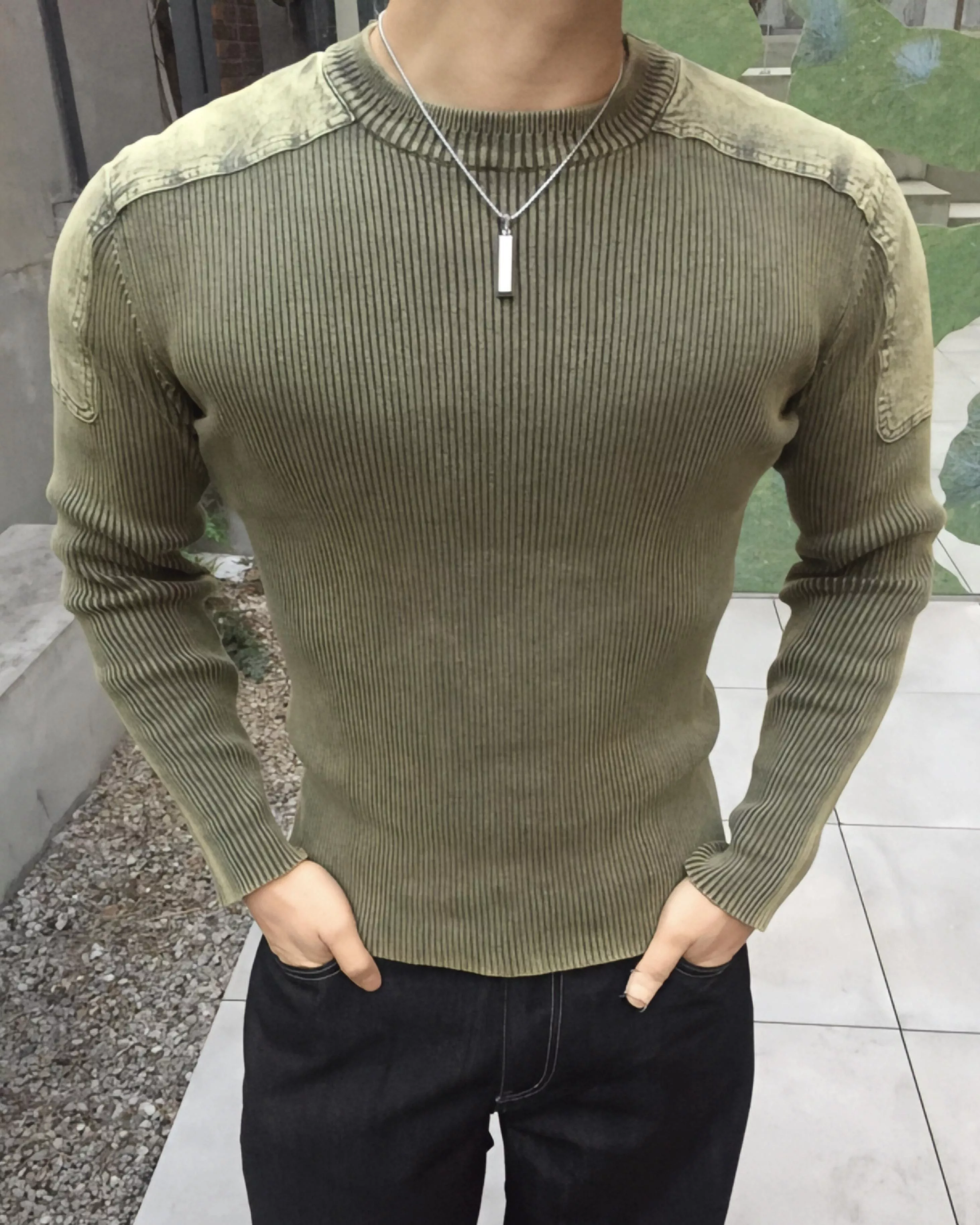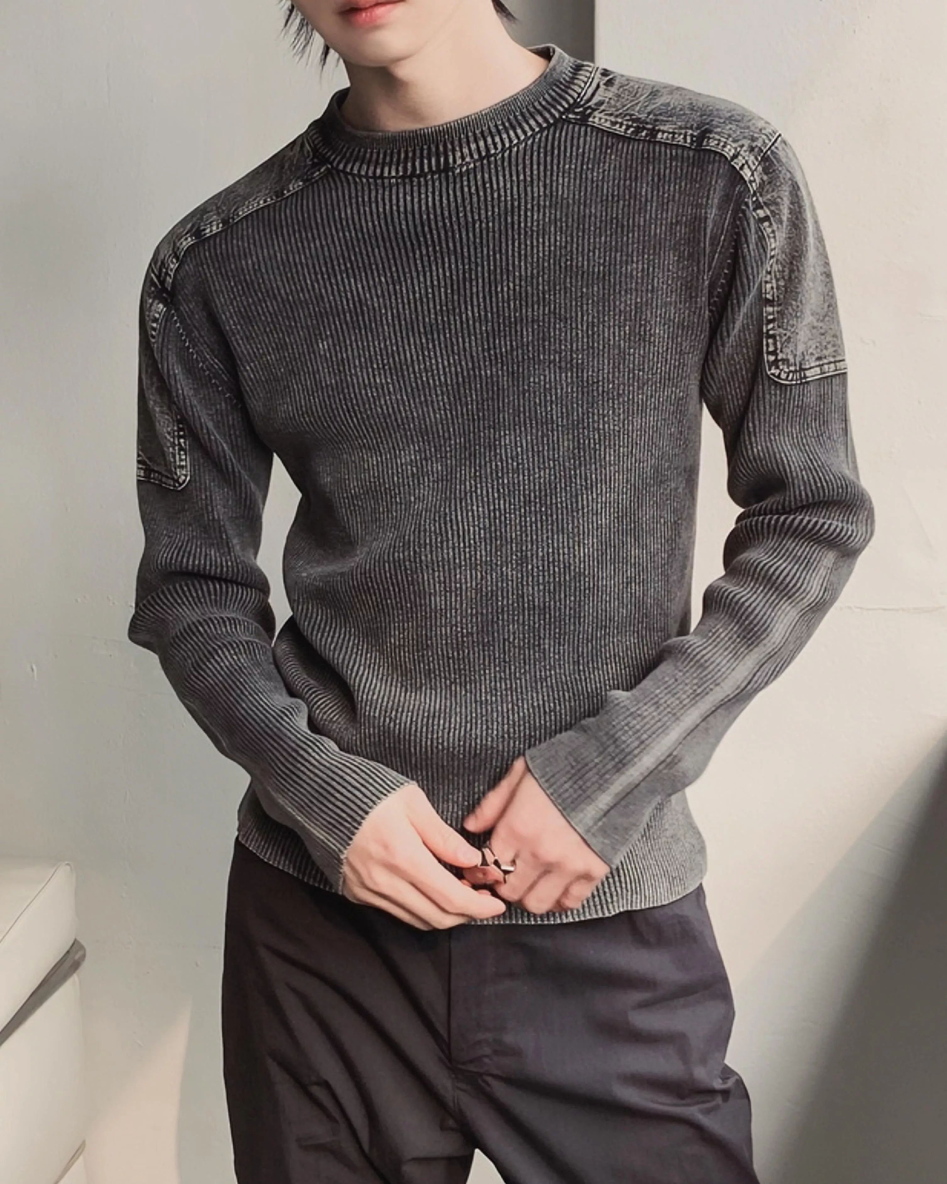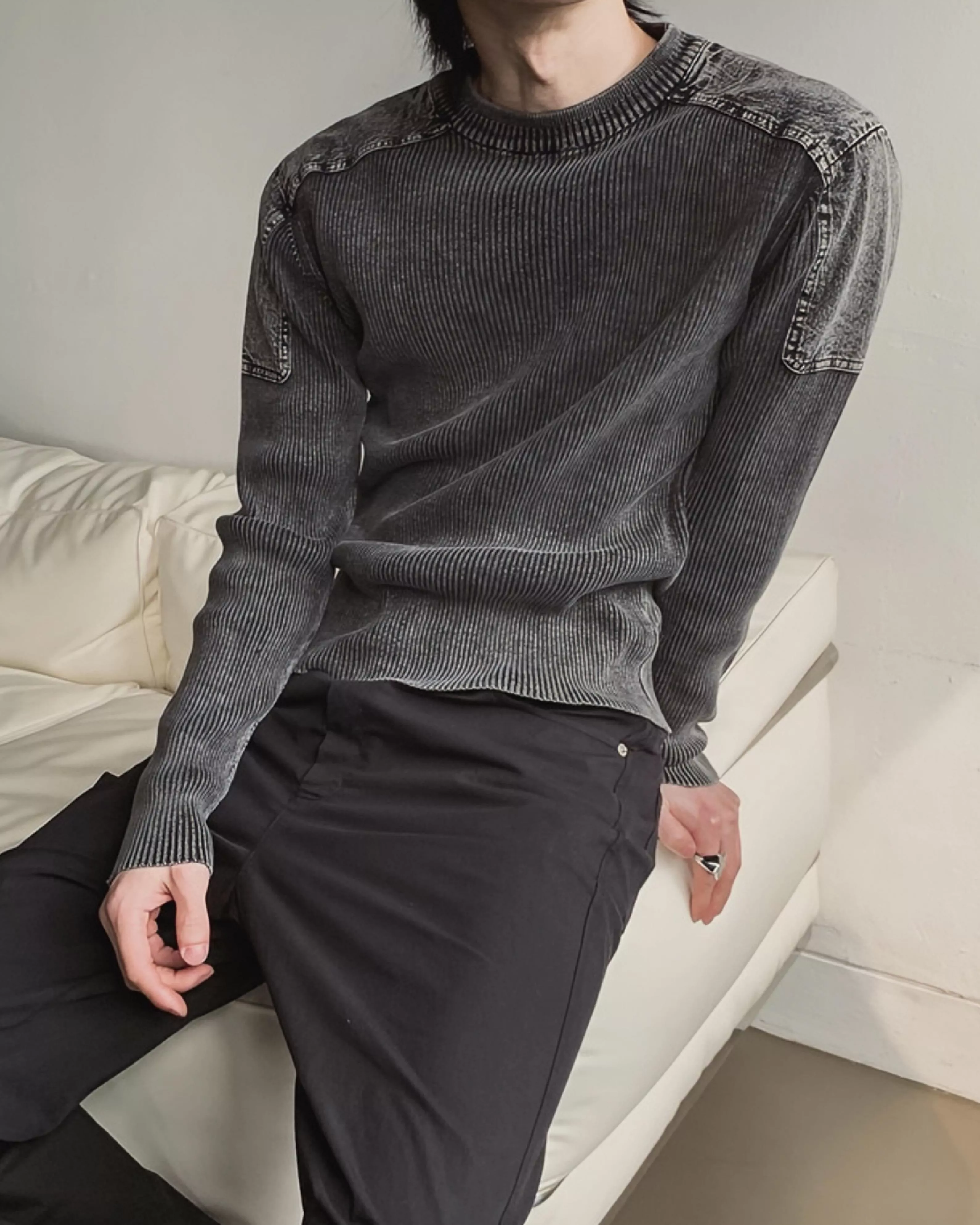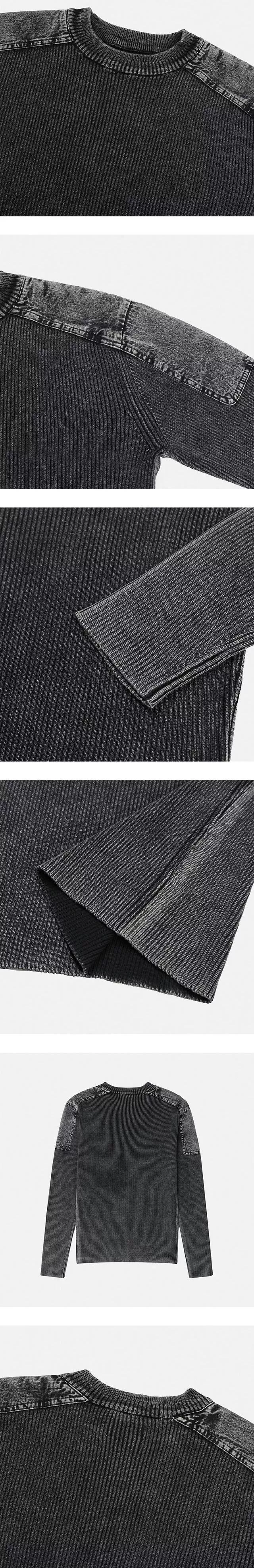 顯壯肌肉款 肩線補丁水洗高磅針織衫