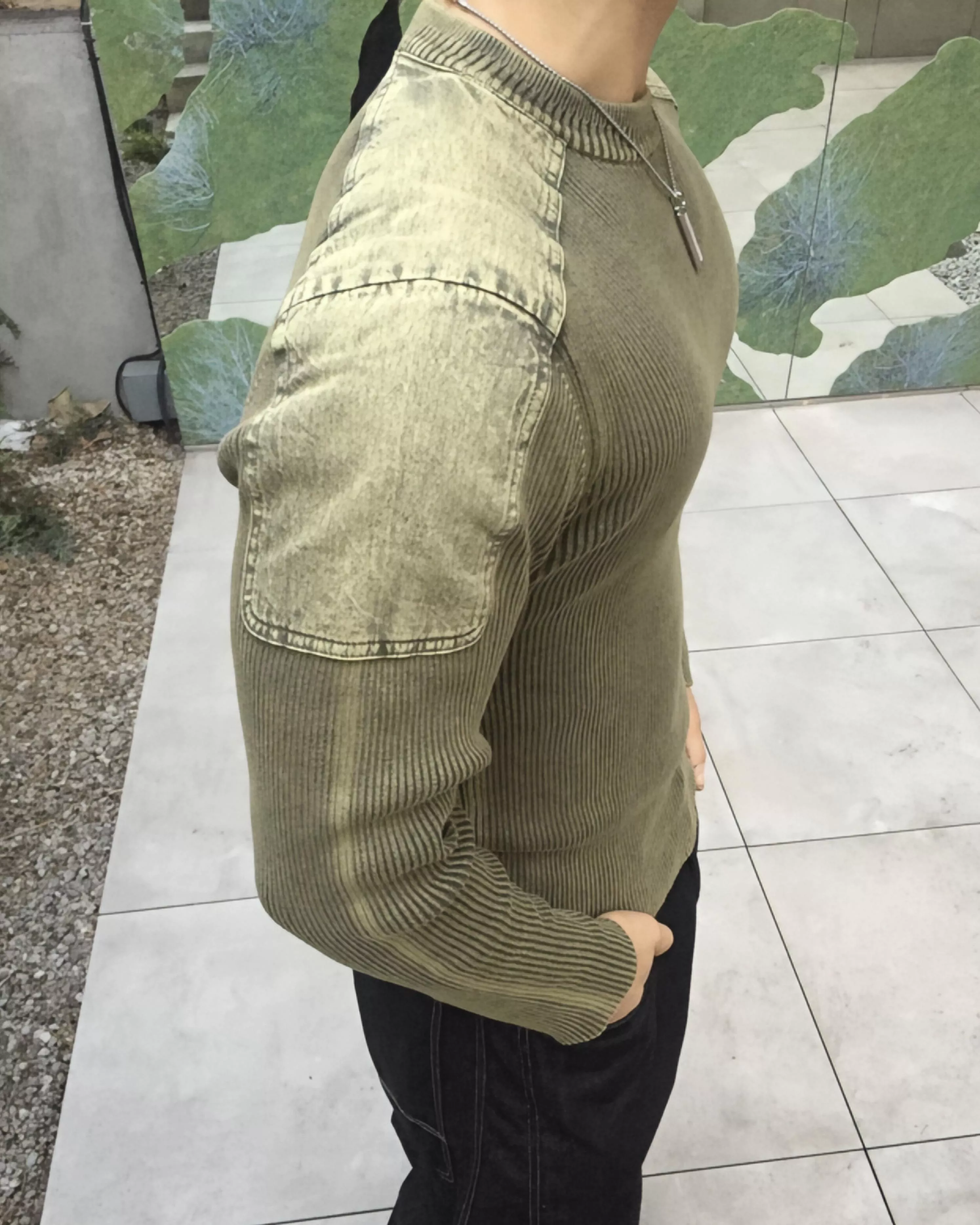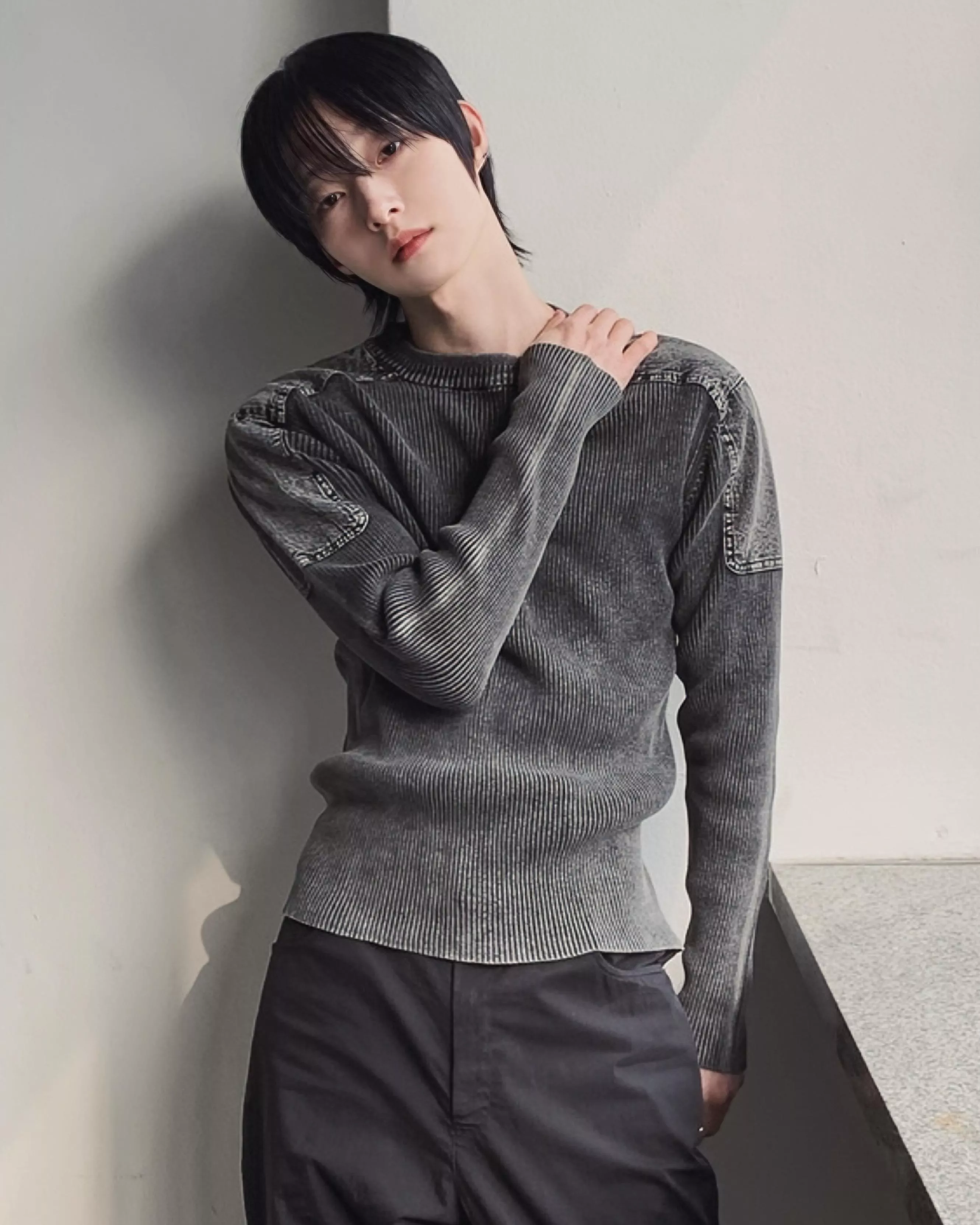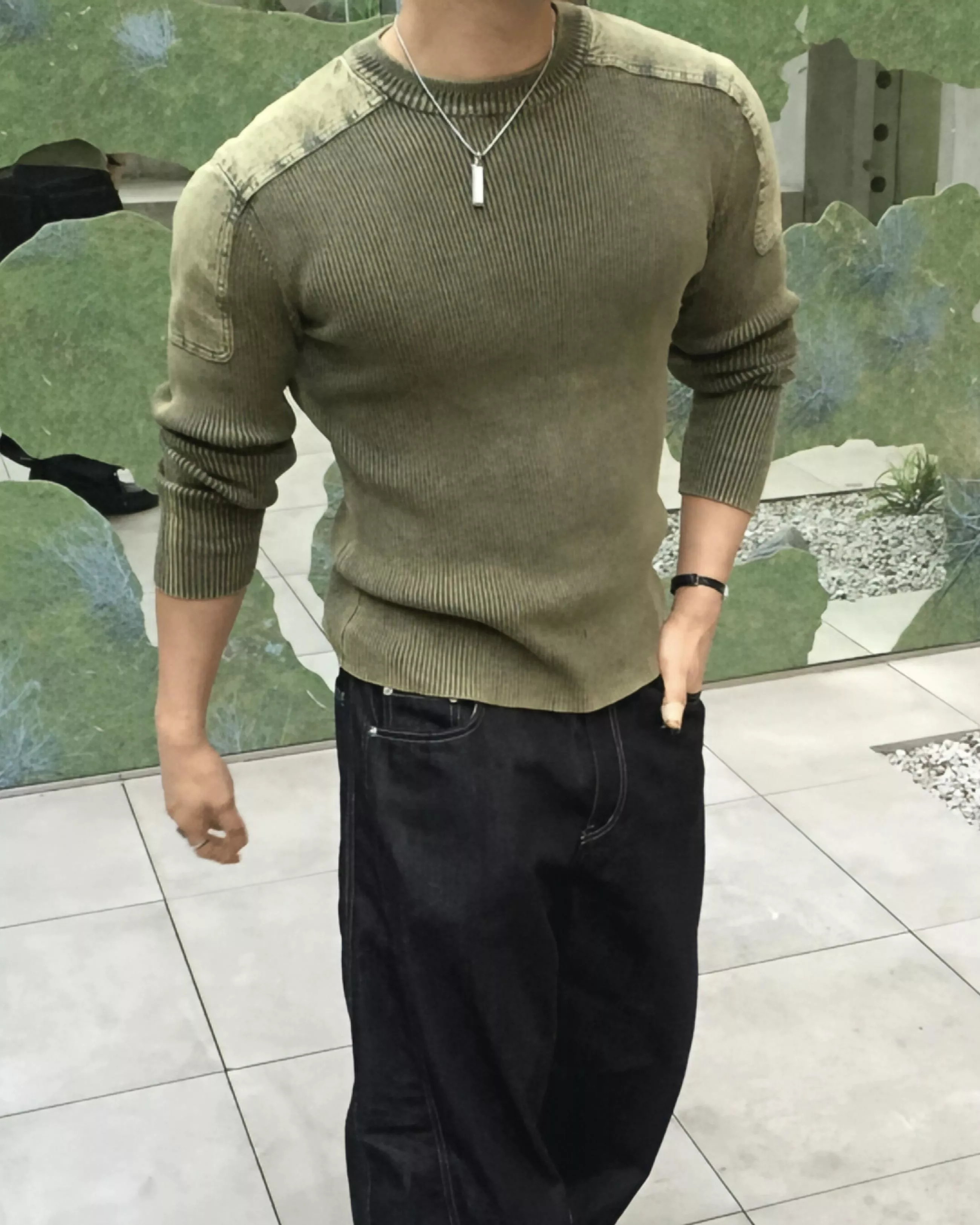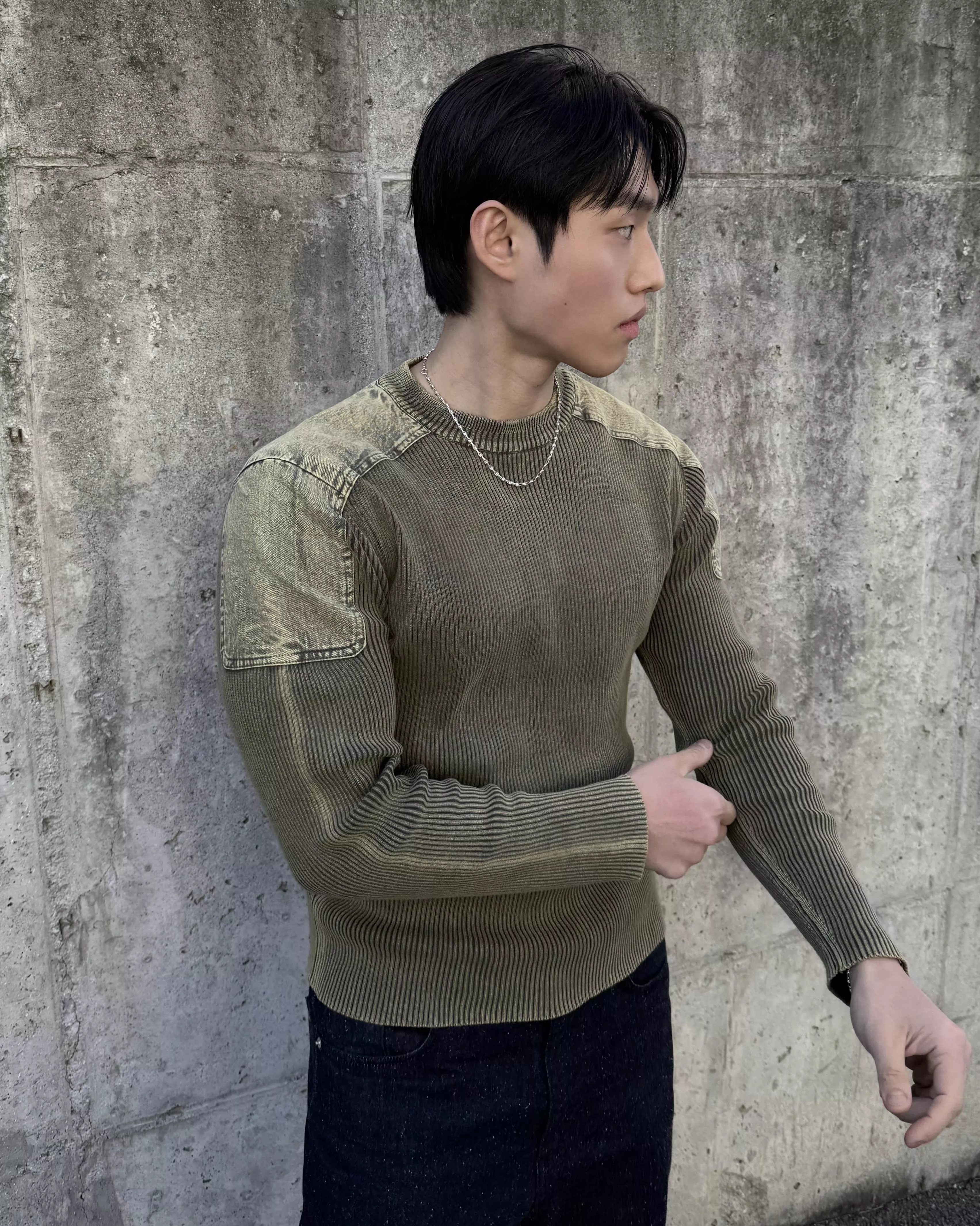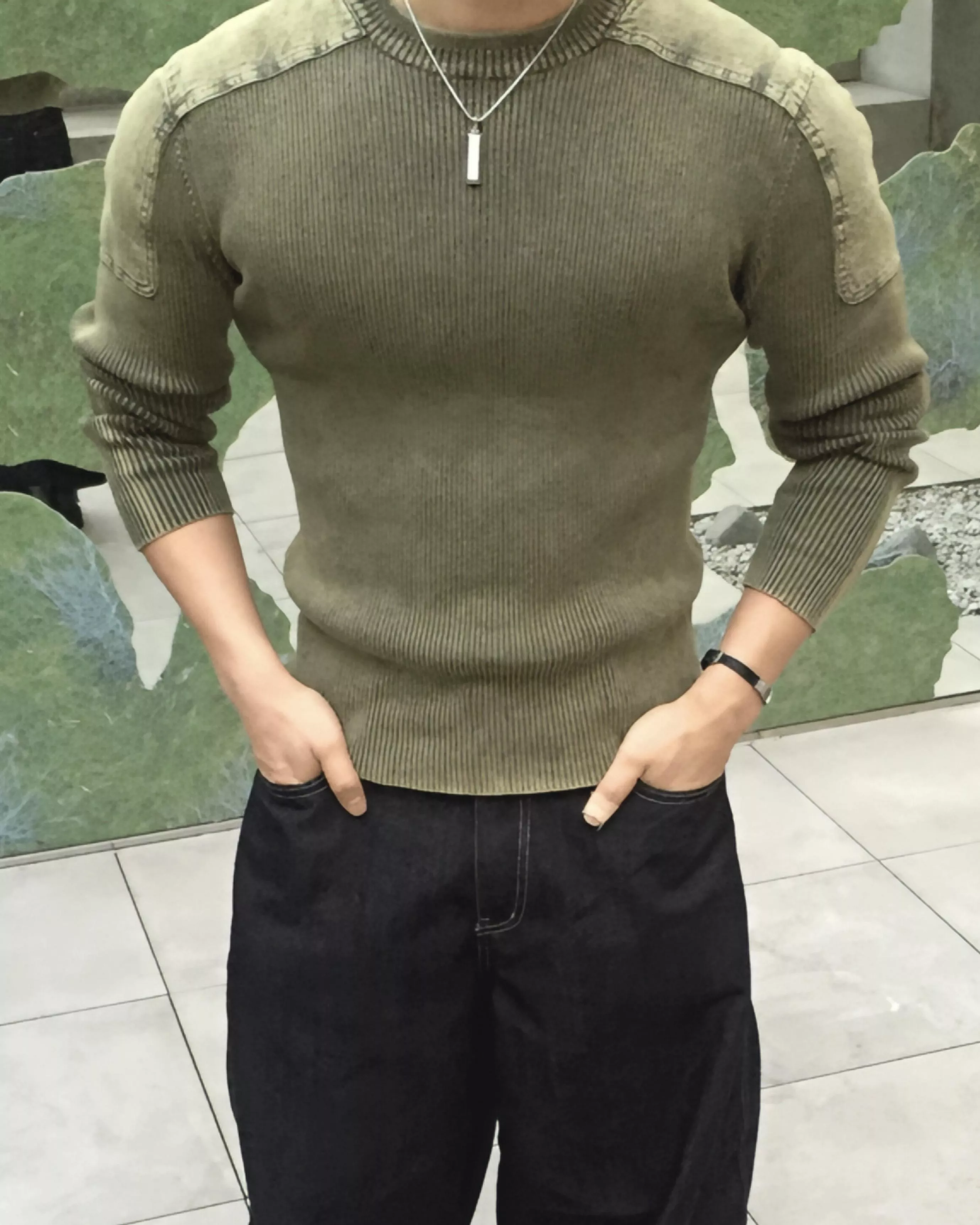 顯壯肌肉款 肩線補丁水洗高磅針織衫