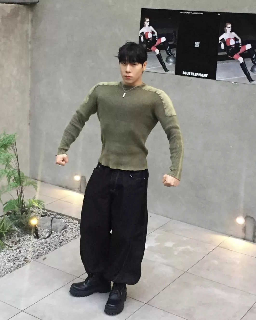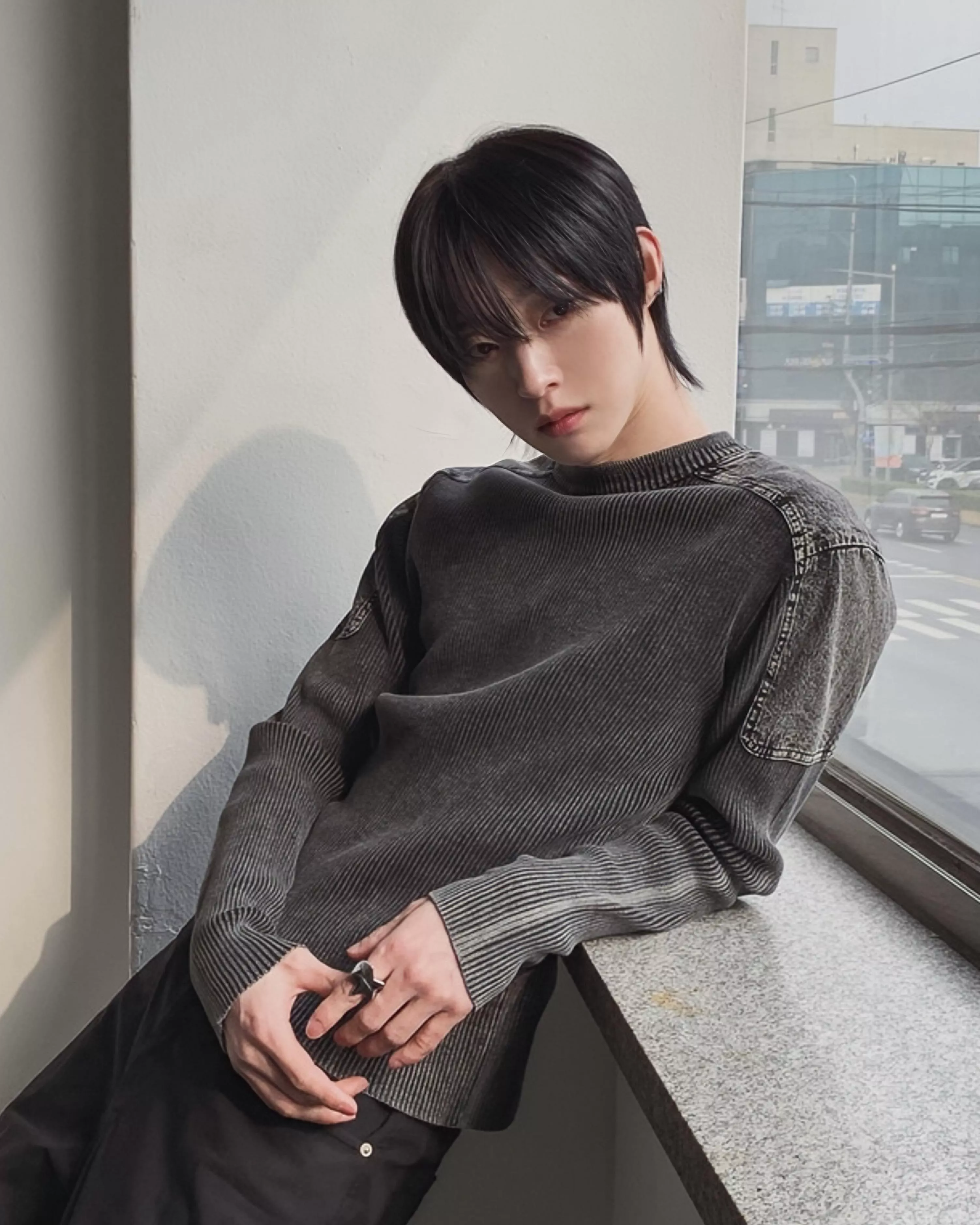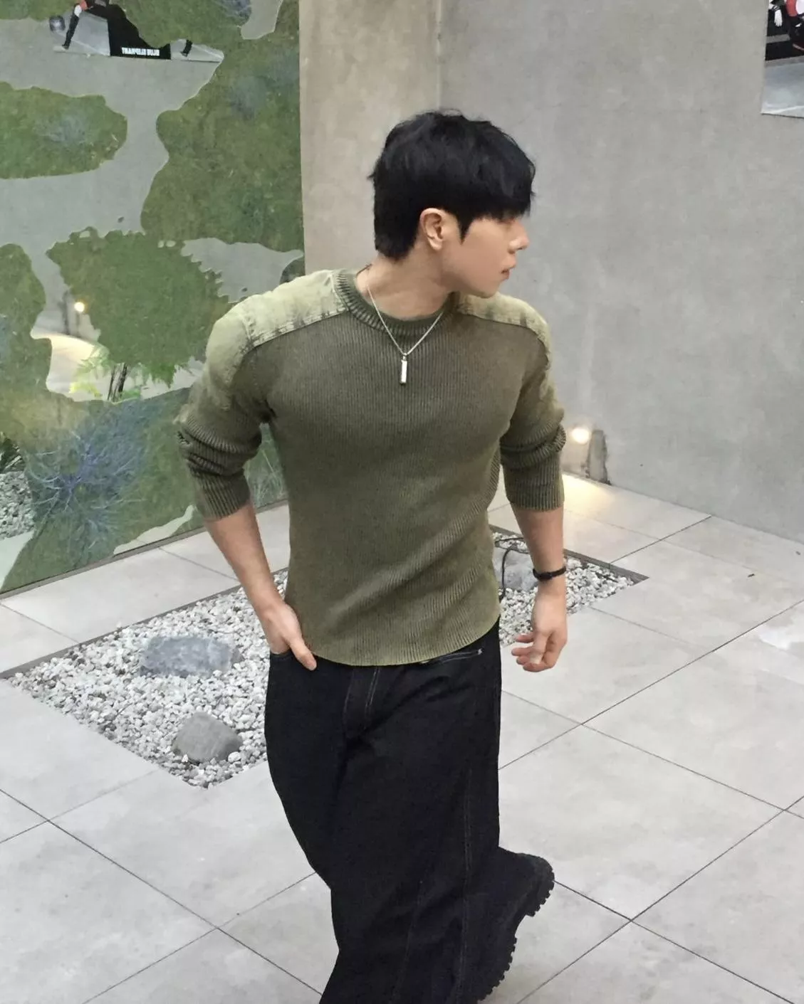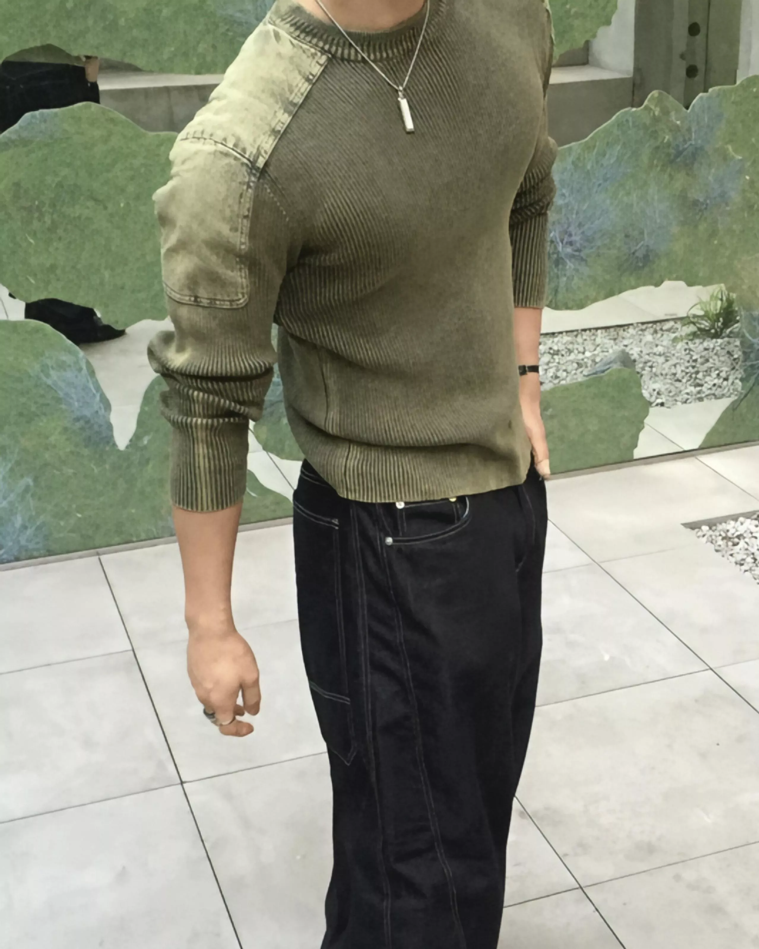 顯壯肌肉款 肩線補丁水洗高磅針織衫